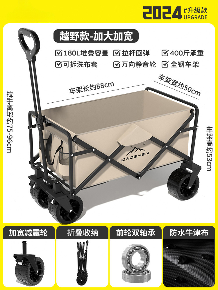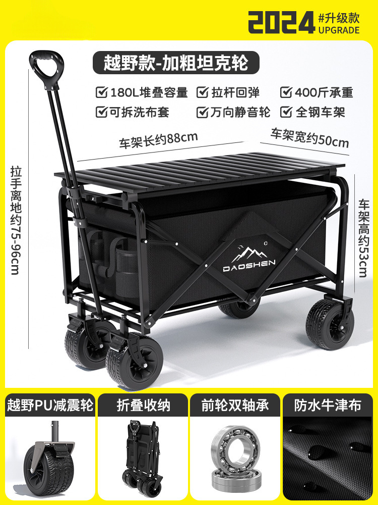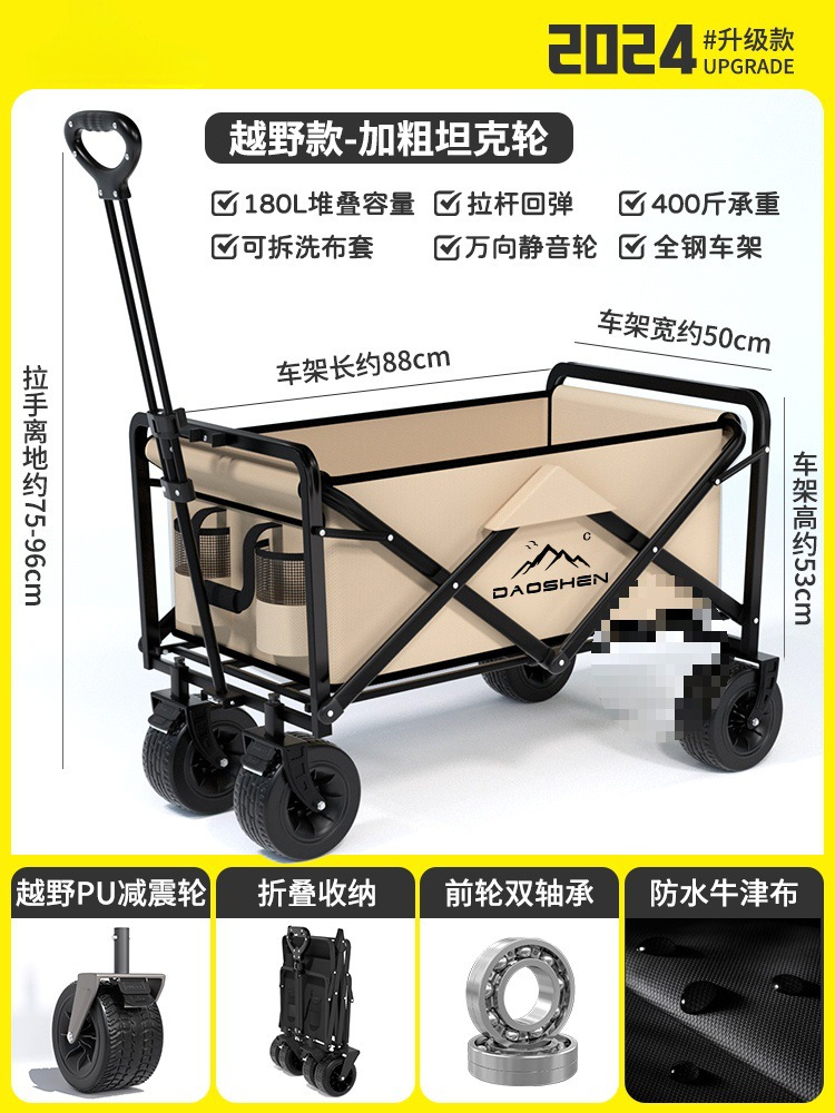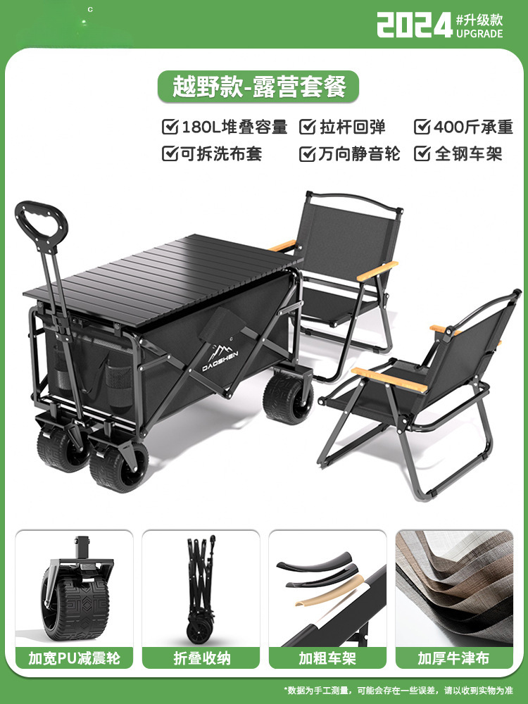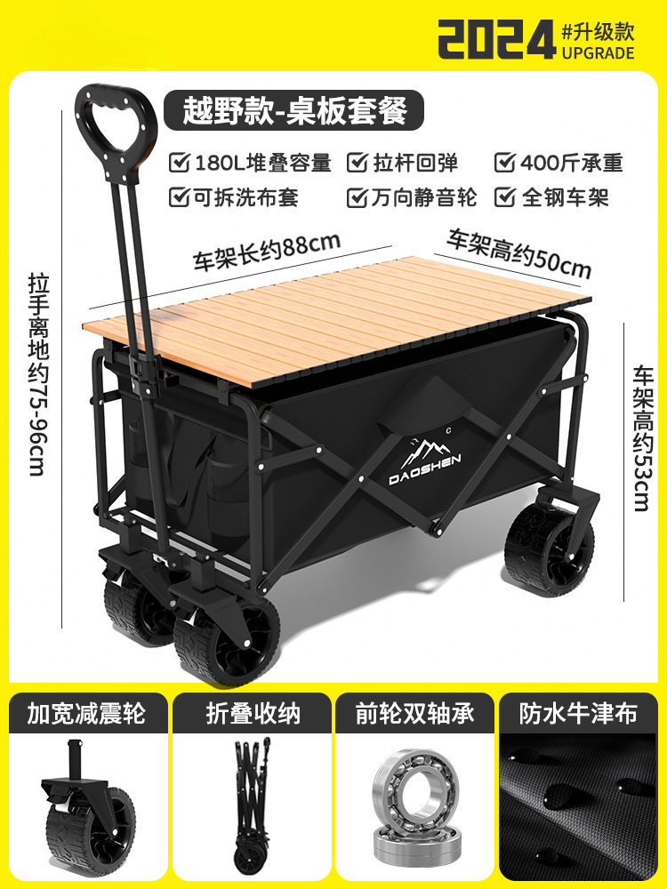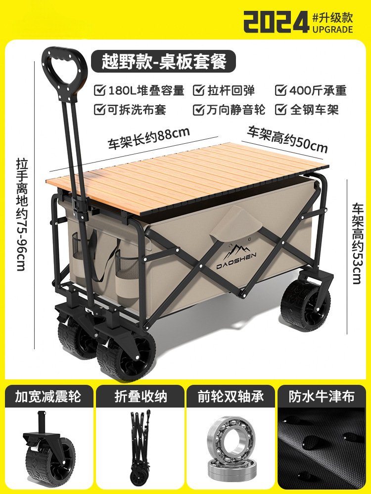 • 점장 추천⭐오프로드 모델 [폭 7cm 대형 타이어] 카키 [더블 브레이크 충격 흡수 휠/내하중 200kg ] + 나뭇결 테이블
