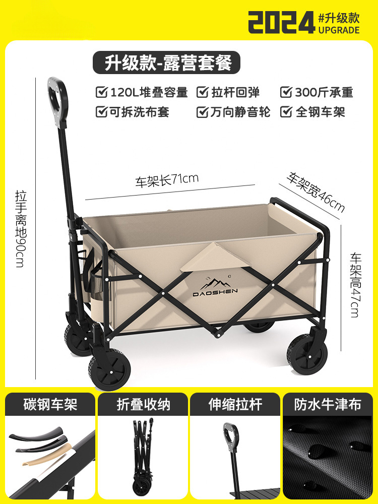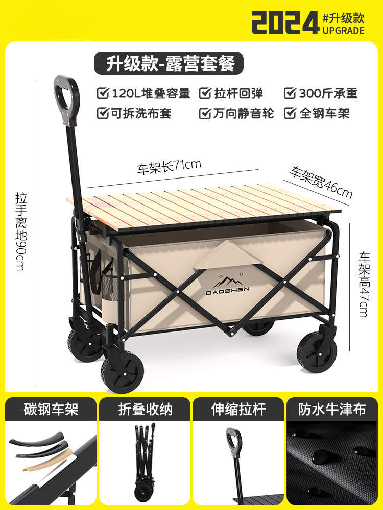야외 캠핑 접이식 트롤리 캠핑 작은 트레일러 캠프 스테이션 왜건 스톨 피크닉 휴대용 소형 트롤리