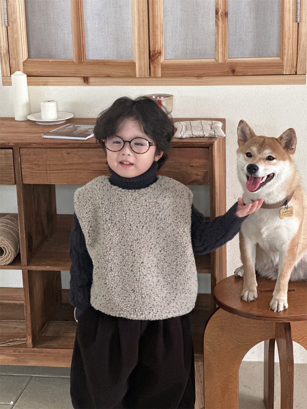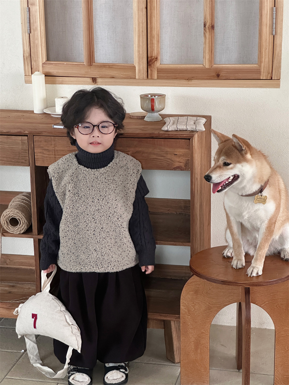 Montaigne 어린이 조끼 2024 겨울 새로운 아기 카디건 남학생과 여자를위한 민소매 재킷 서양식 컬러 모직 스웨터