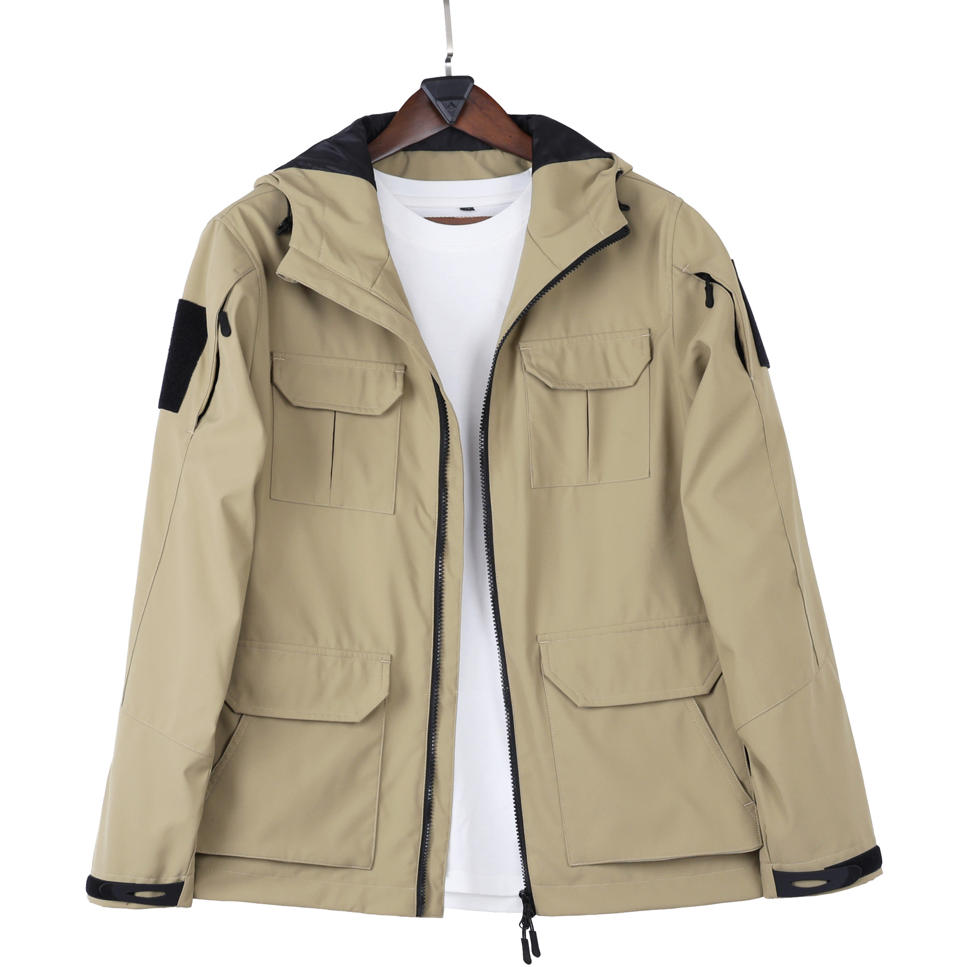 국경 간 재킷 남자 봄과 가을 새로운 유행 올 매치 플러스 사이즈 재킷 남자 캐주얼 후드 느슨한 멀티 포켓 사냥 원피스스토어 가기