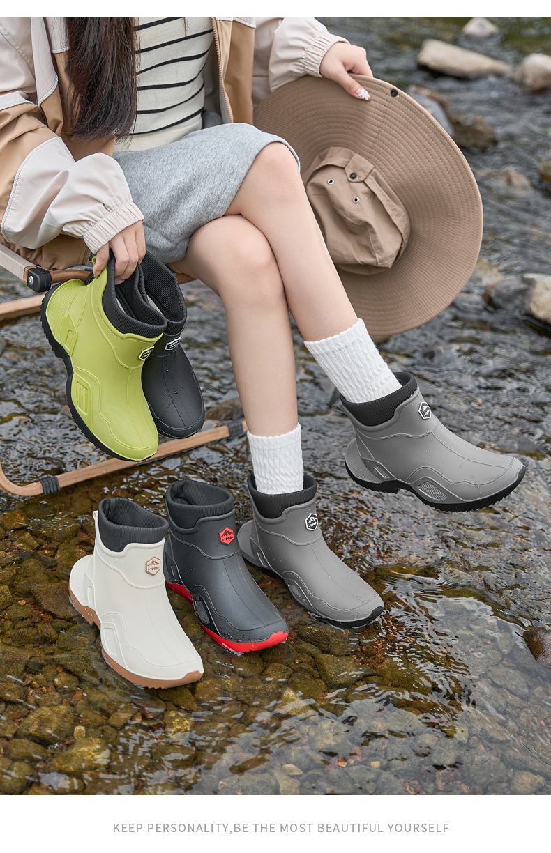 올 매치 쇼트 튜브 커플 따뜻한 여성 레인 부츠 사계절 레인 부츠 비 슬립 낚시 작업 테이크 아웃 방수 신발 착용
