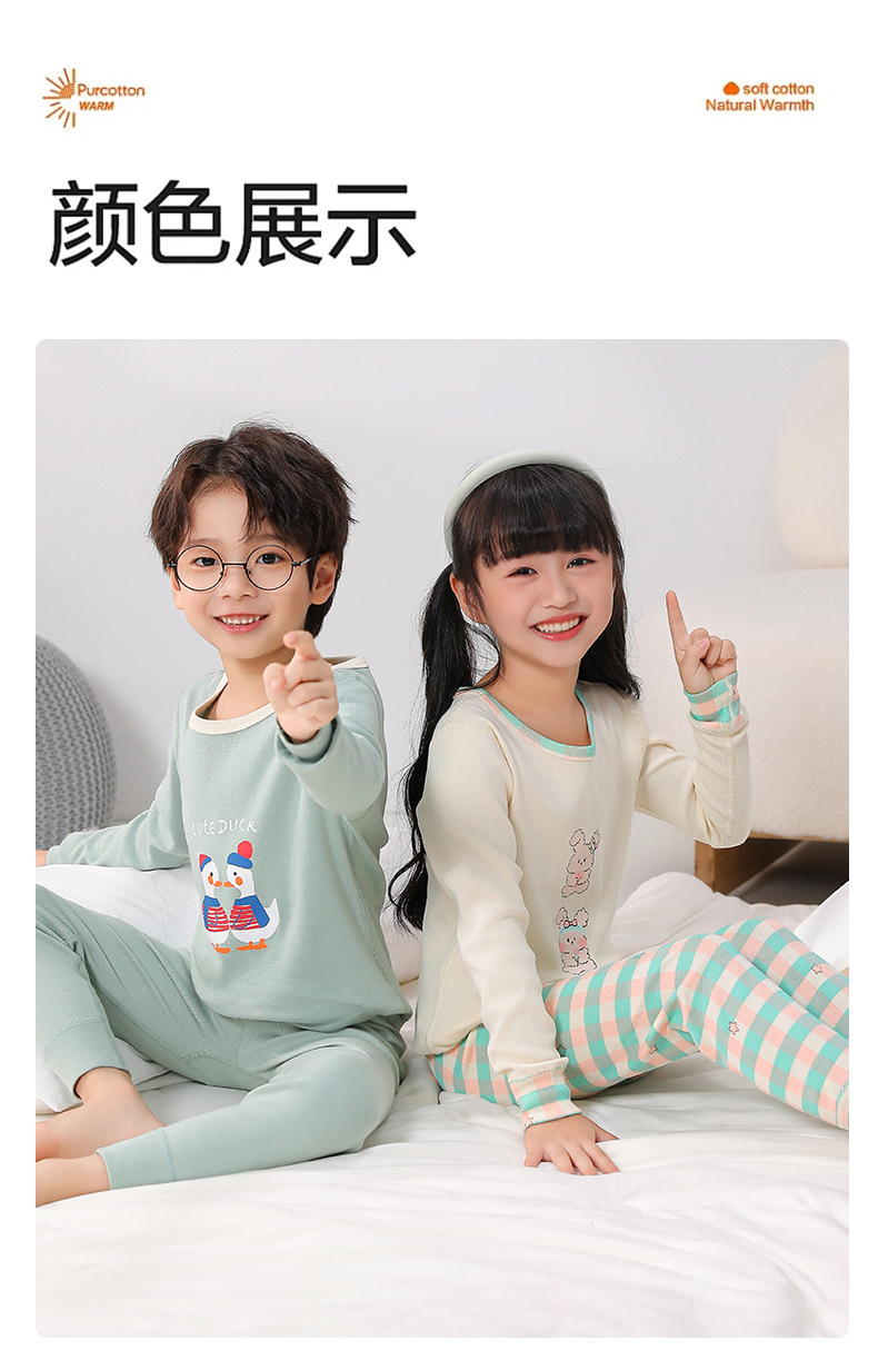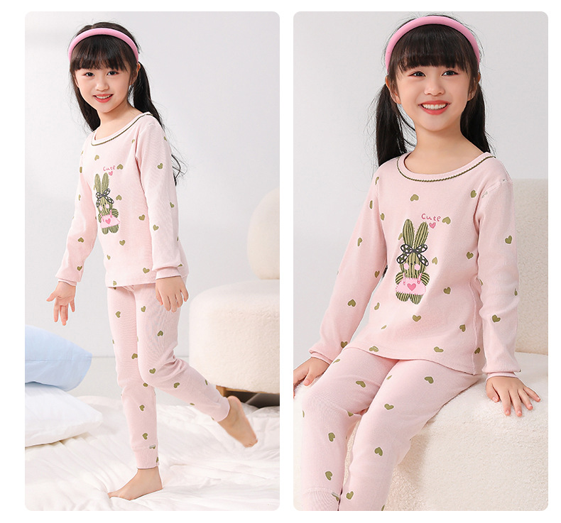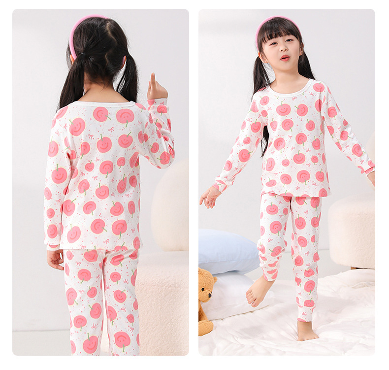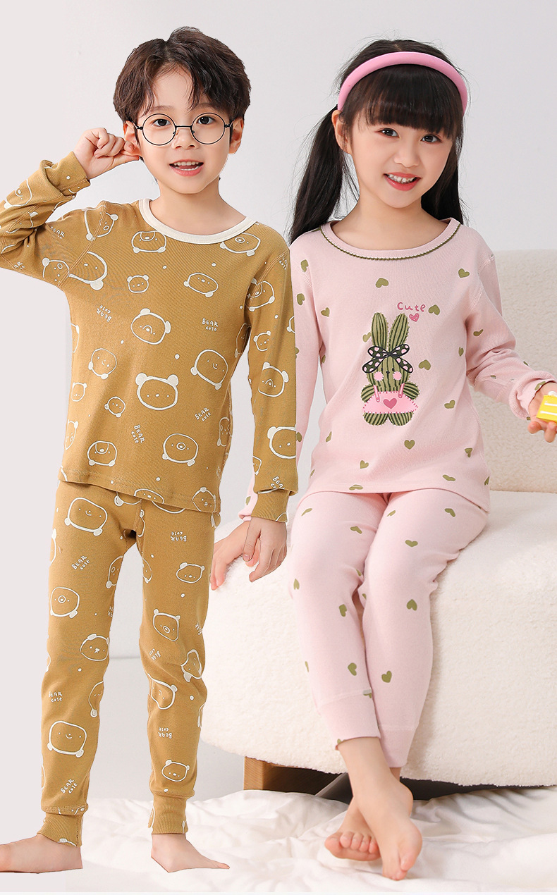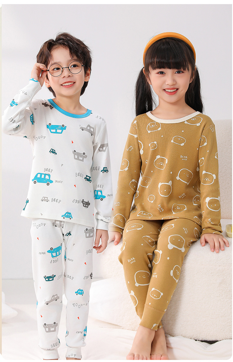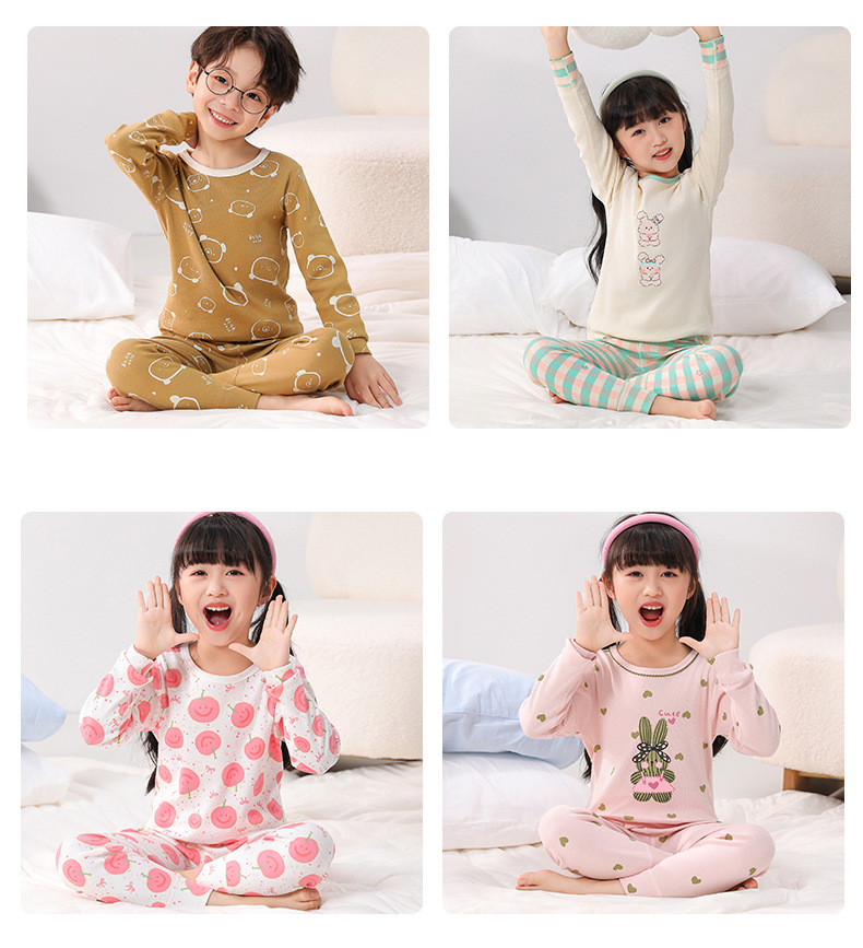 2024 가을과 겨울 새로운 어린이 면화 속옷 세트 만화 인쇄 둥근 목 기본 홈 옷 소년 소녀
