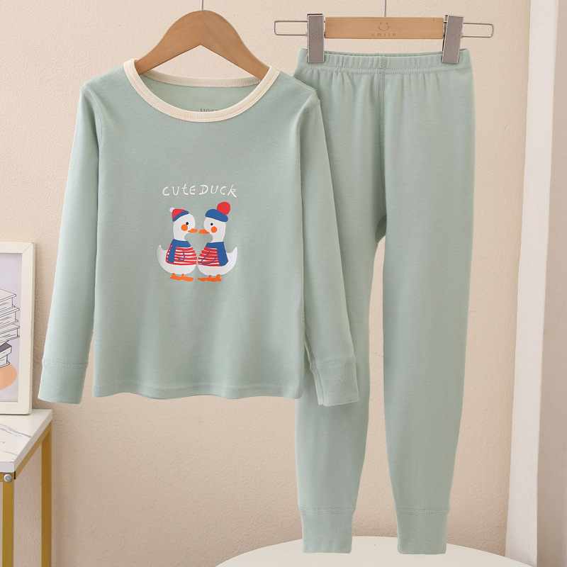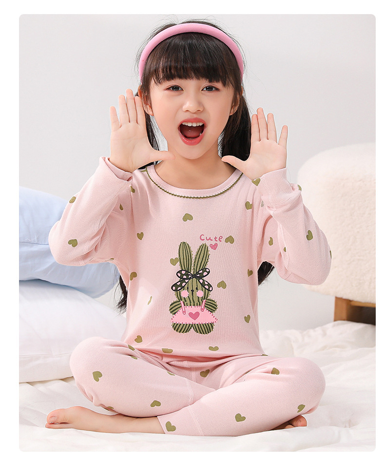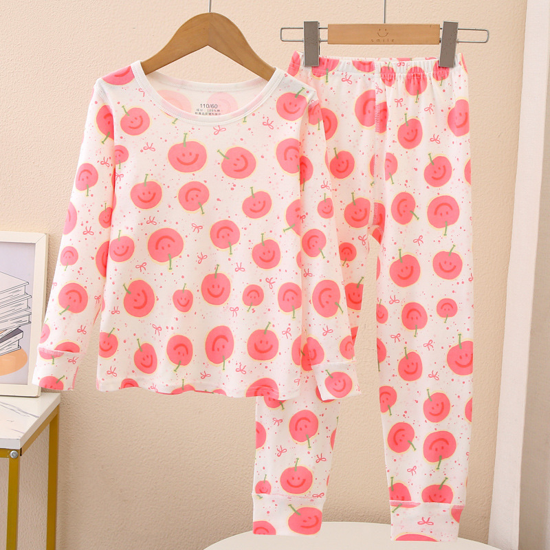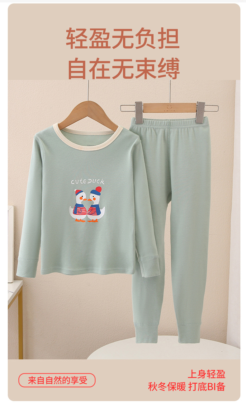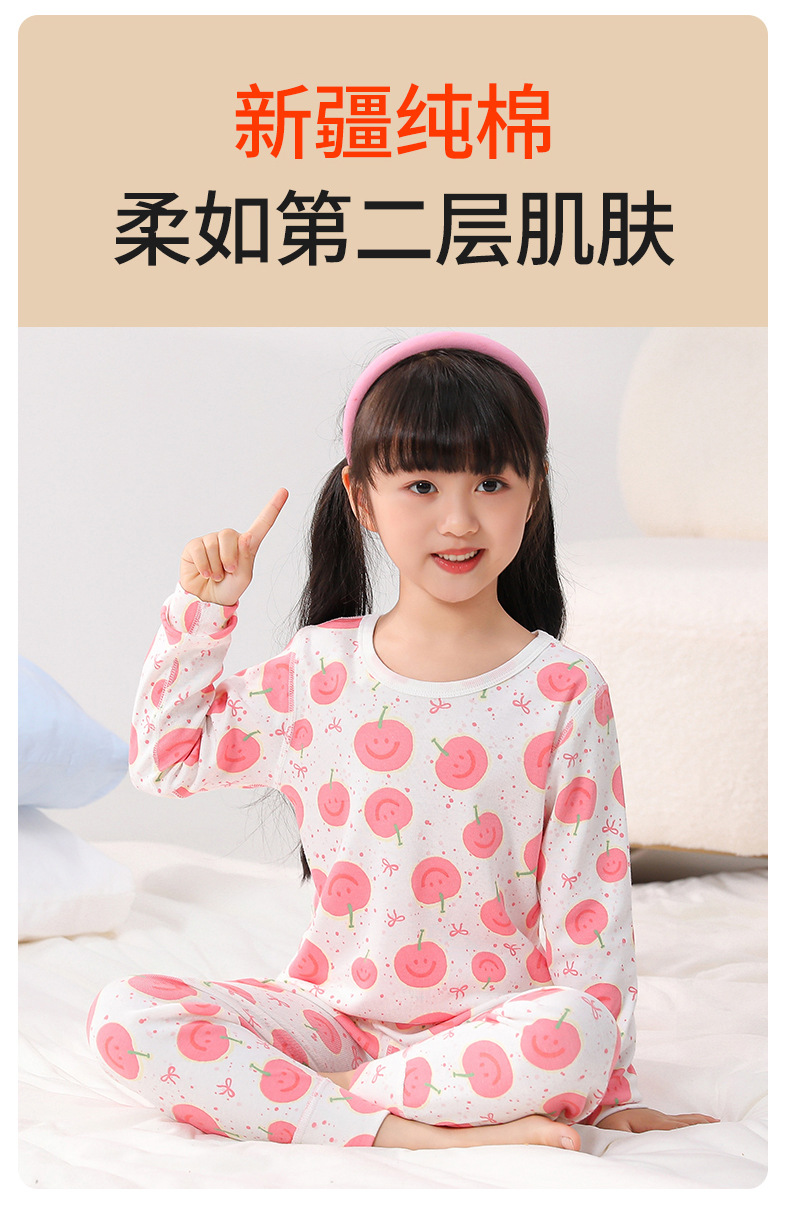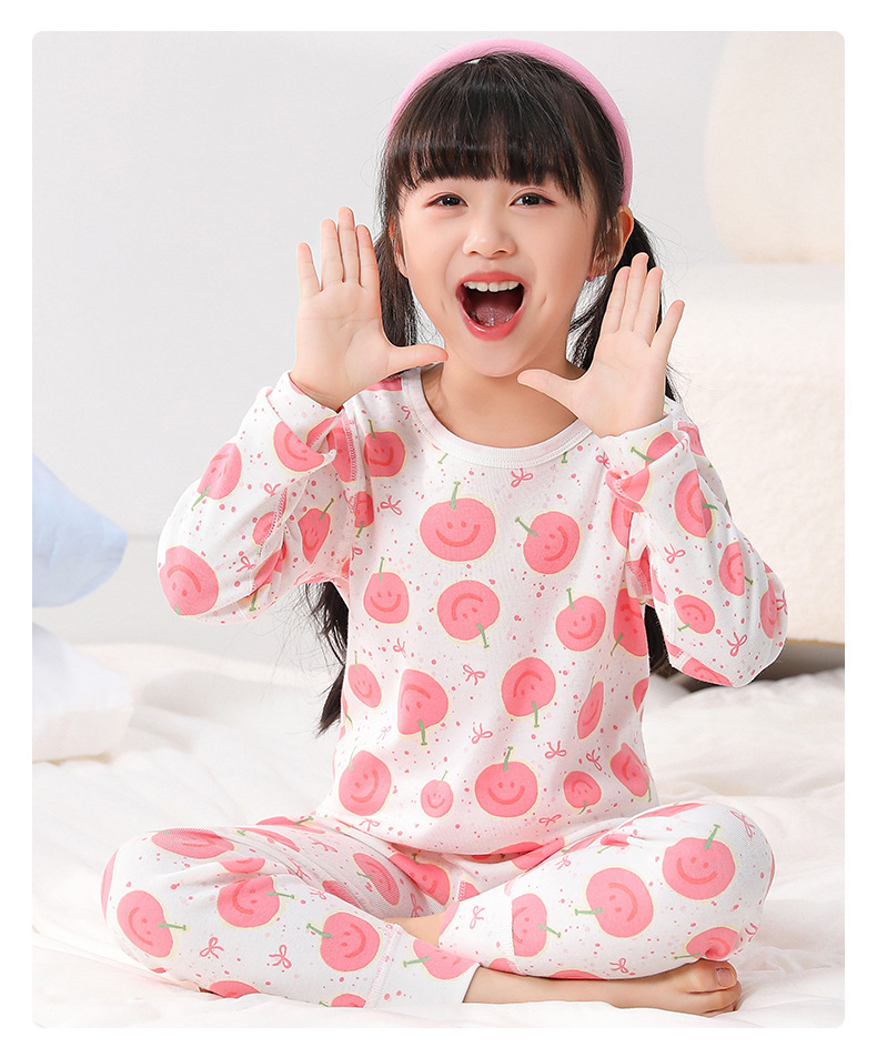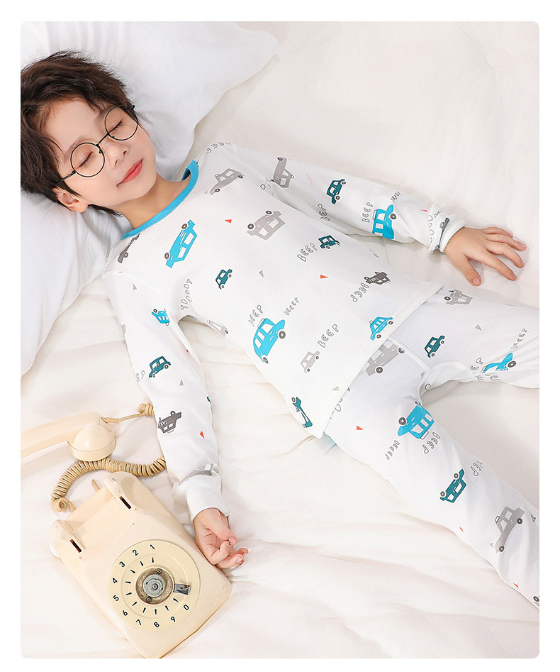 2024 가을과 겨울 새로운 어린이 면화 속옷 세트 만화 인쇄 둥근 목 기본 홈 옷 소년 소녀