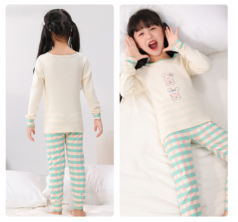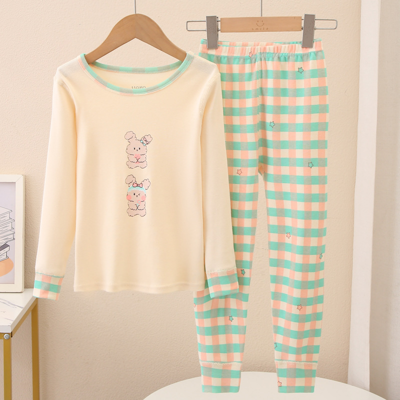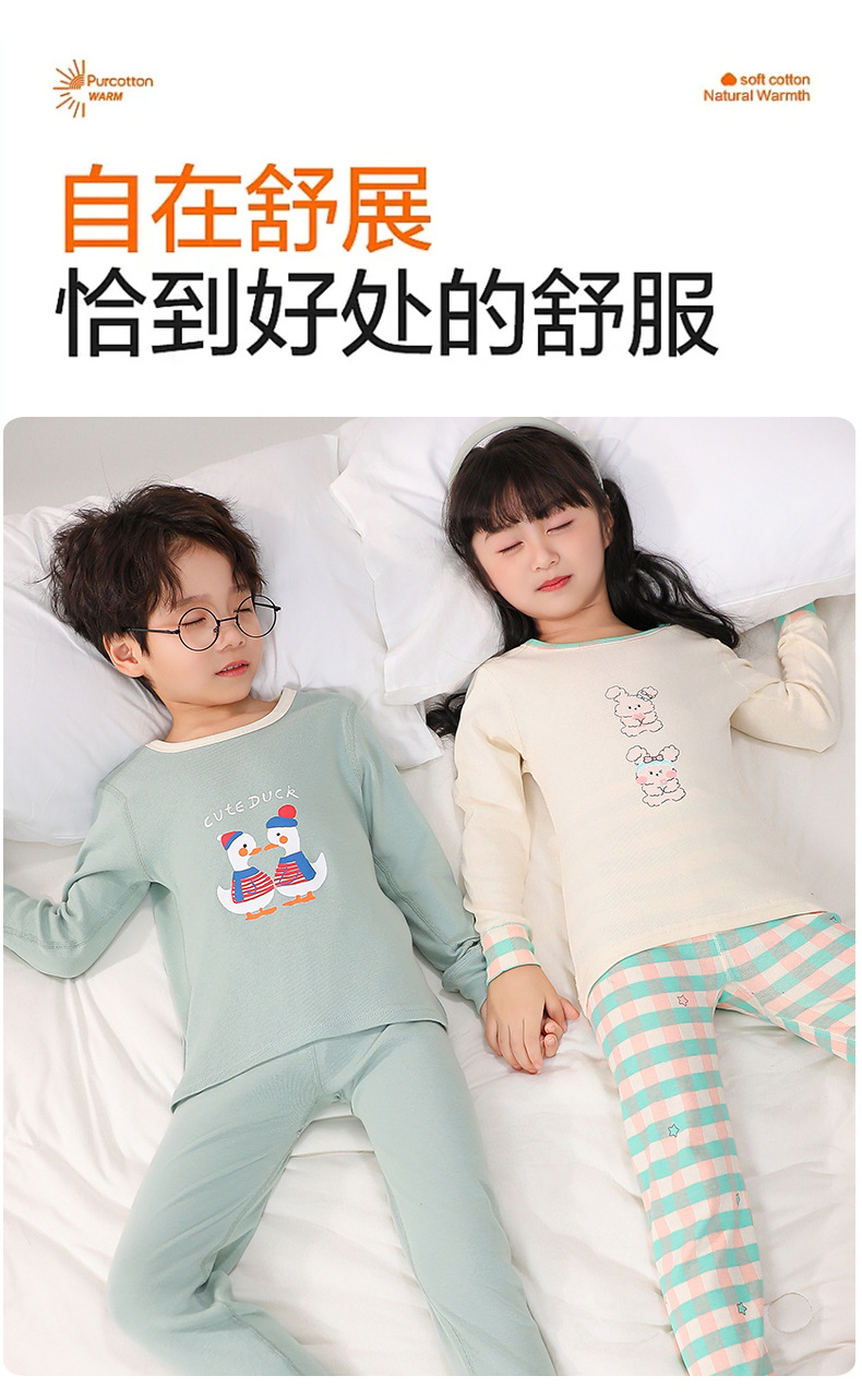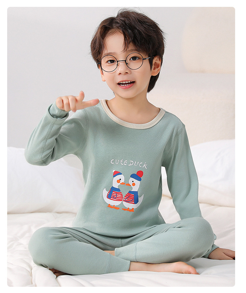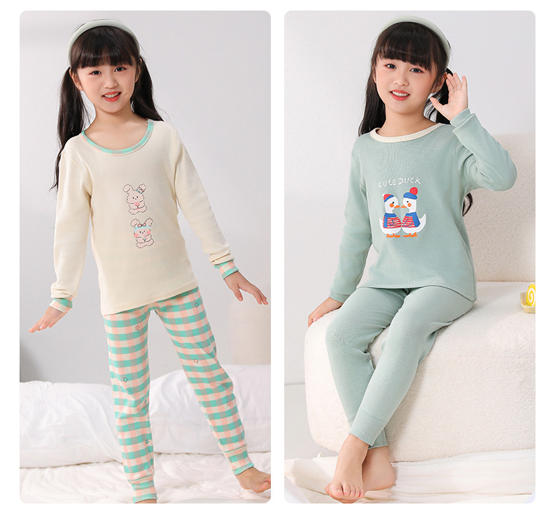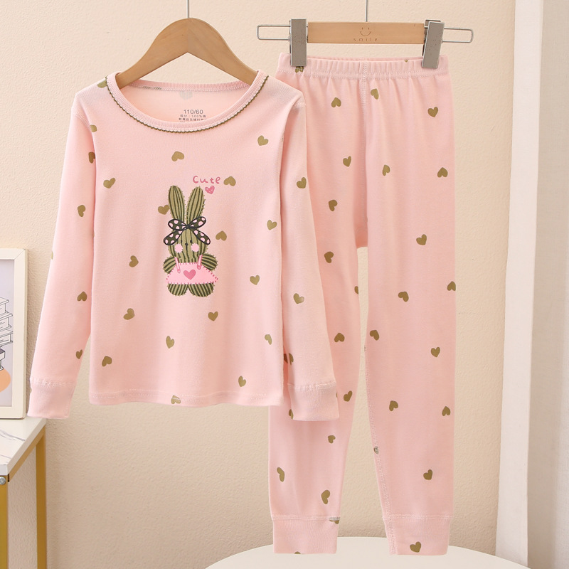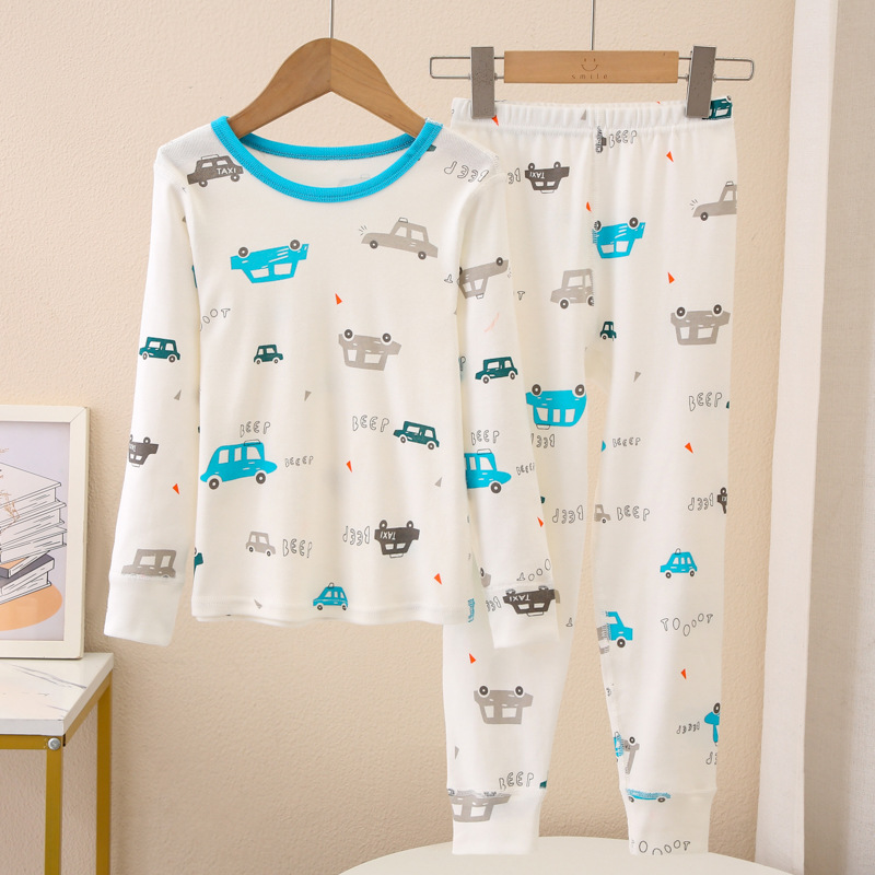 2024 가을과 겨울 새로운 어린이 면화 속옷 세트 만화 인쇄 둥근 목 기본 홈 옷 소년 소녀