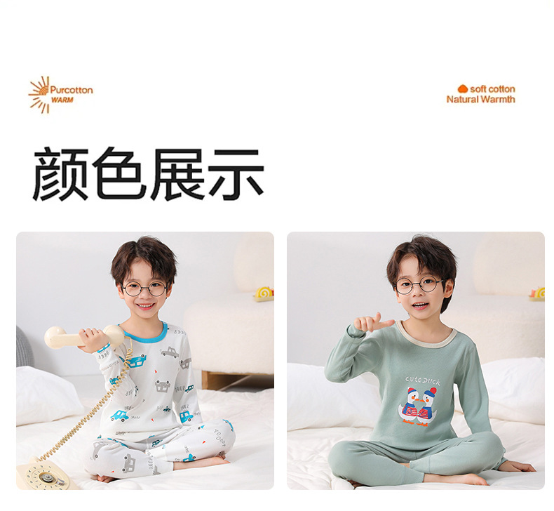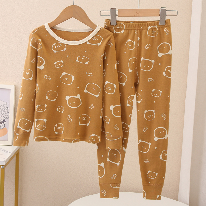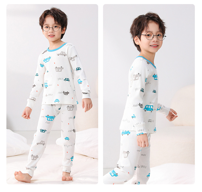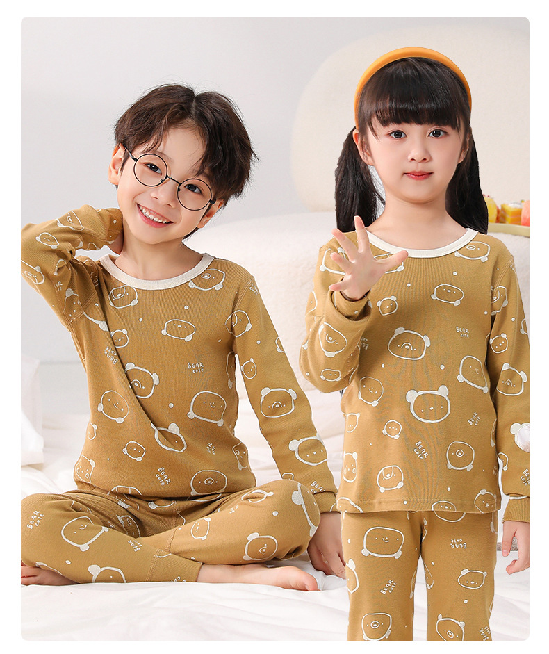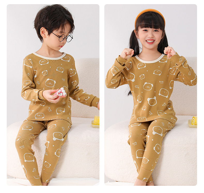 2024 가을과 겨울 새로운 어린이 면화 속옷 세트 만화 인쇄 둥근 목 기본 홈 옷 소년 소녀스토어 가기