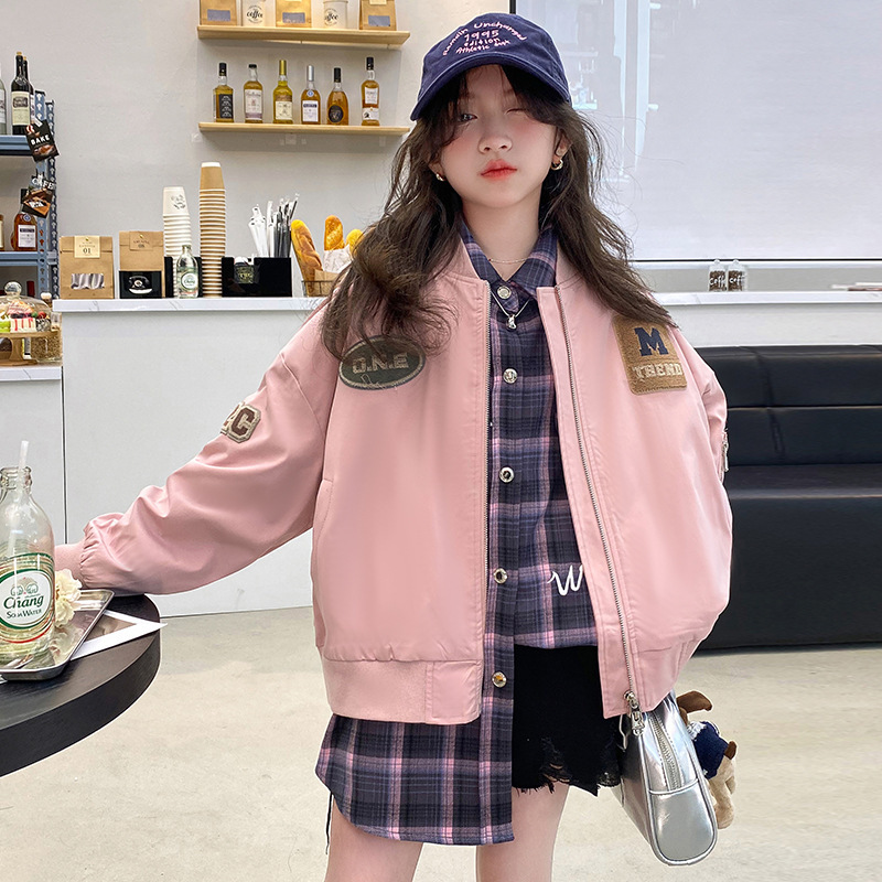 소녀 야구 세트 코트 2024 봄과 가을 새로운 어린이 서양식 재킷 옷 큰 어린이 가을 재킷 소녀스토어 가기