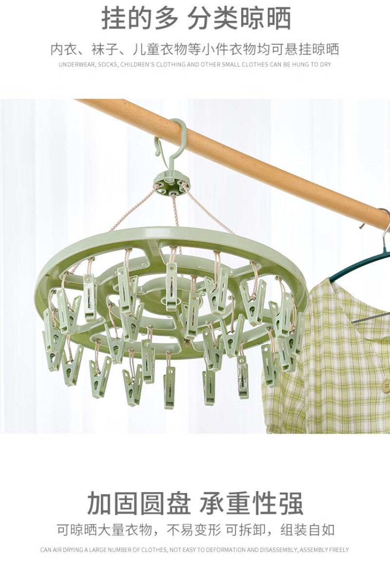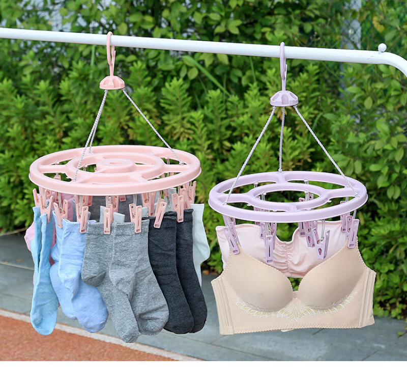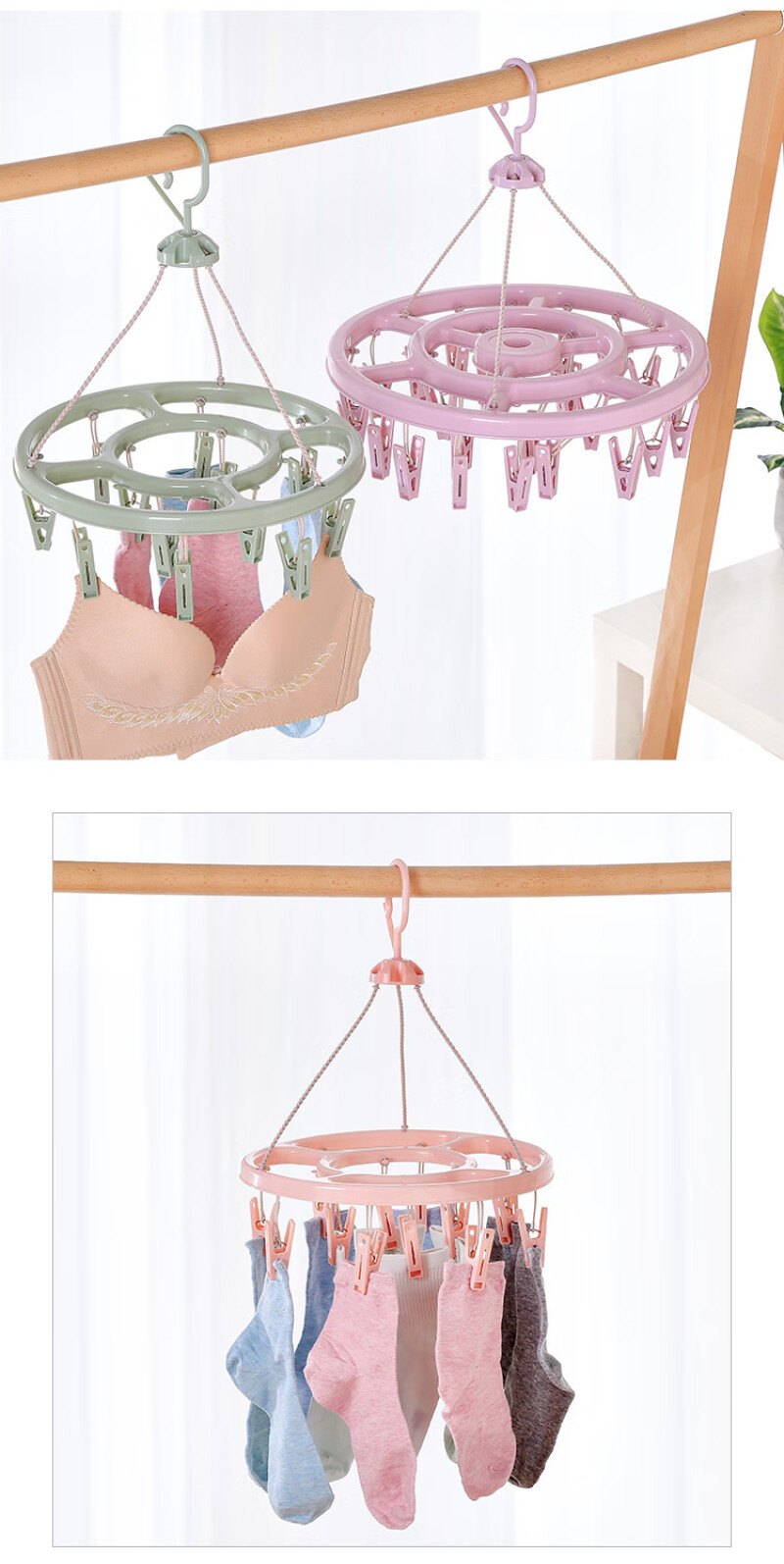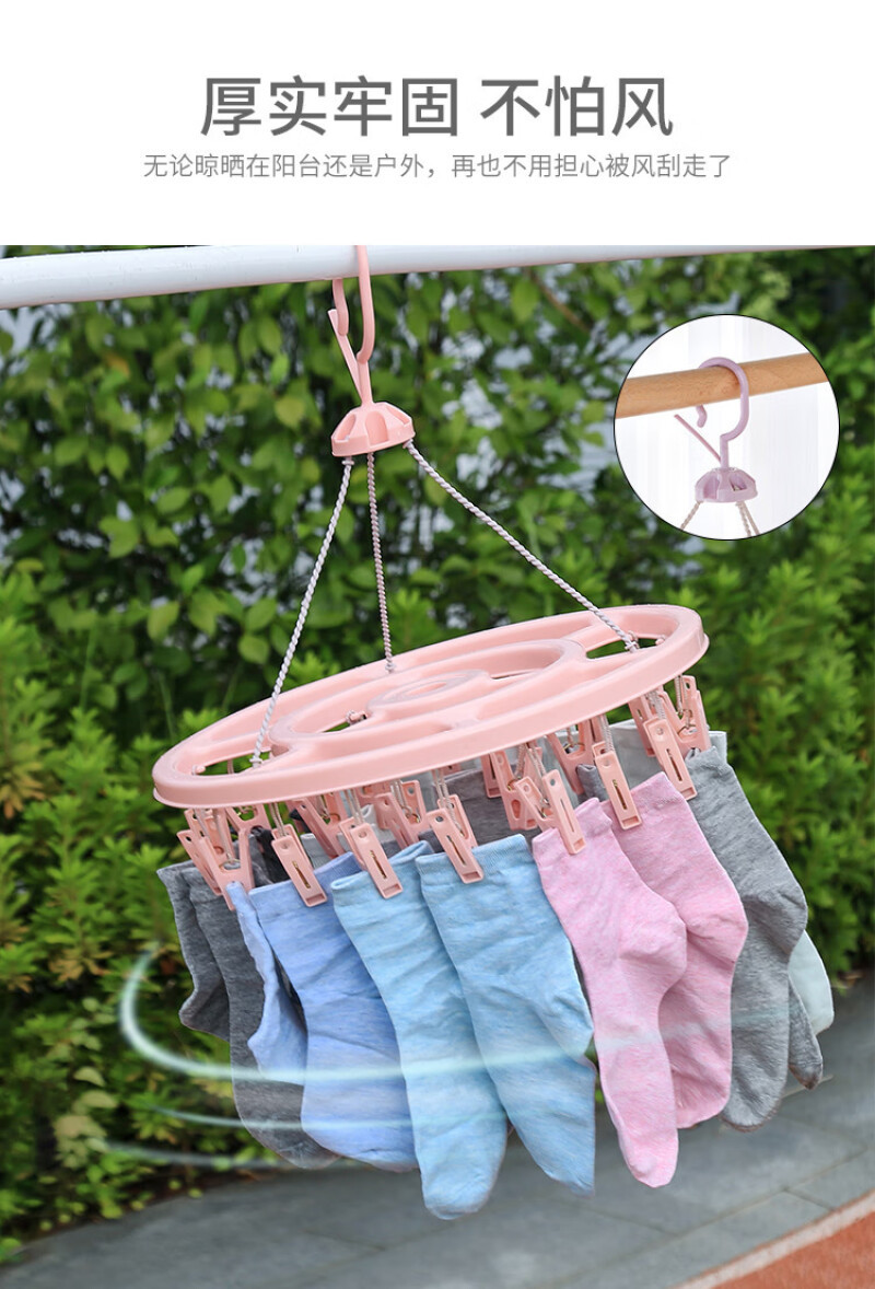 방풍 라운드 건조 랙 플라스틱 32 클립 걸이 어린이 양말 랙 아기 가구 다기능 건조 랙