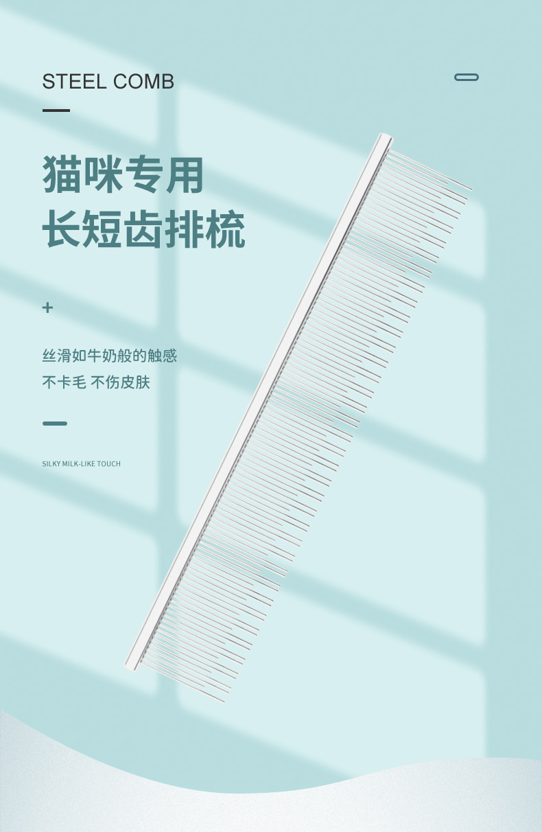 리차오다 애완동물 빗, 롱헤어 고양이 빗, 긴/짧은 치아 이중 빗, 고양이 털 제거용 스틸 빗