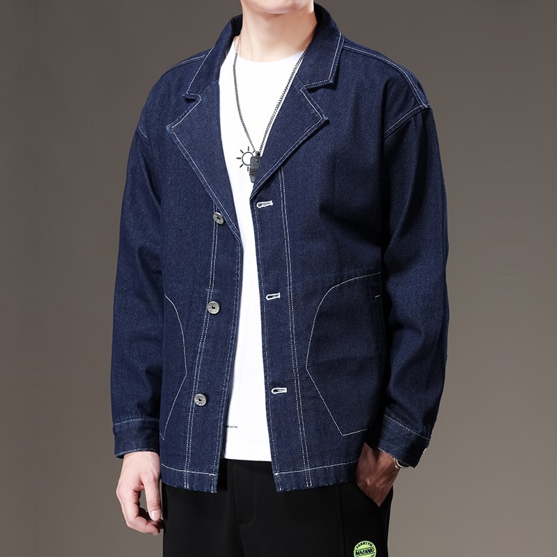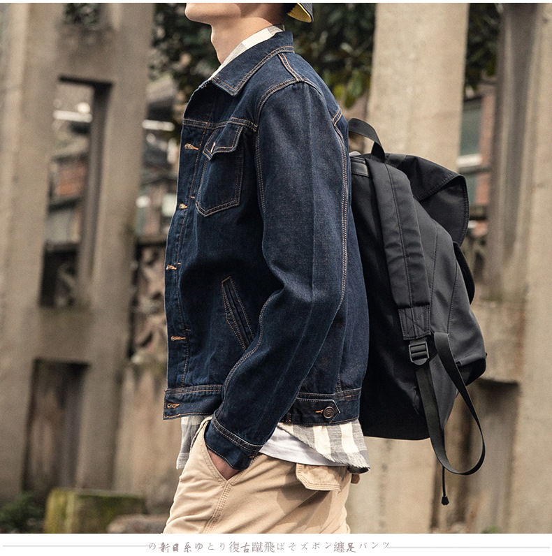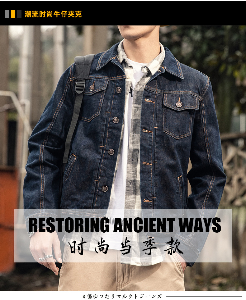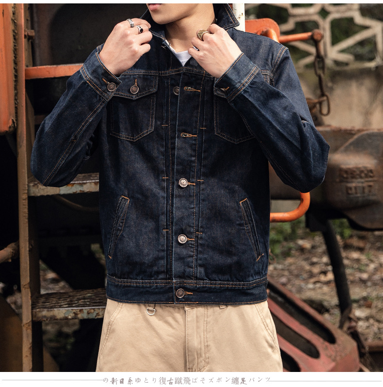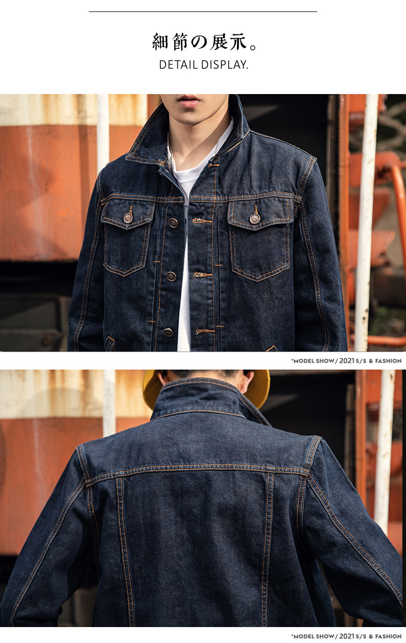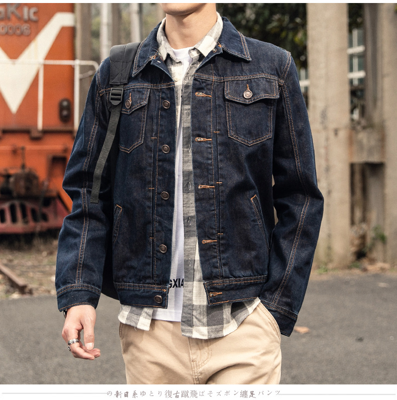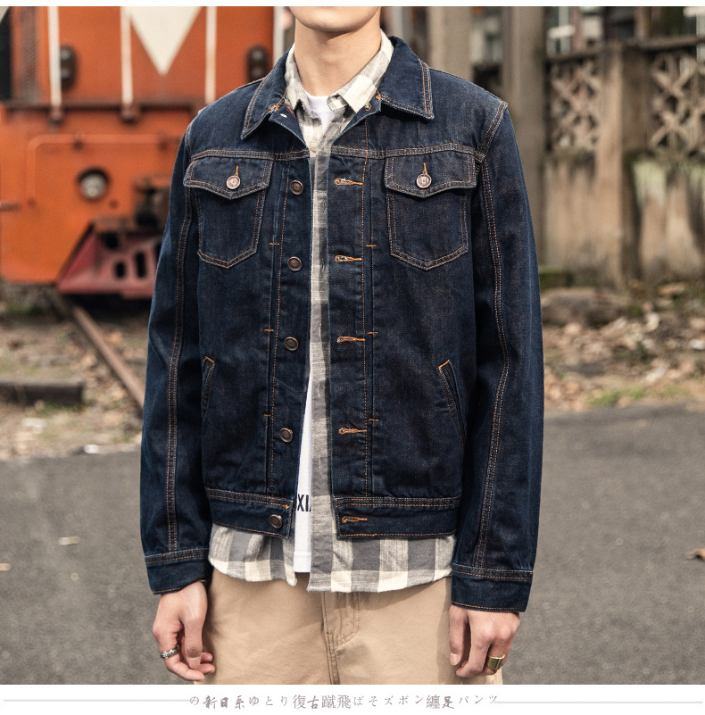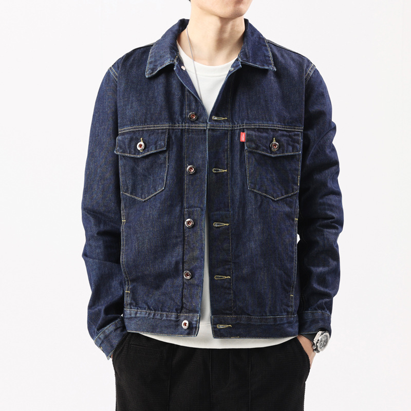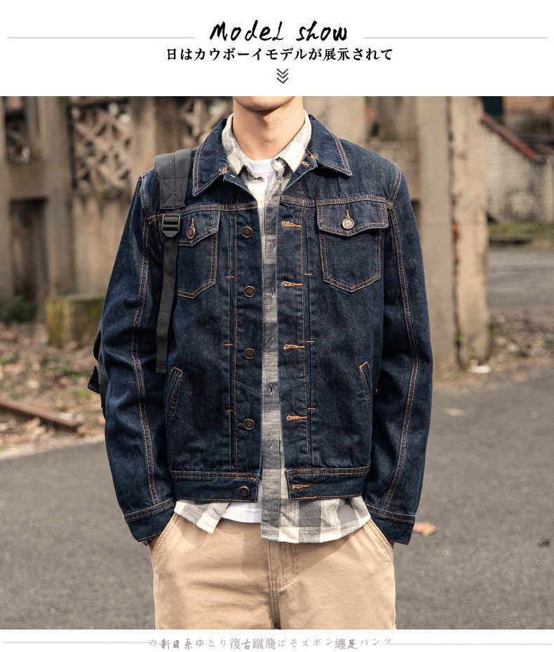 남자 캐주얼 청바지 남자 데님 재킷 코트 남자 세탁 작업복 남자 다크 블루 소년 청바지스토어 가기