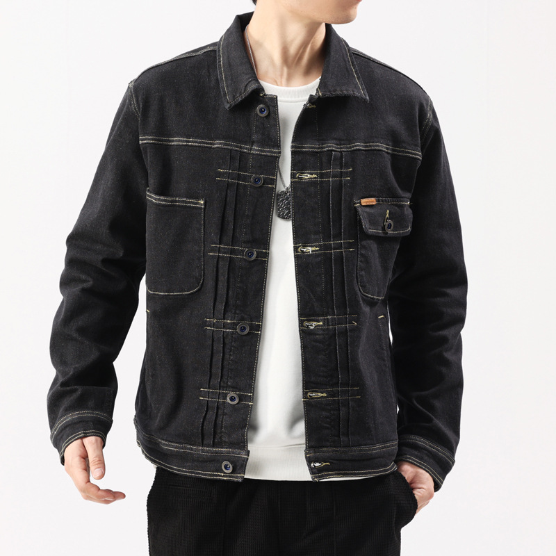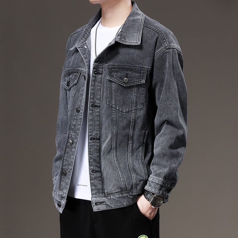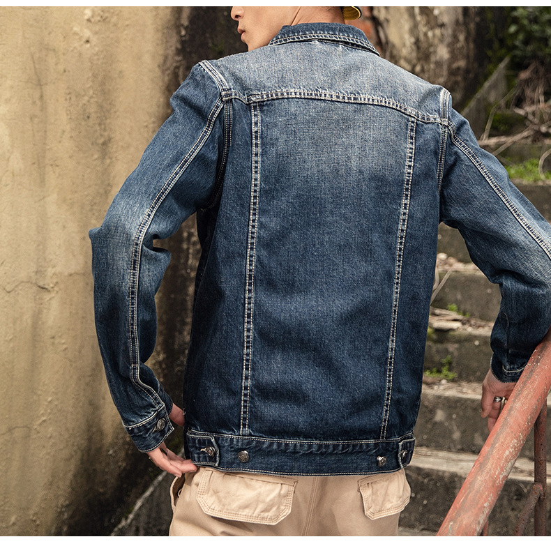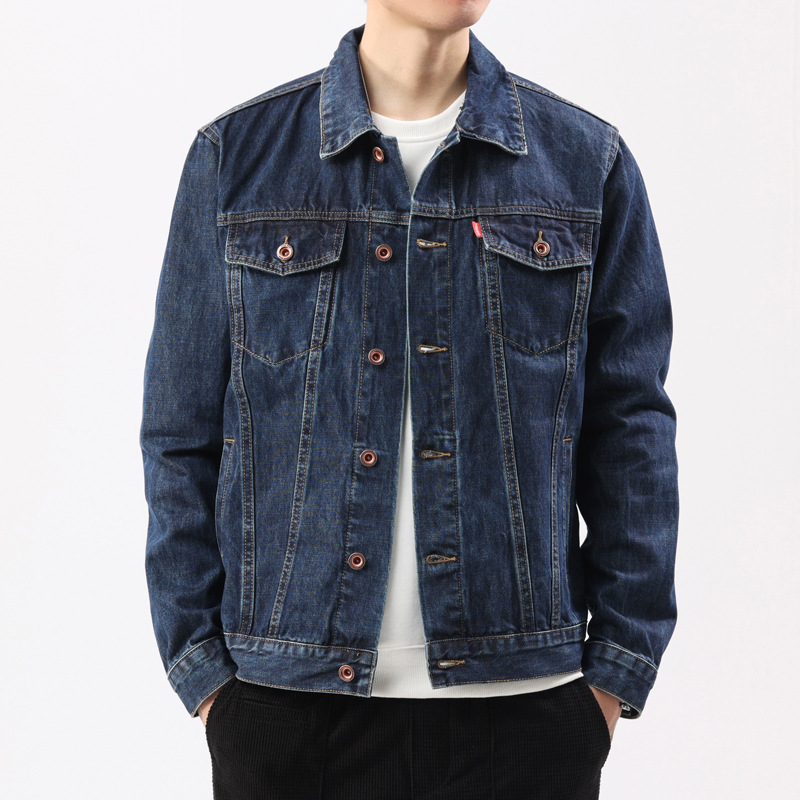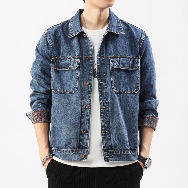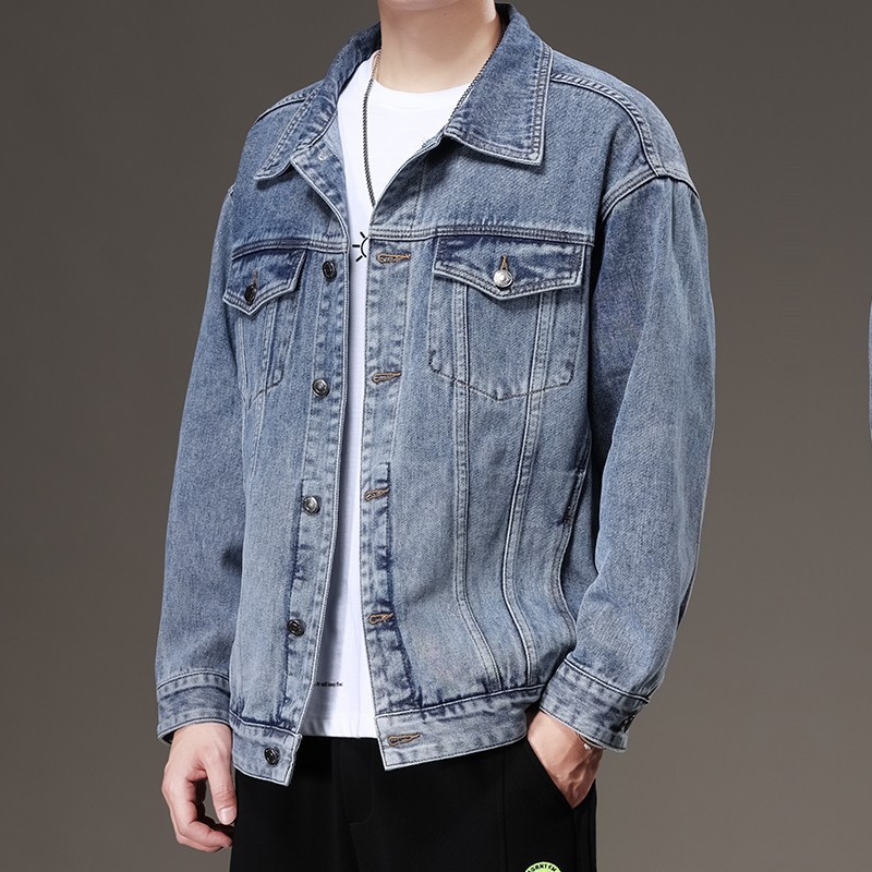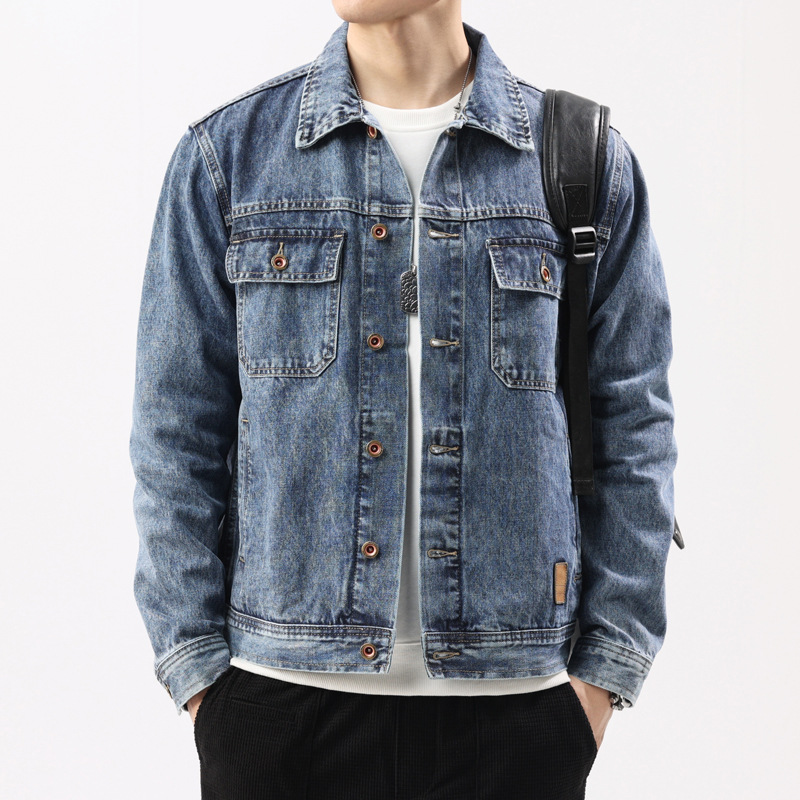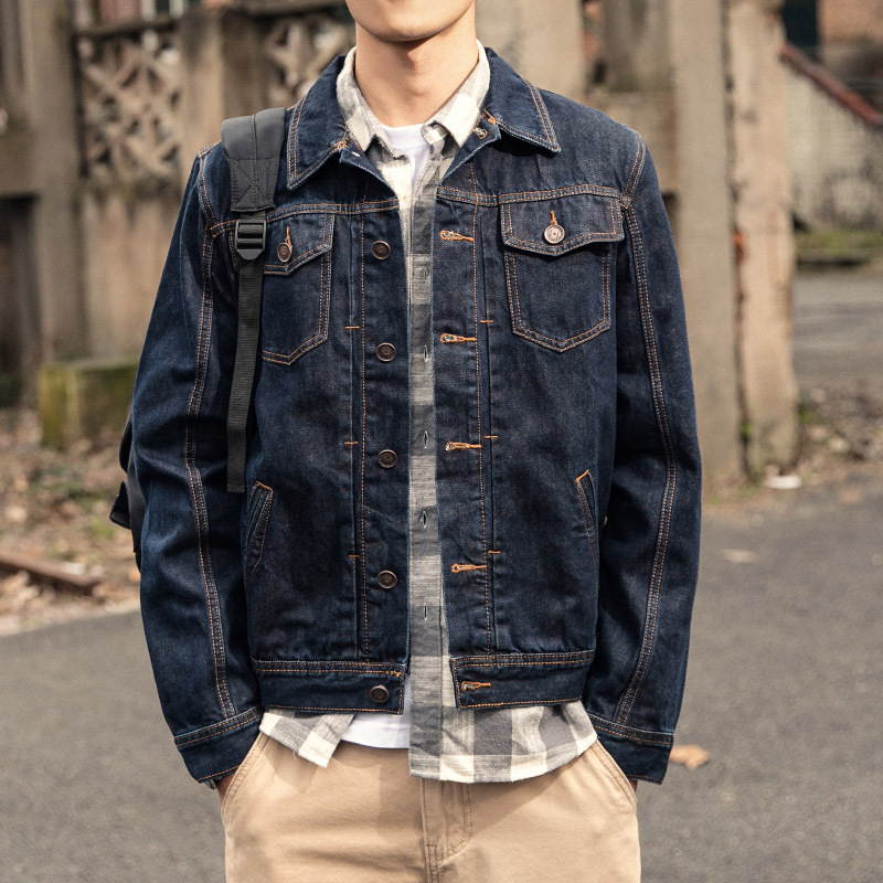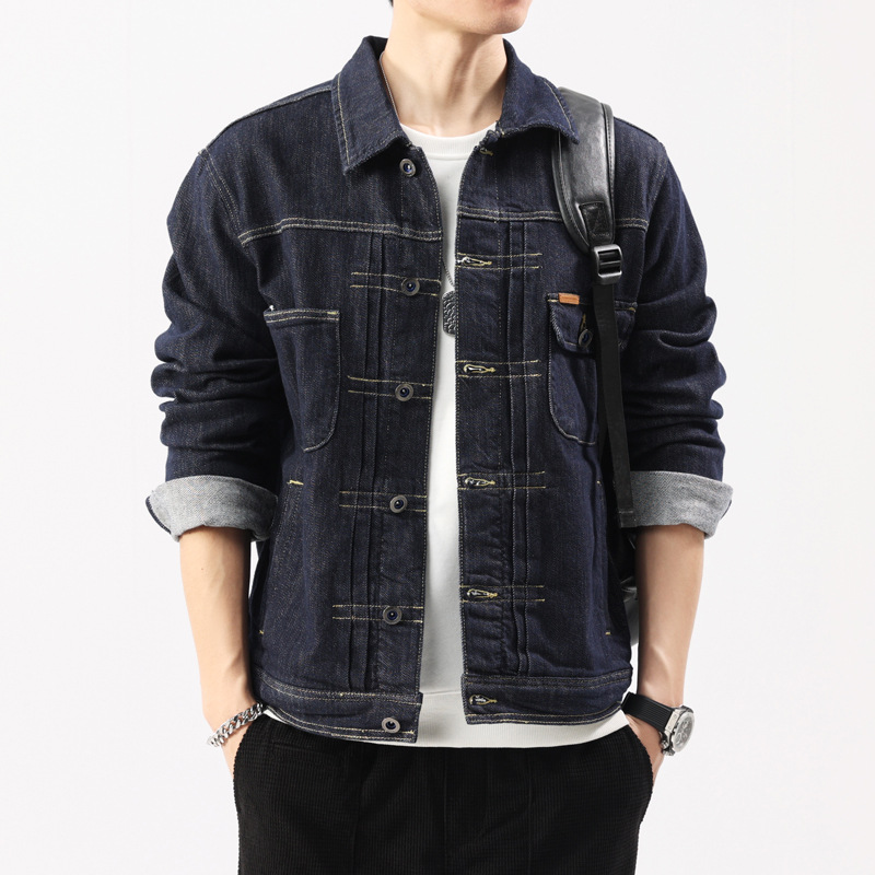 남자 캐주얼 청바지 남자 데님 재킷 코트 남자 세탁 작업복 남자 다크 블루 소년 청바지스토어 가기