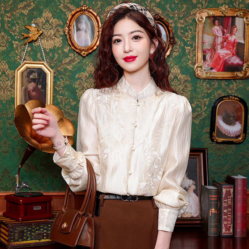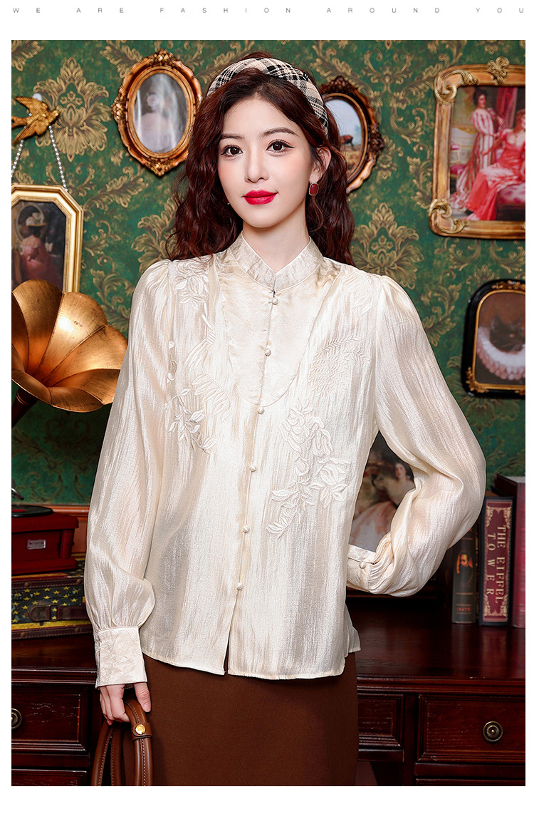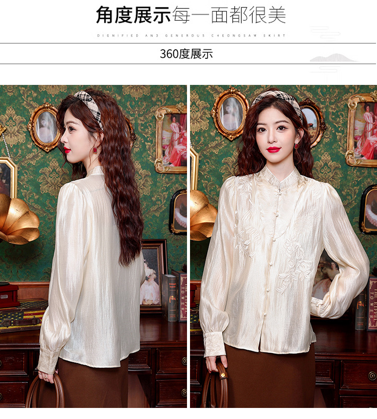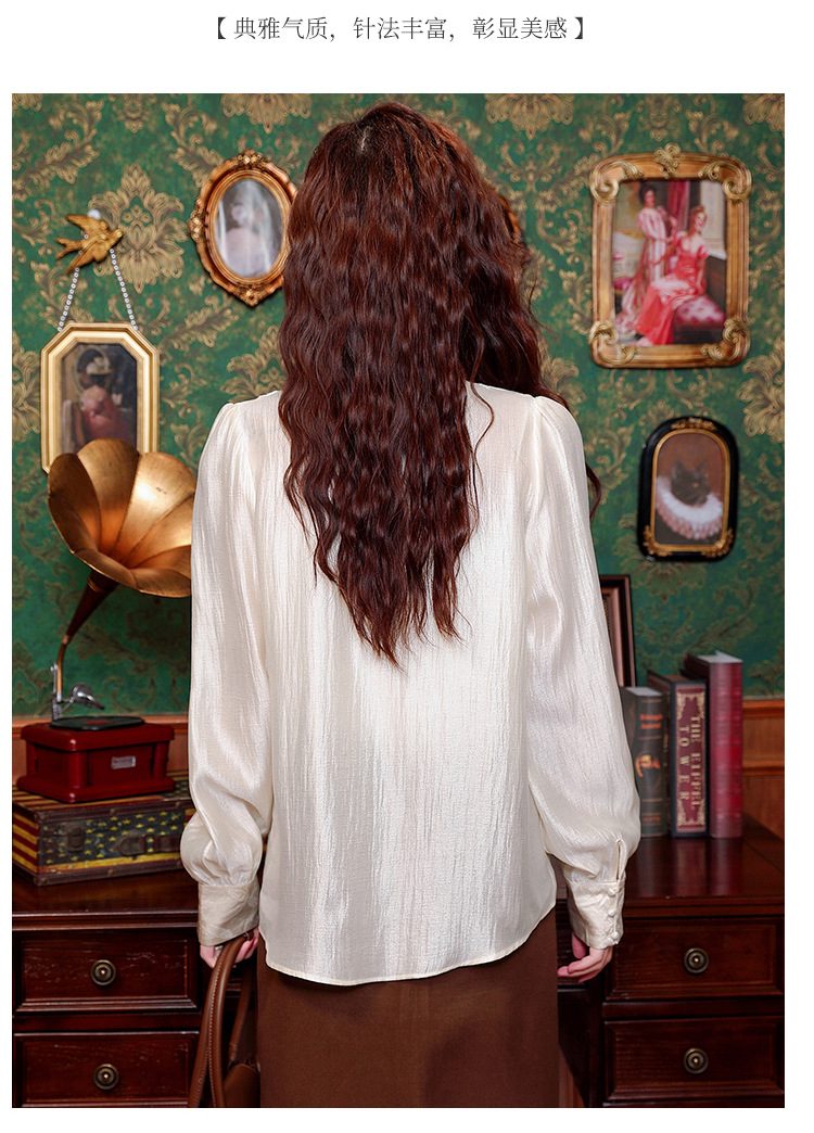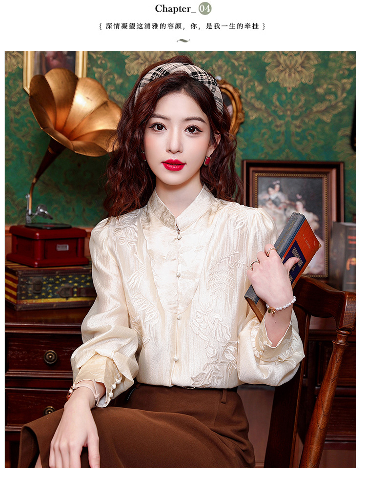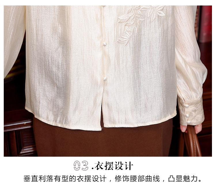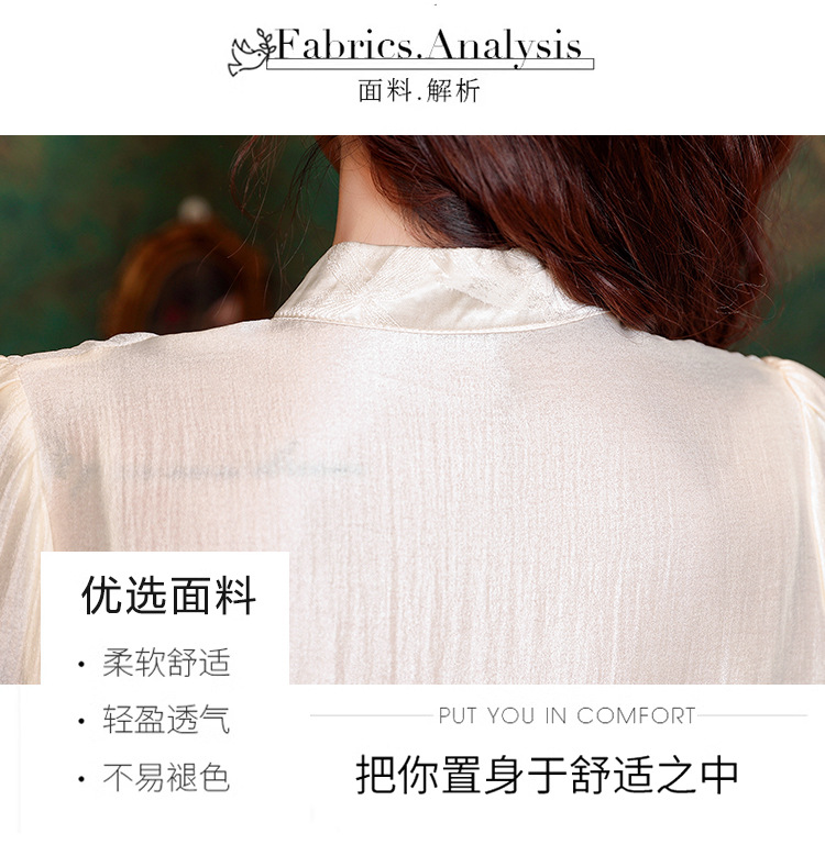 하이 퀄리티 피부 친화적 인 편안한 플러스 사이즈 나이를 줄이는 중년 어머니 가을 새로운 통근 셔츠 쉬폰 랜턴 슬리브 셔츠