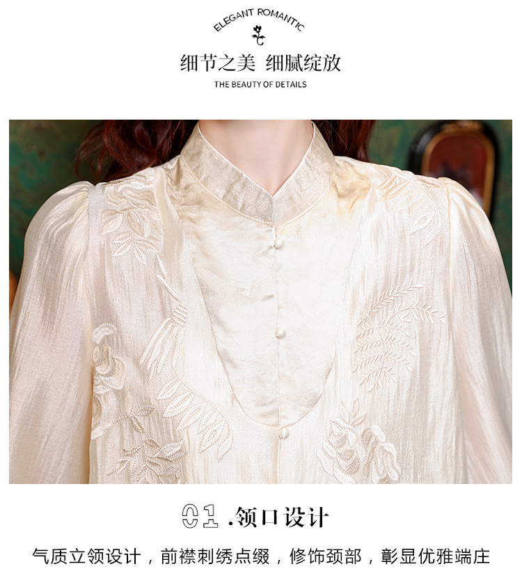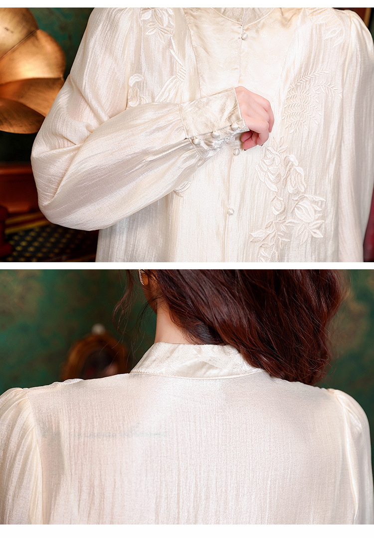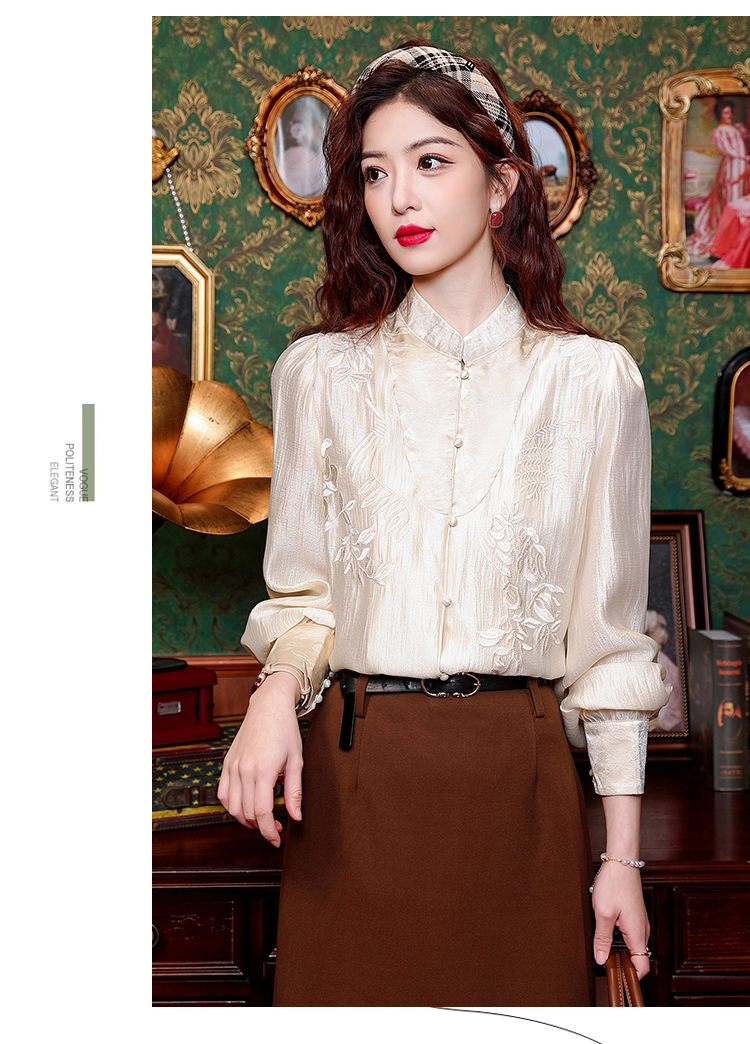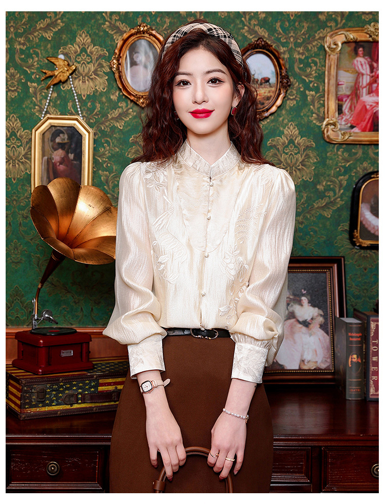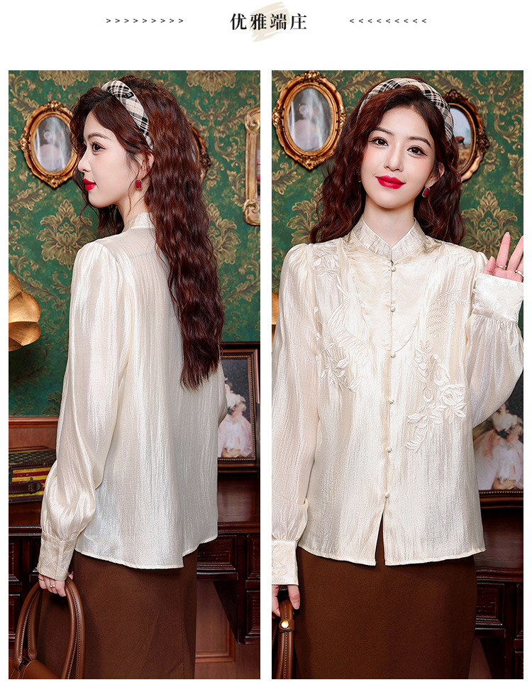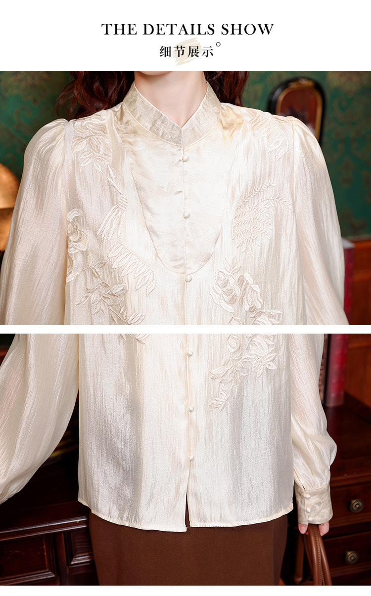 하이 퀄리티 피부 친화적 인 편안한 플러스 사이즈 나이를 줄이는 중년 어머니 가을 새로운 통근 셔츠 쉬폰 랜턴 슬리브 셔츠