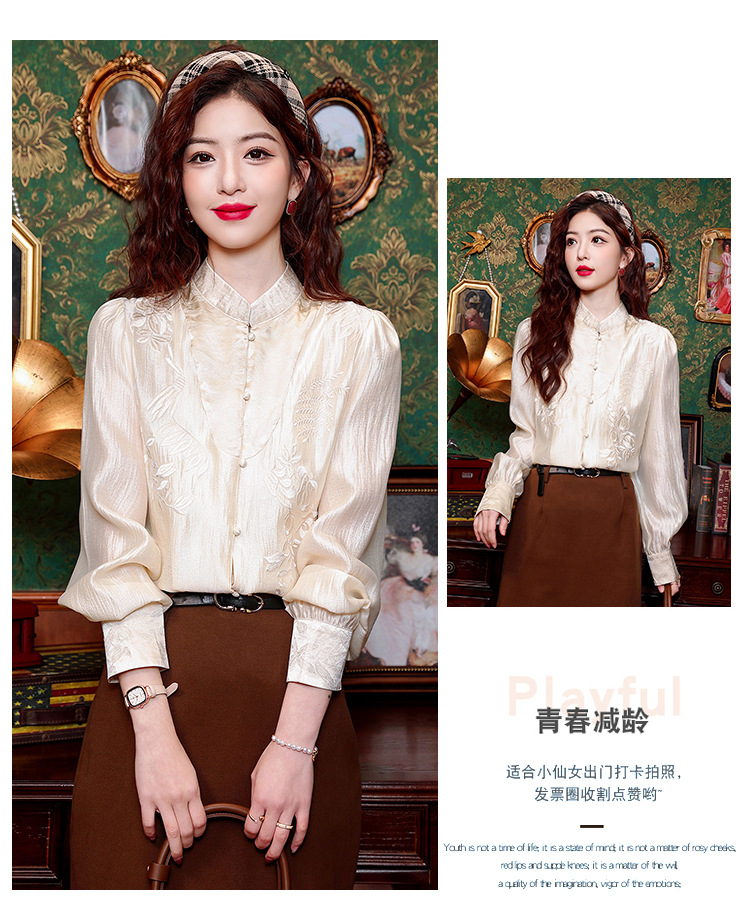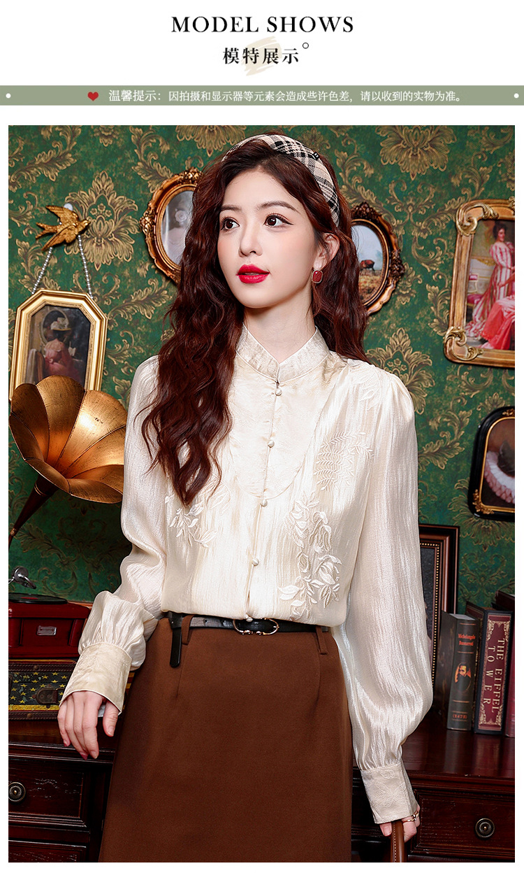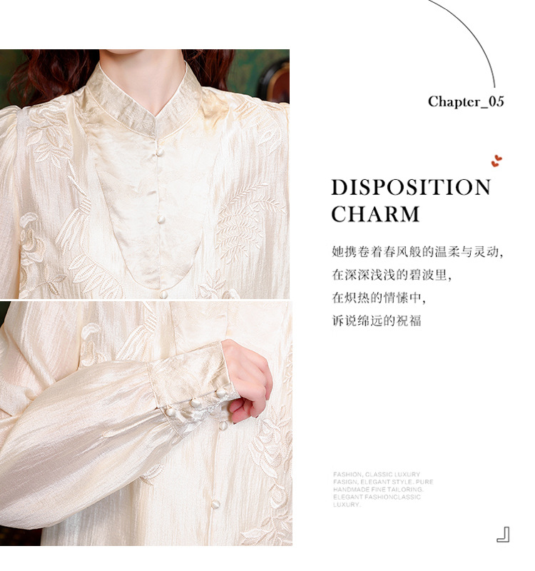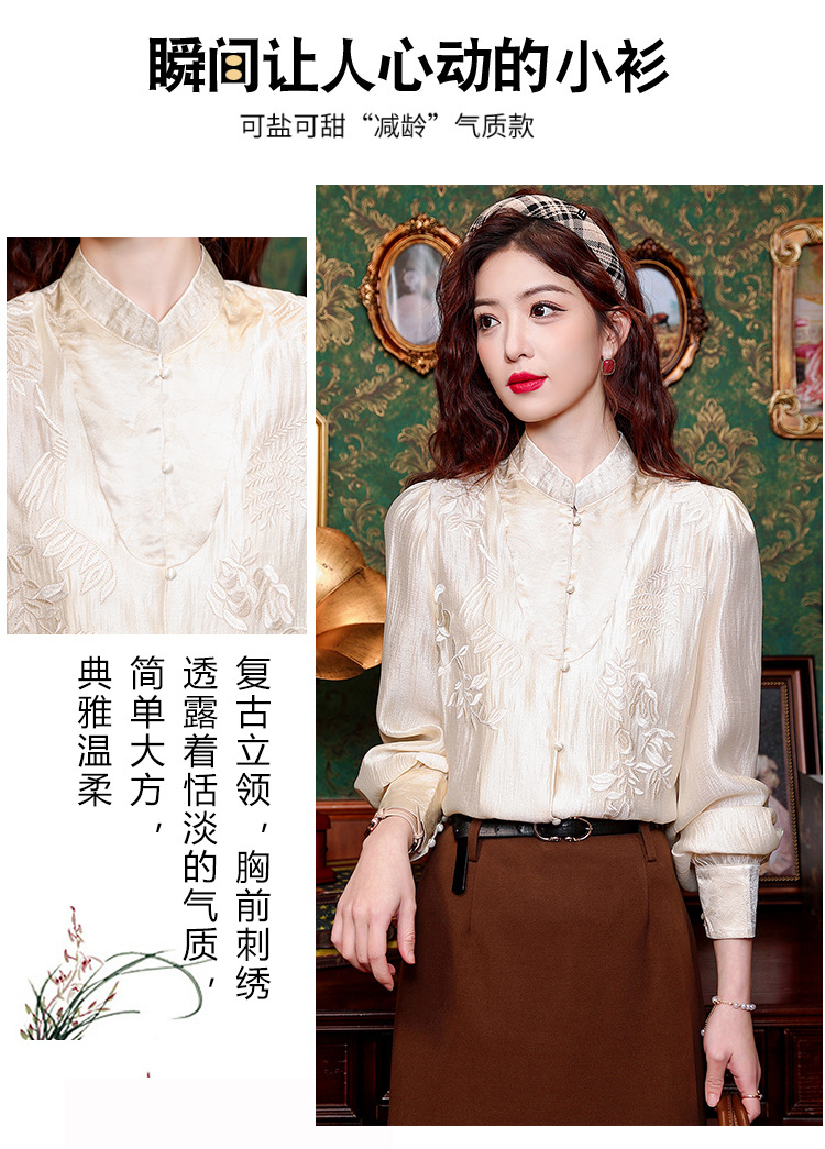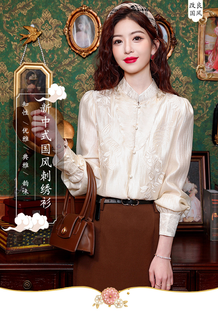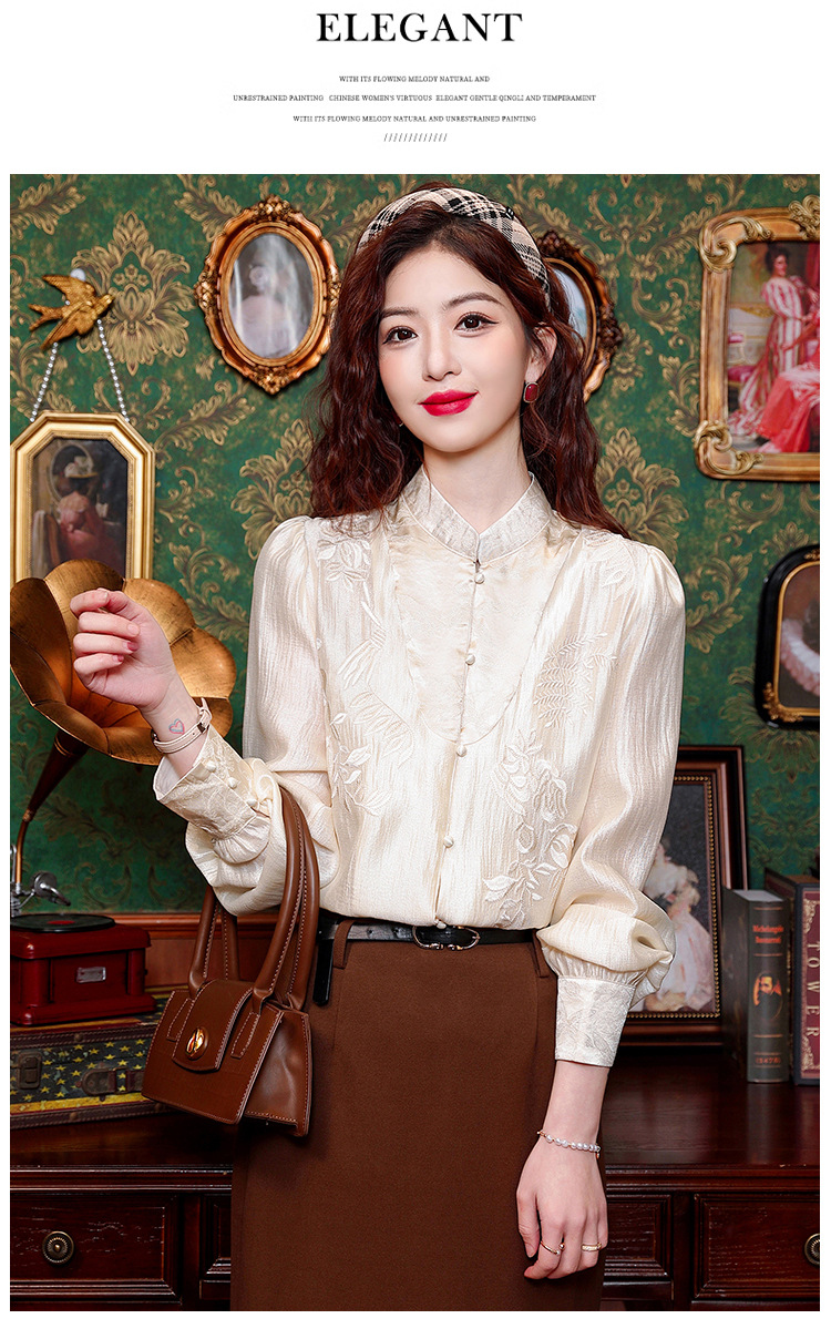 하이 퀄리티 피부 친화적 인 편안한 플러스 사이즈 나이를 줄이는 중년 어머니 가을 새로운 통근 셔츠 쉬폰 랜턴 슬리브 셔츠