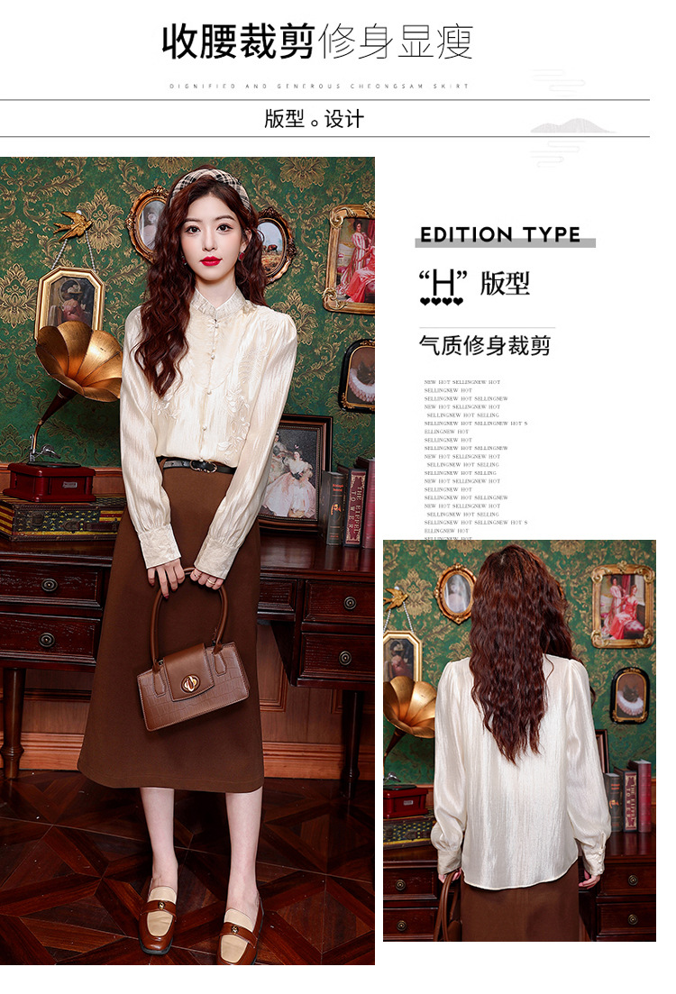 하이 퀄리티 피부 친화적 인 편안한 플러스 사이즈 나이를 줄이는 중년 어머니 가을 새로운 통근 셔츠 쉬폰 랜턴 슬리브 셔츠스토어 가기