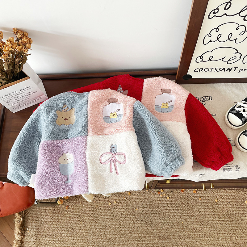 【재고 있음】여아 아동복 2024 겨울 신상 한국 스타일 다용도 모직 스웨터 플러스 벨벳 두꺼운 코트 트렌디스토어 가기