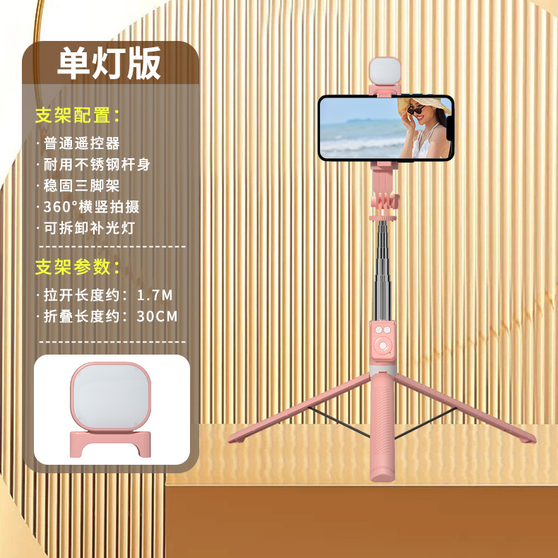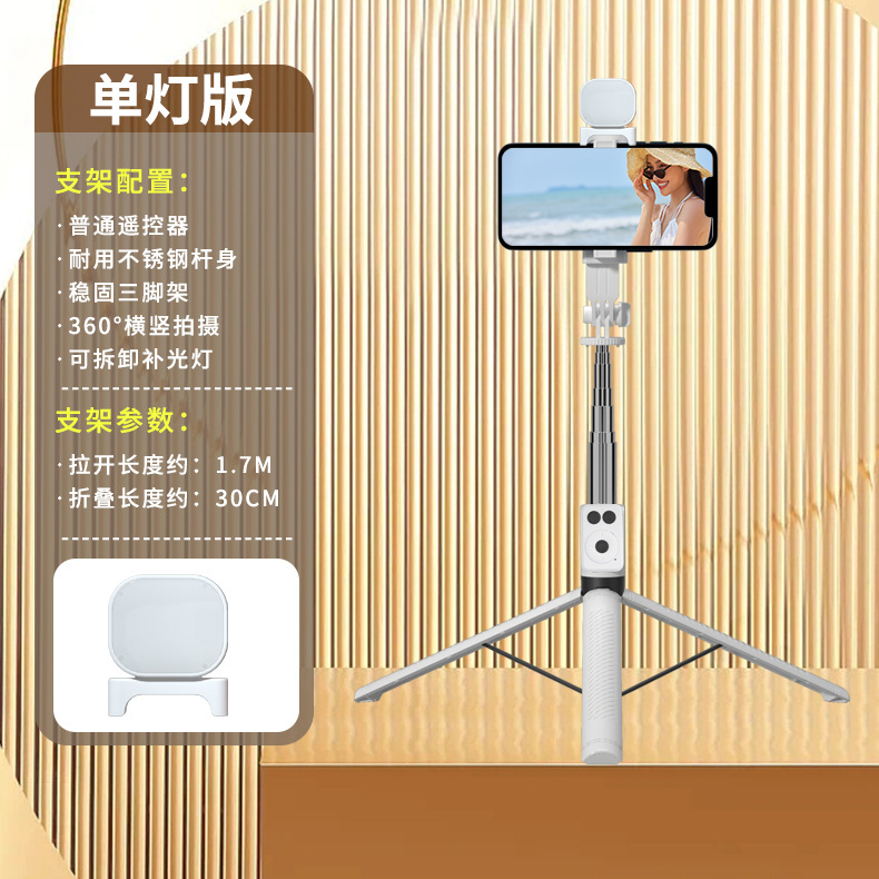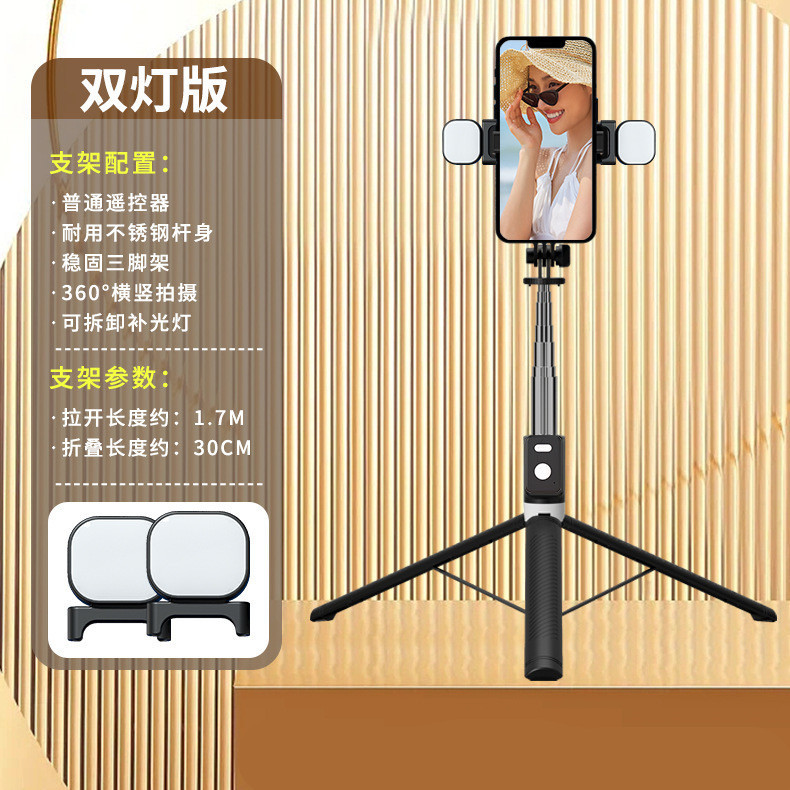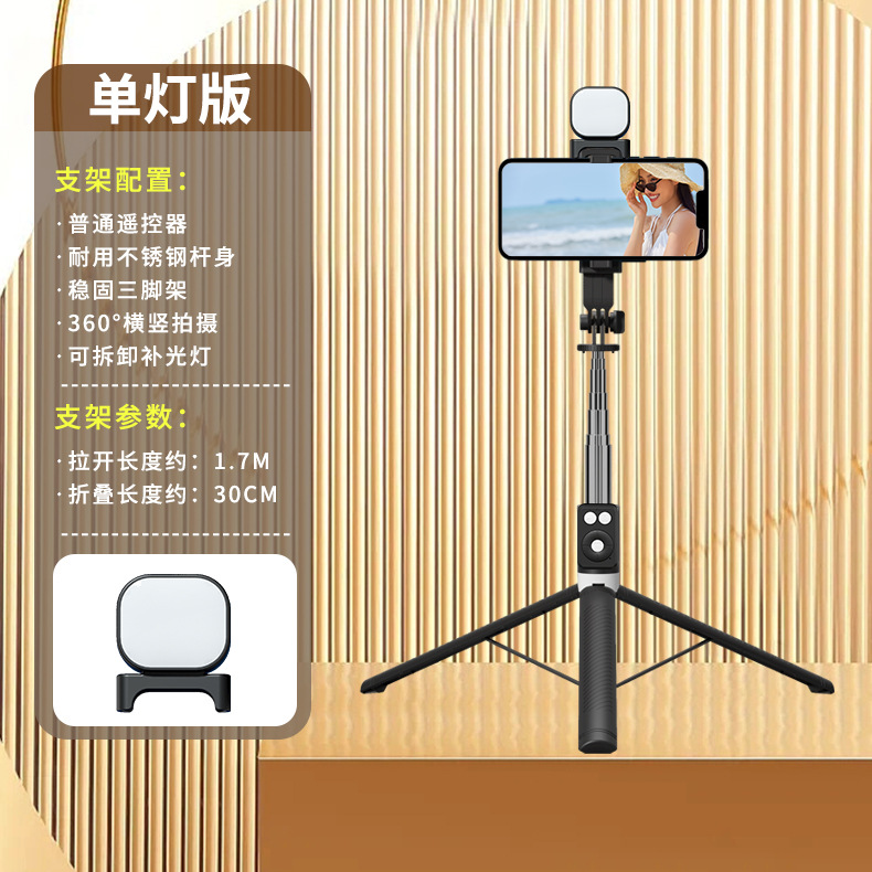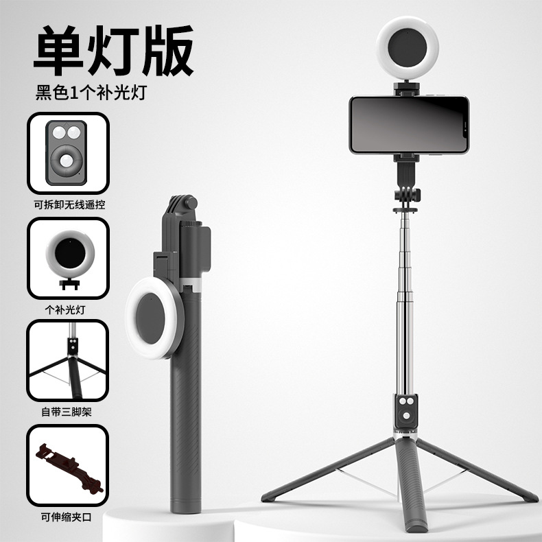 A12 휴대 전화 블루투스 셀카 스틱 통합 바닥 망원경 조명 보충 브래킷 야외 라이브 1.7 미터 삼각대