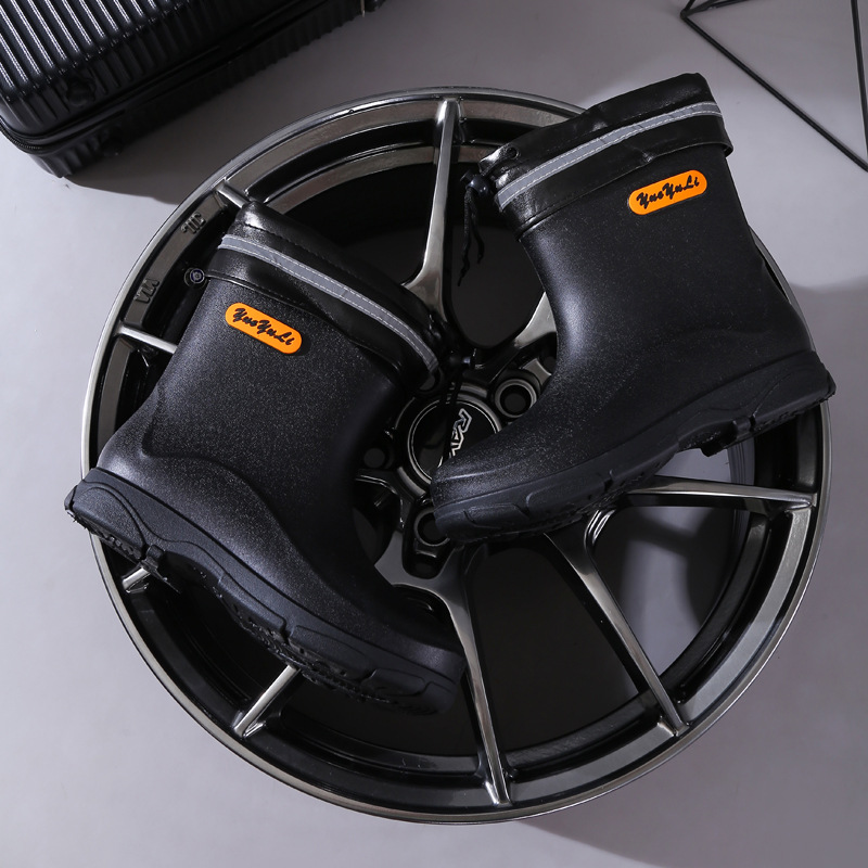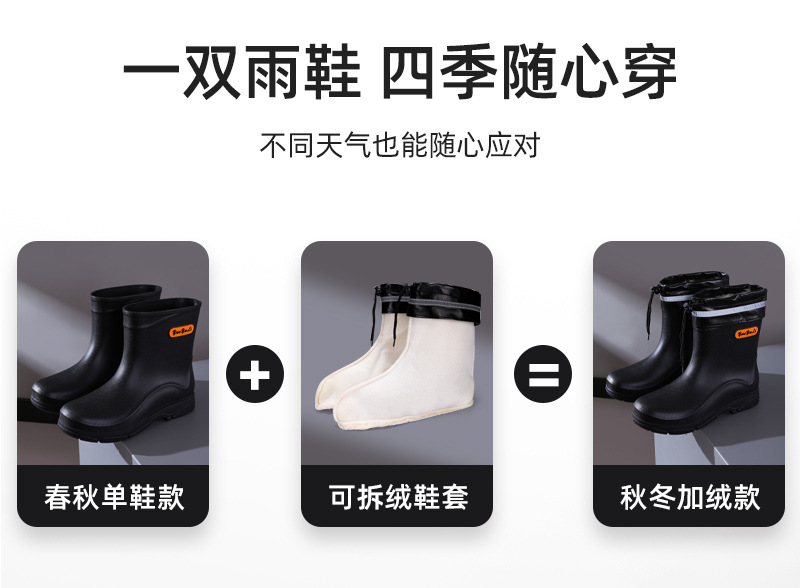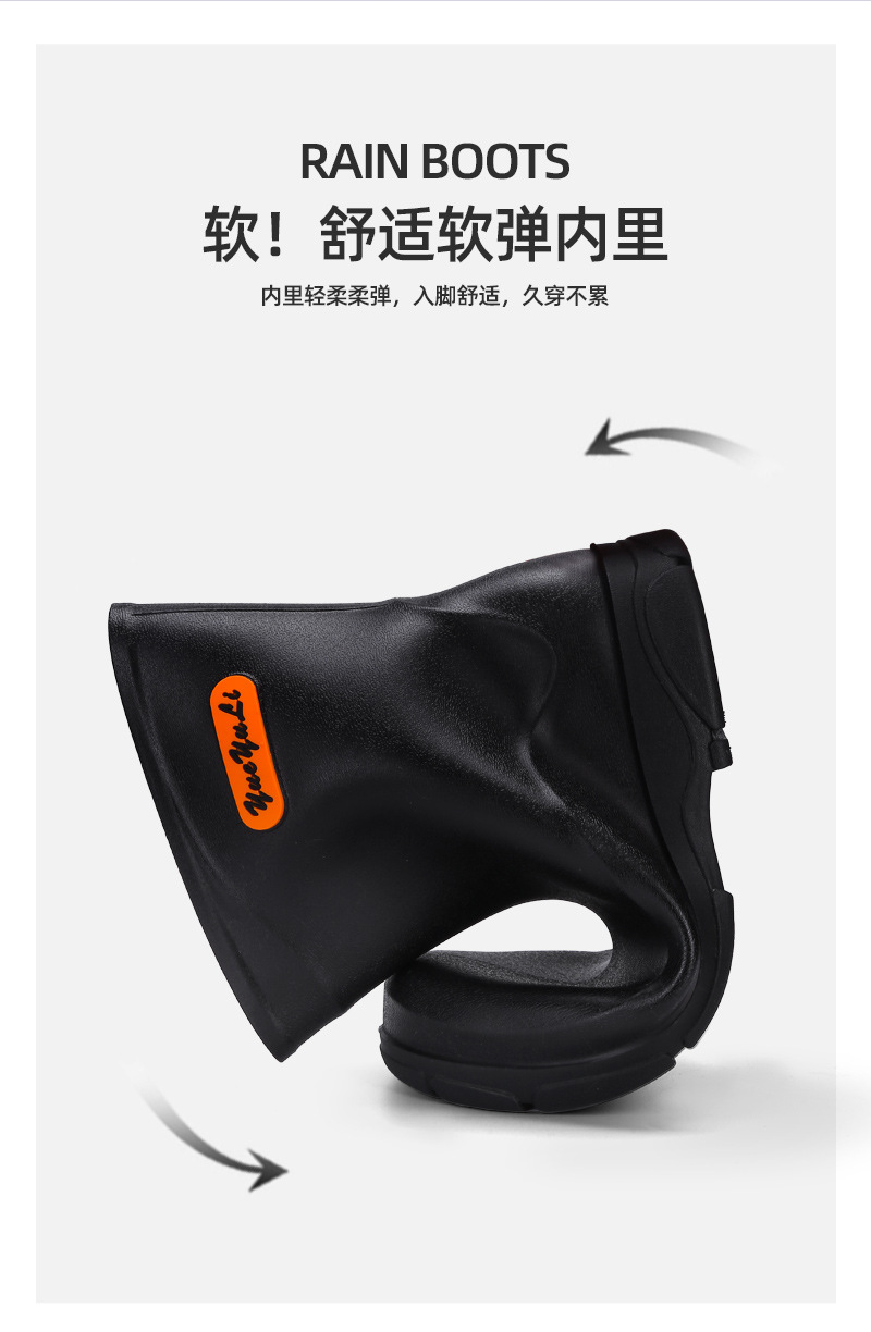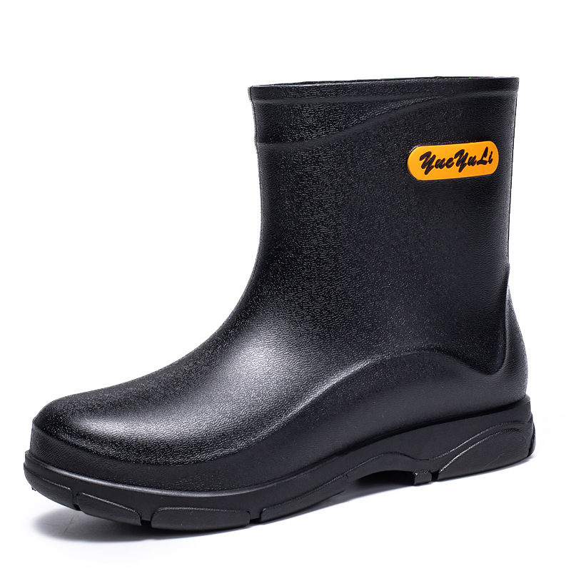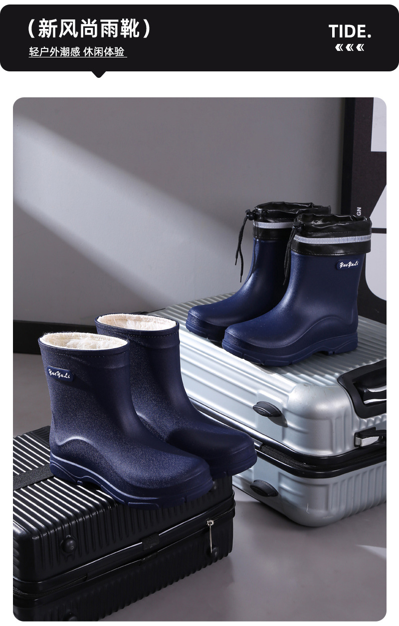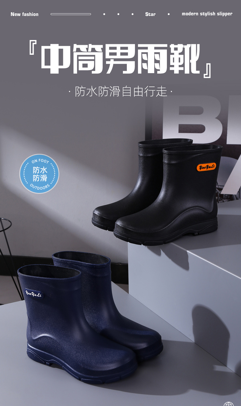 2024 새로운 기모 검은 패션 물 신발 도매 남성 방수 미끄럼 방지 세차 낚시 짧은 튜브 PVC 장화스토어 가기