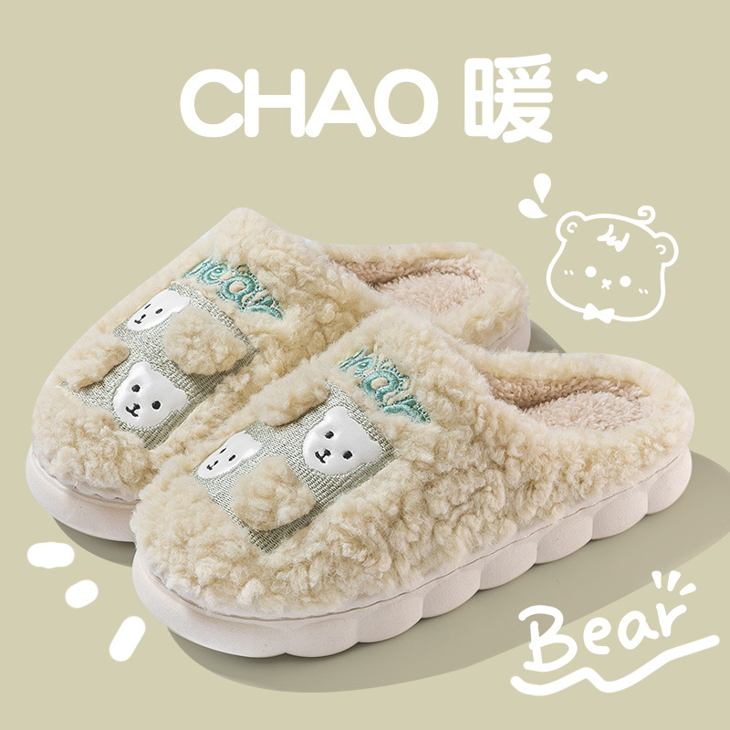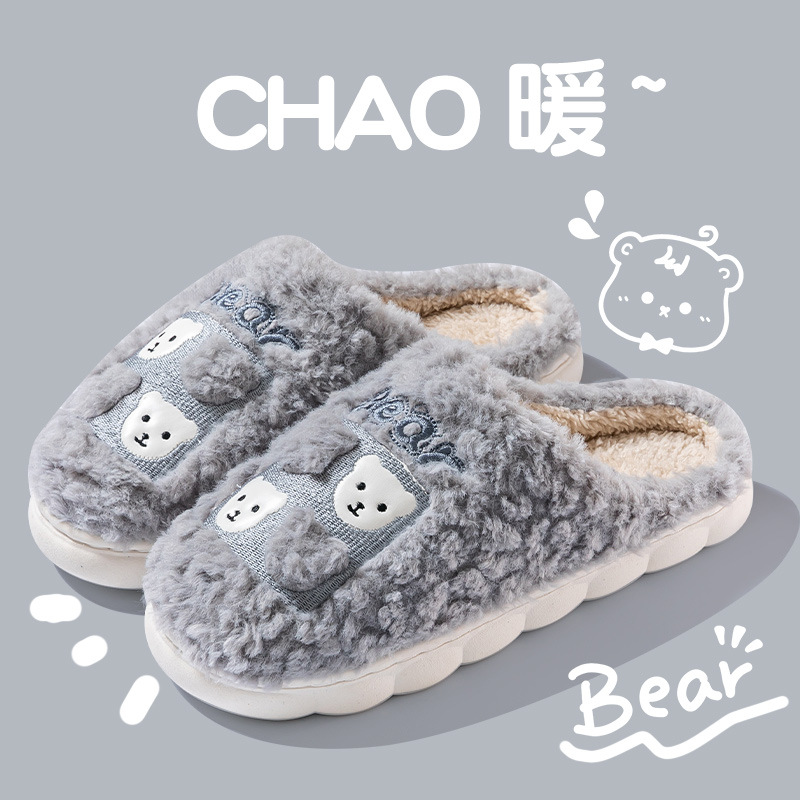 Cixi 면화 슬리퍼 여성 봄과 가을 겨울 홈 실내 미끄럼 방지 커플 홈 따뜻한 겨울 모피 봉제 남성스토어 가기
