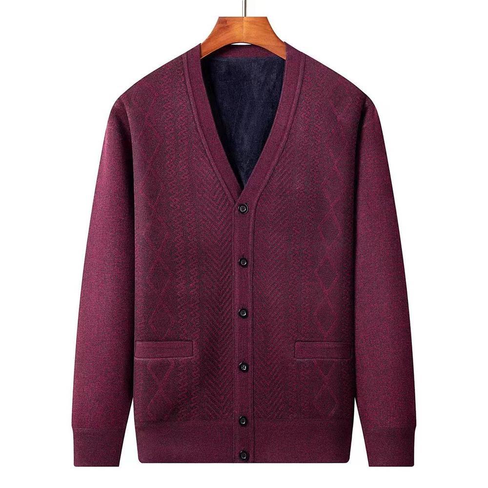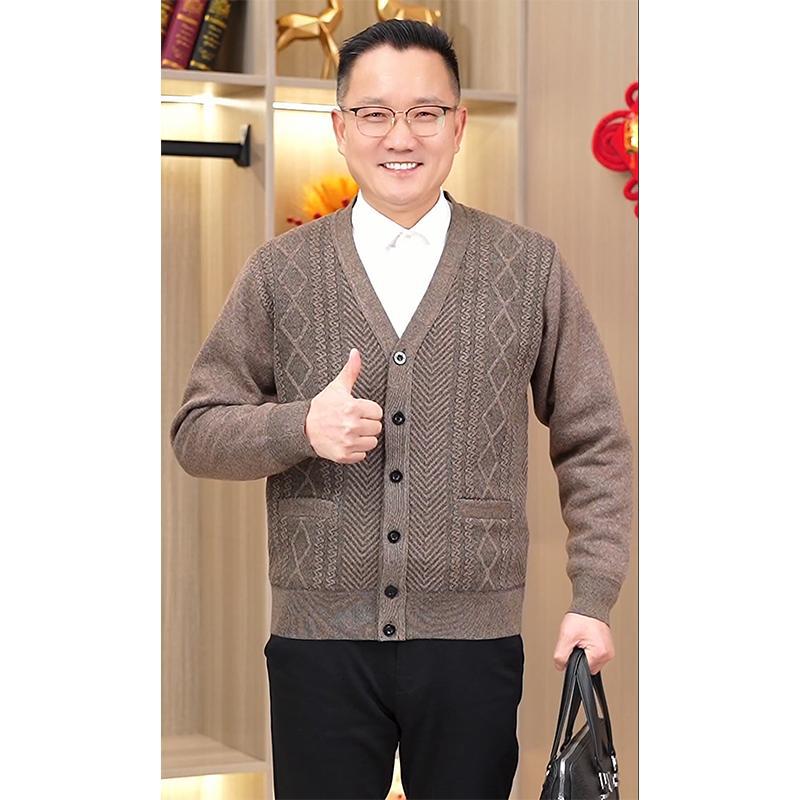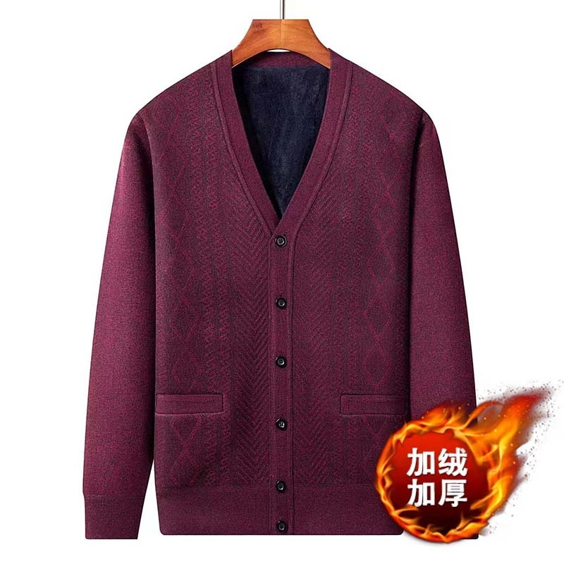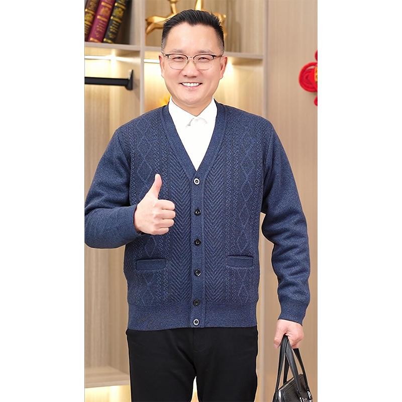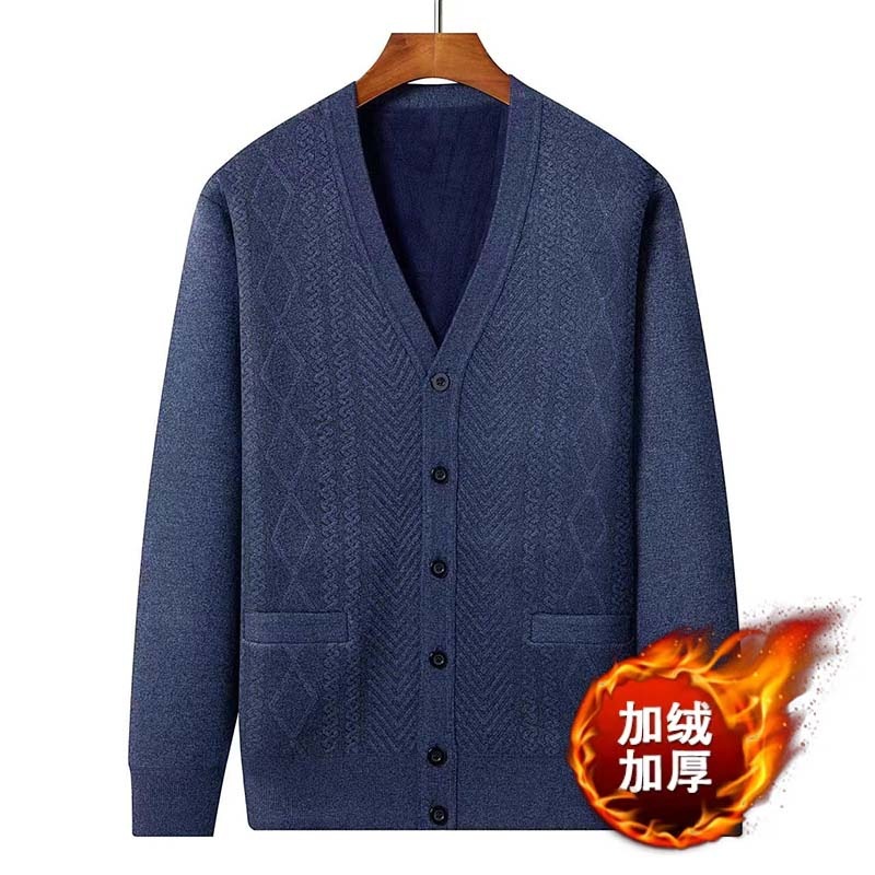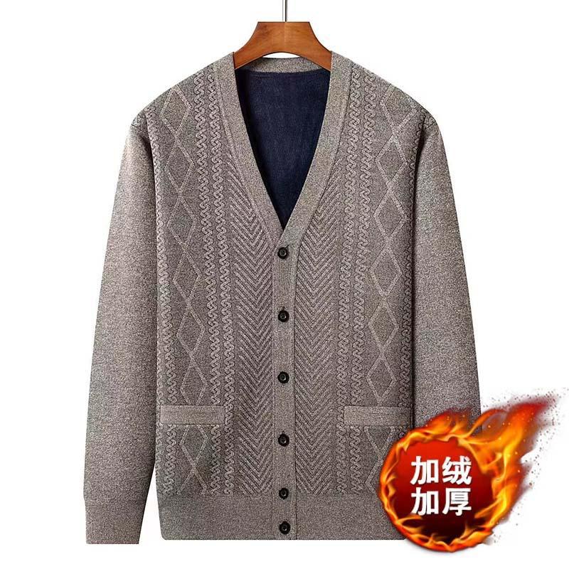 양각 된 남자 2024 폭발 중년 및 노인 아빠 스웨터 기모 두꺼운 카디건 코트 가을과 겨울 할아버지 60스토어 가기