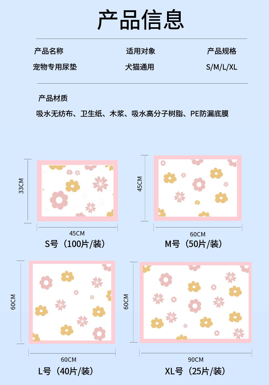 애완 동물 기저귀 인쇄 두꺼운 흡수 패드 일회용 기저귀 누출 방지 개 기저귀 훈련 패드 고양이 생산 패드