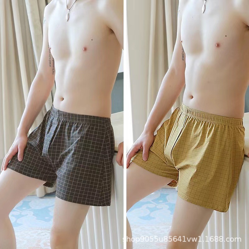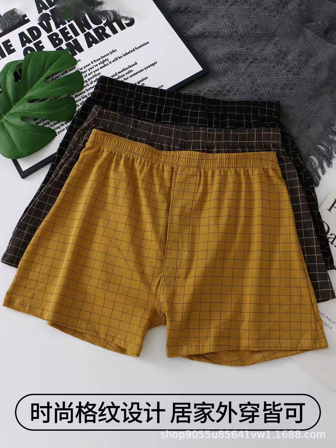 크로스보더 체크무늬 남성 속옷, 독일산 벨벳 면, 루즈하고 편안한 아로팬츠, 사계절 고급 대형 남성 사각팬티스토어 가기