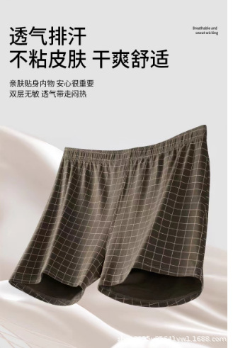 크로스보더 체크무늬 남성 속옷, 독일산 벨벳 면, 루즈하고 편안한 아로팬츠, 사계절 고급 대형 남성 사각팬티