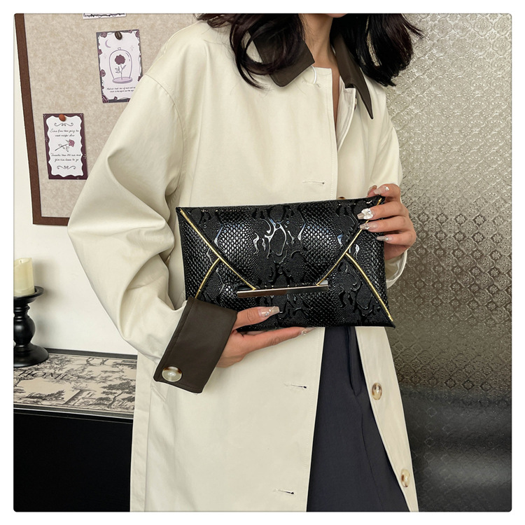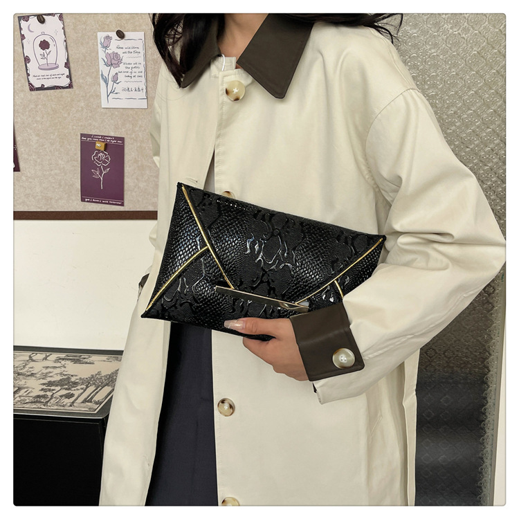 독특한 창조적 인 클러치 백 유행 Snakeskin 패턴 휴대 전화 가방 유행 세련된 세련된 Ins 디자인 대비 색상 여성 이브닝 백스토어 가기