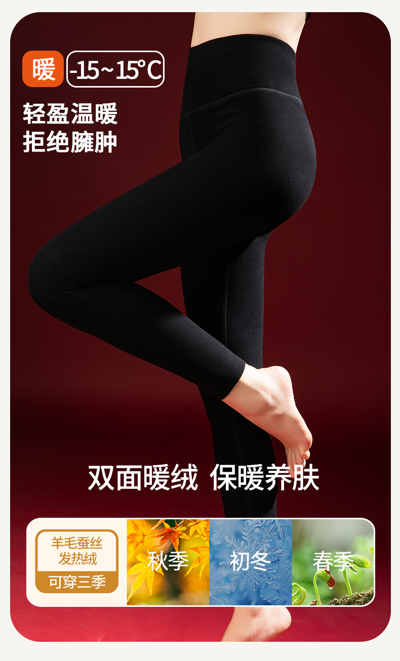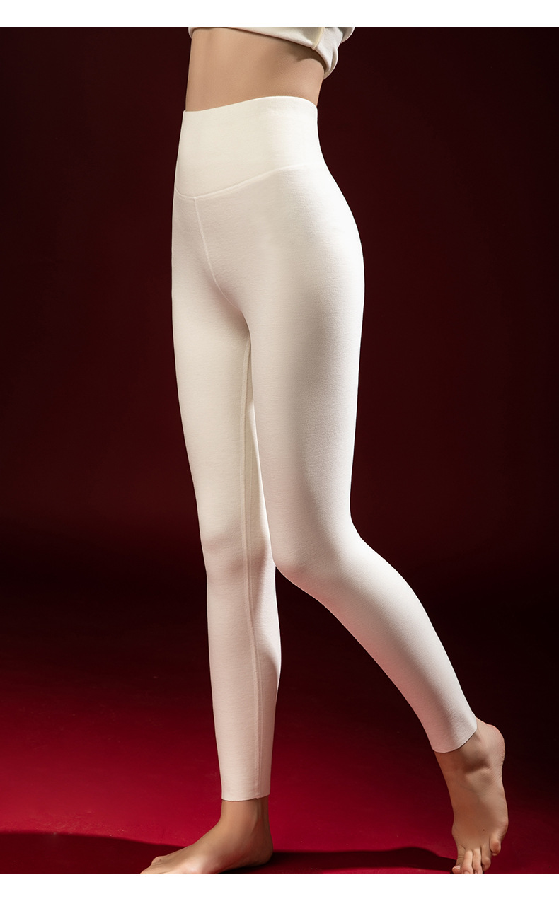 양모 실크 벨벳 가열 따뜻한 바지 여성용 트레이너리스 내복 바짝 바지 기모 두꺼운 높은 허리 바지