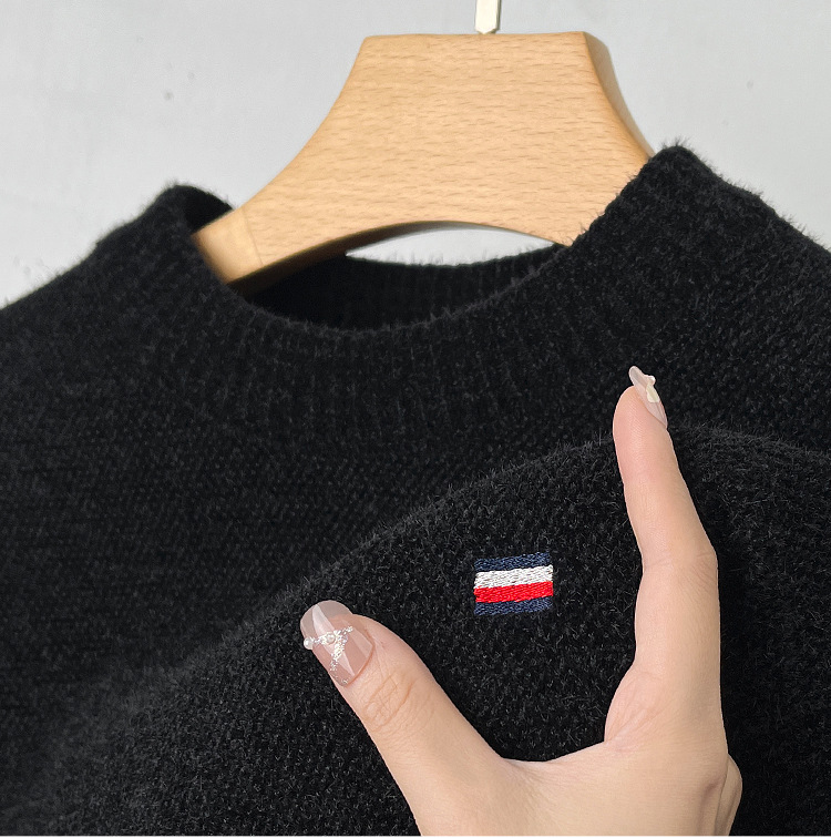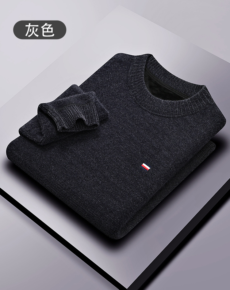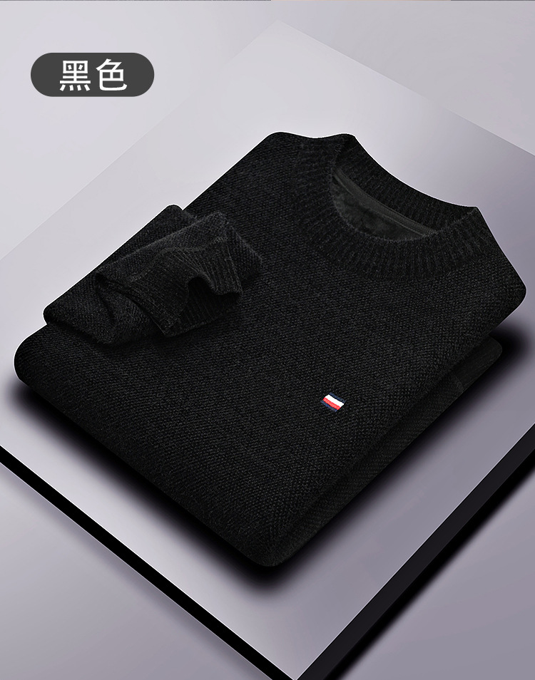 Paisenlong 무거운 남자 스웨터 가을과 겨울 새 기모 두꺼운 단색 라운드 넥 캐주얼 올 매치 니트베이스 셔츠스토어 가기