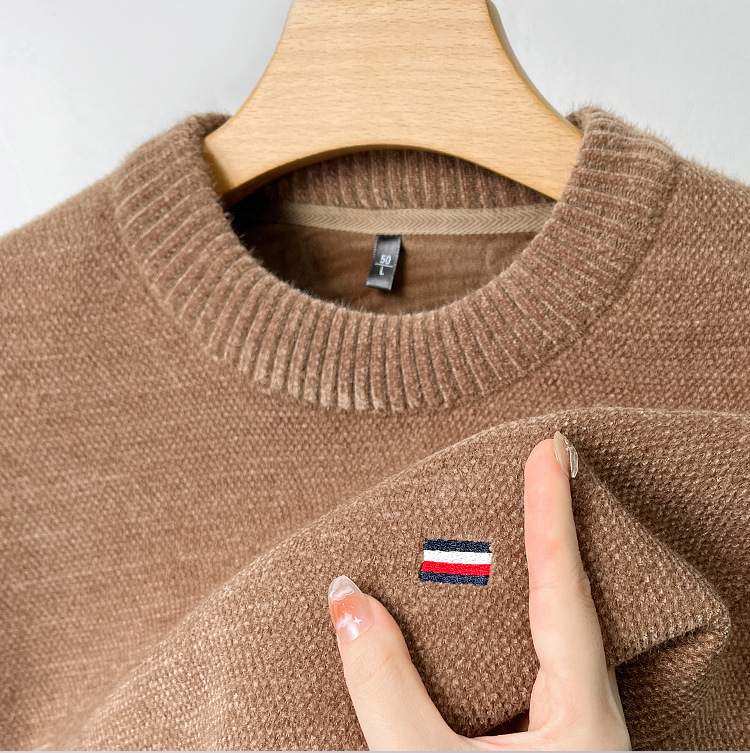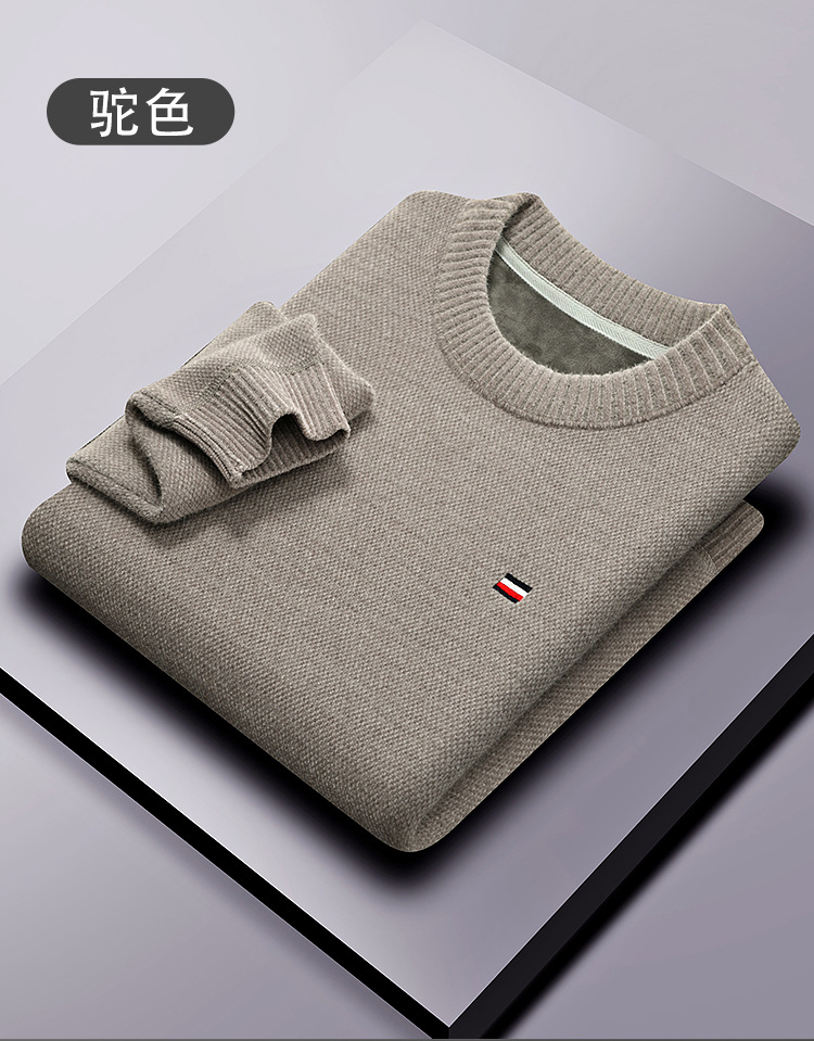 Paisenlong 무거운 남자 스웨터 가을과 겨울 새 기모 두꺼운 단색 라운드 넥 캐주얼 올 매치 니트베이스 셔츠