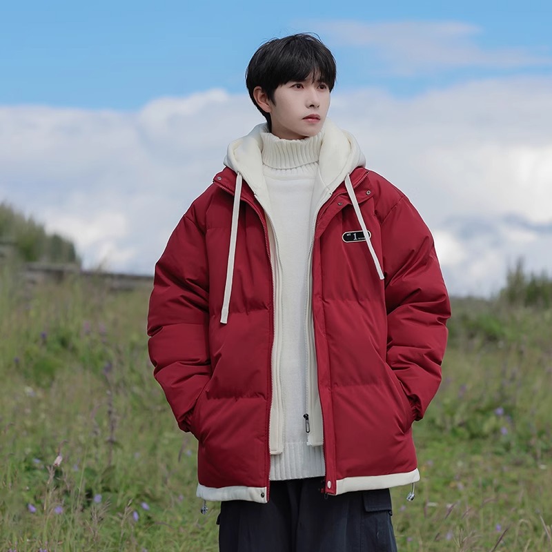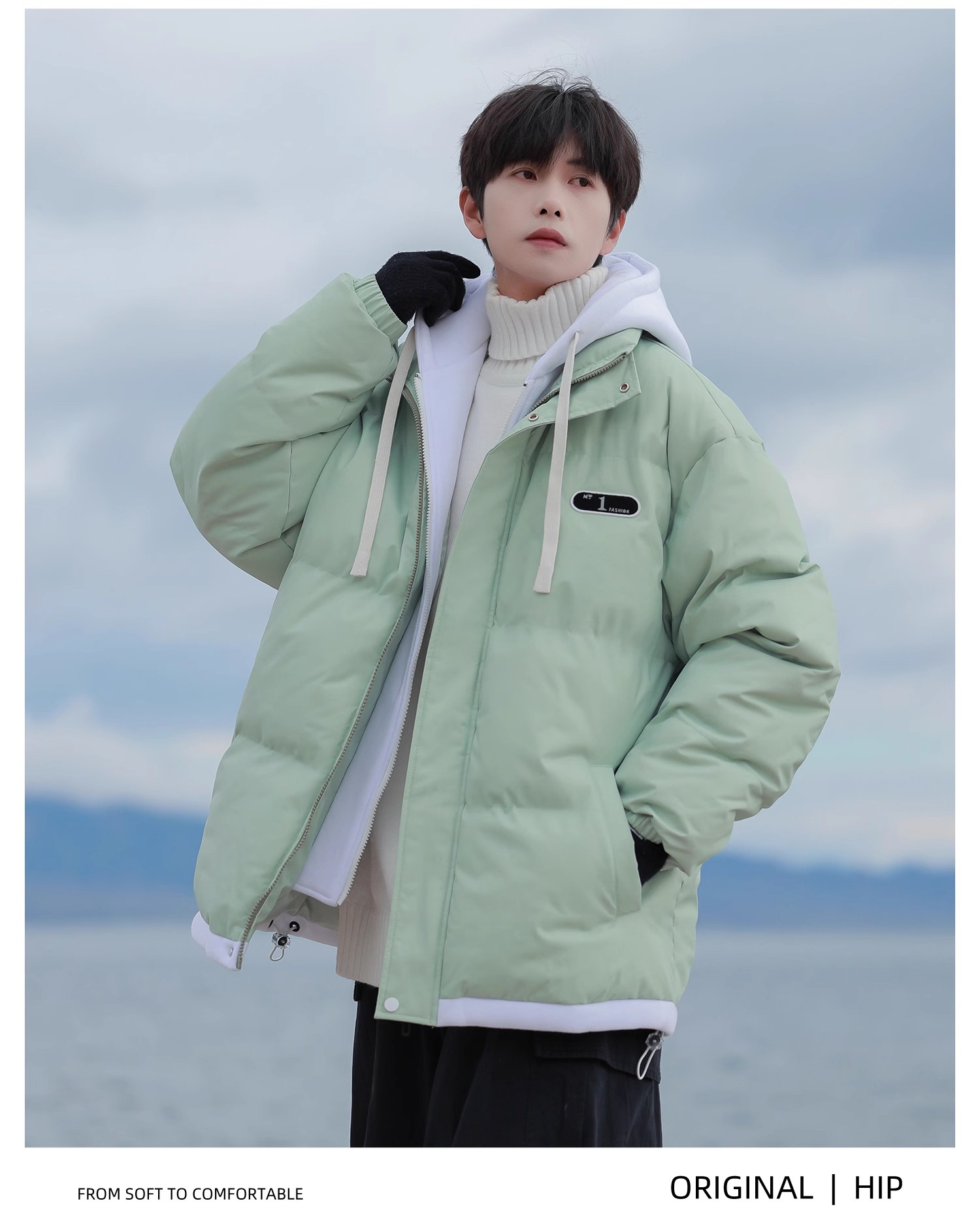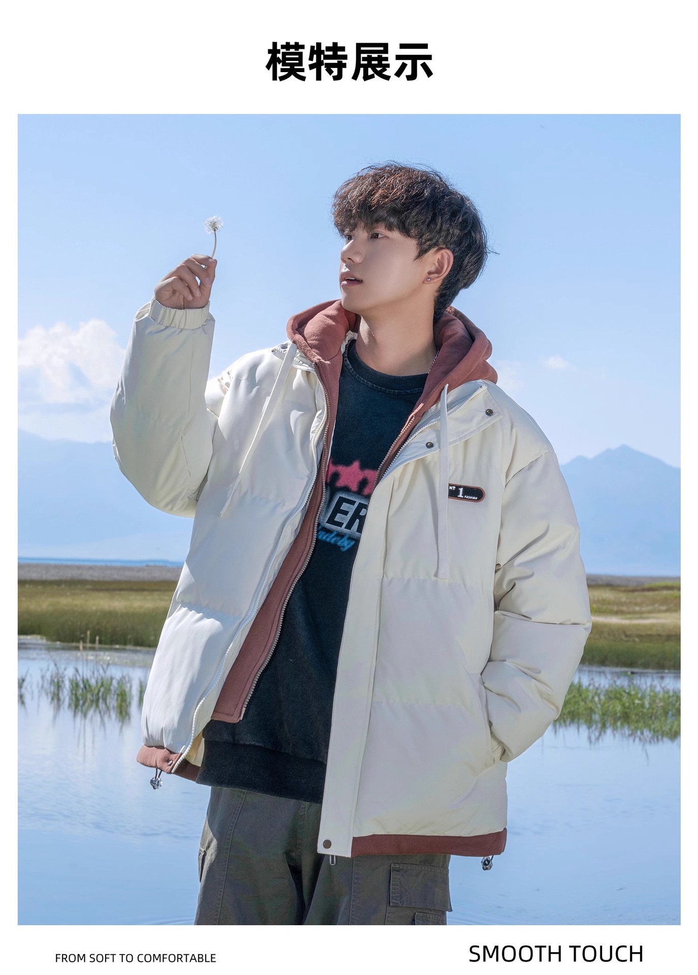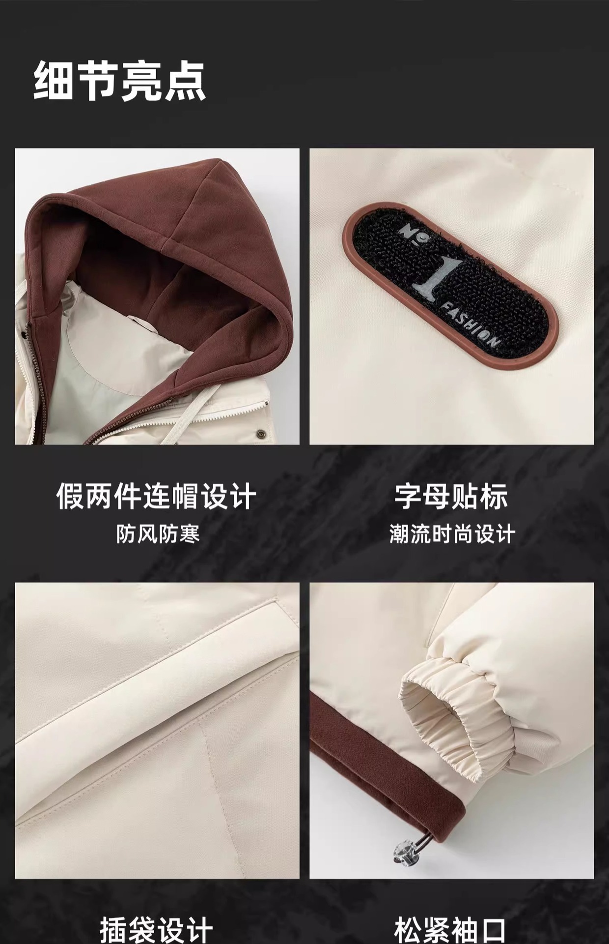 NASA 가짜 2 피스 코튼 의류 남성 겨울 재킷 2024 새로운 느슨한 캐주얼 트렌디 브랜드 보이즈 브레드 코튼 패딩 재킷스토어 가기