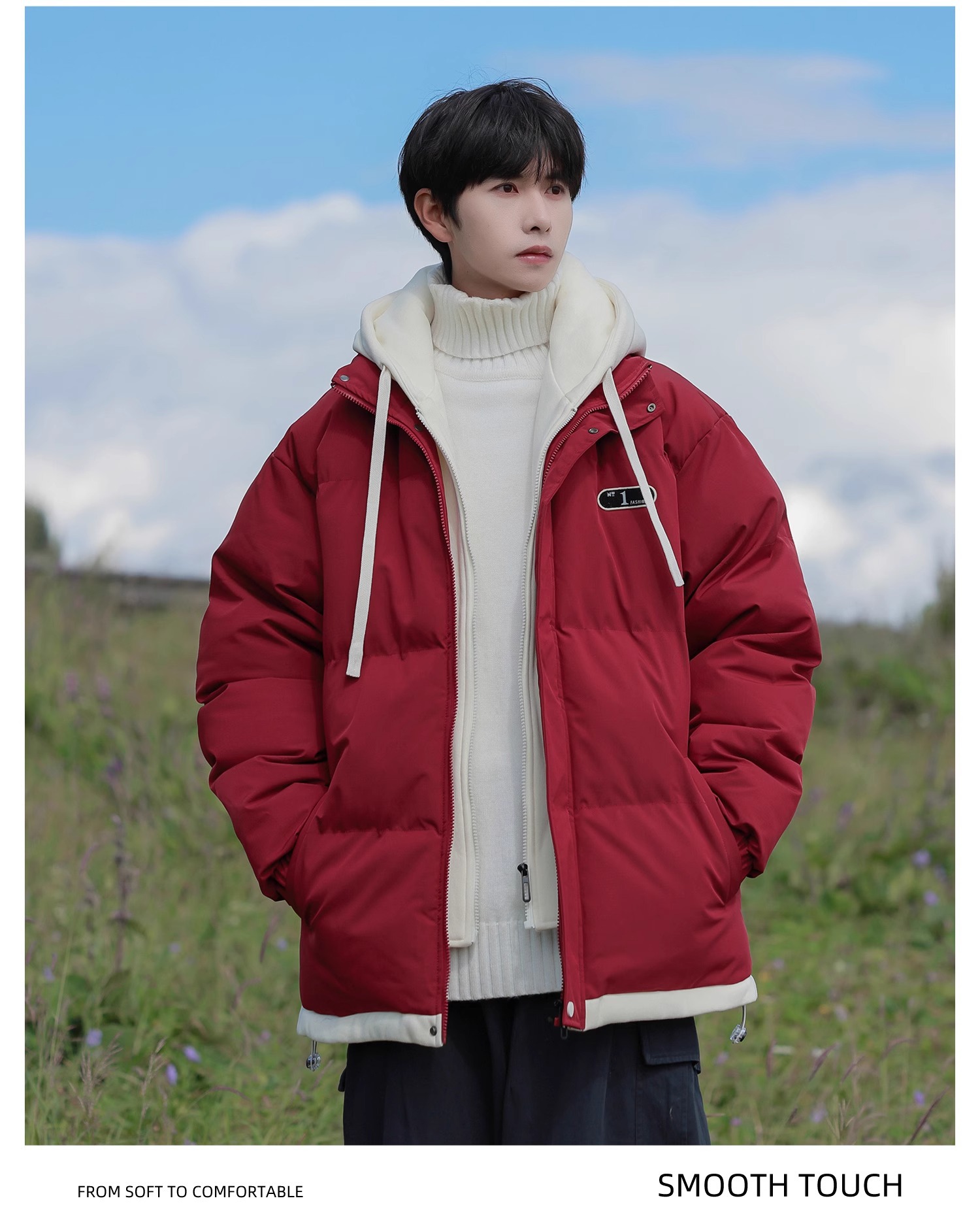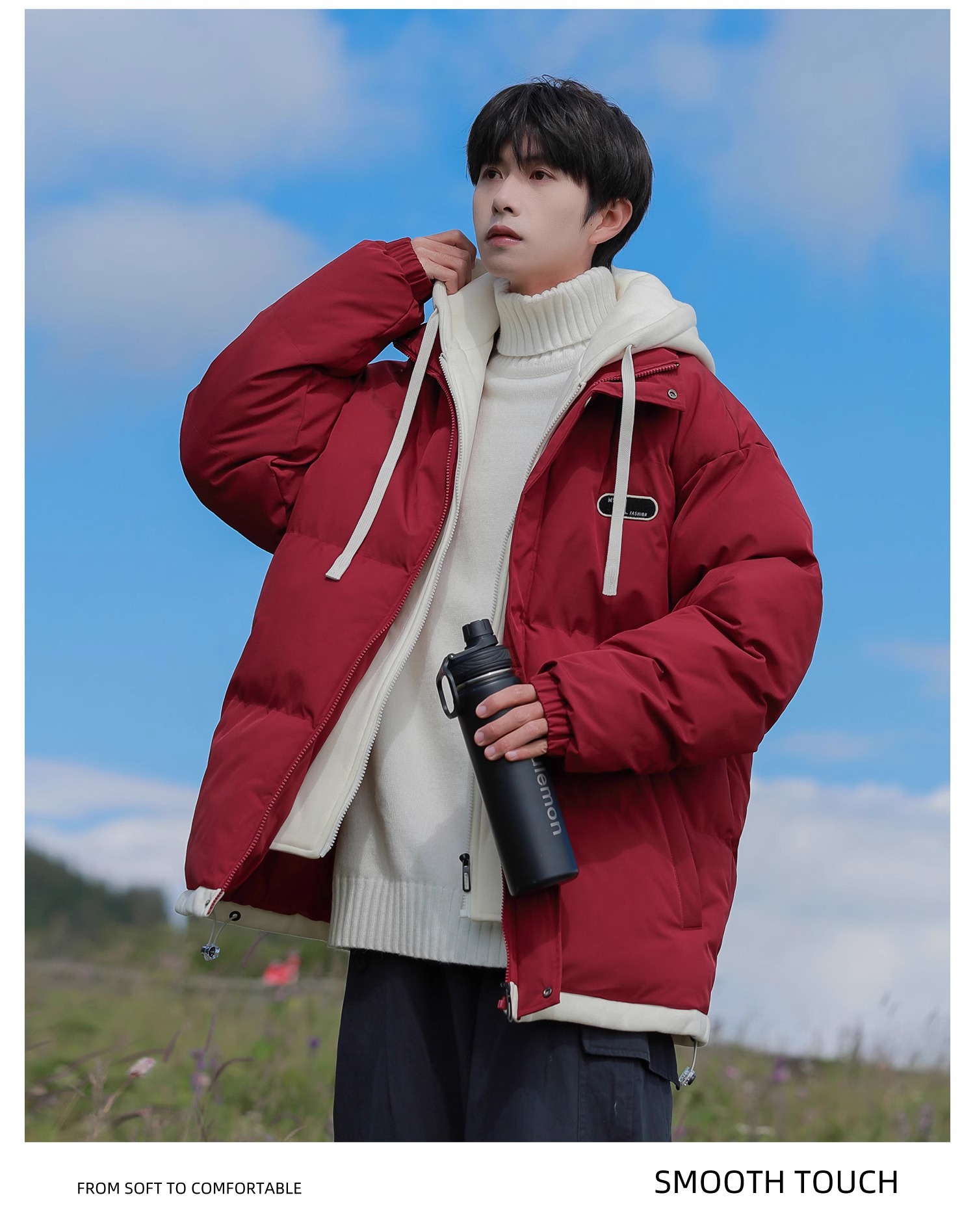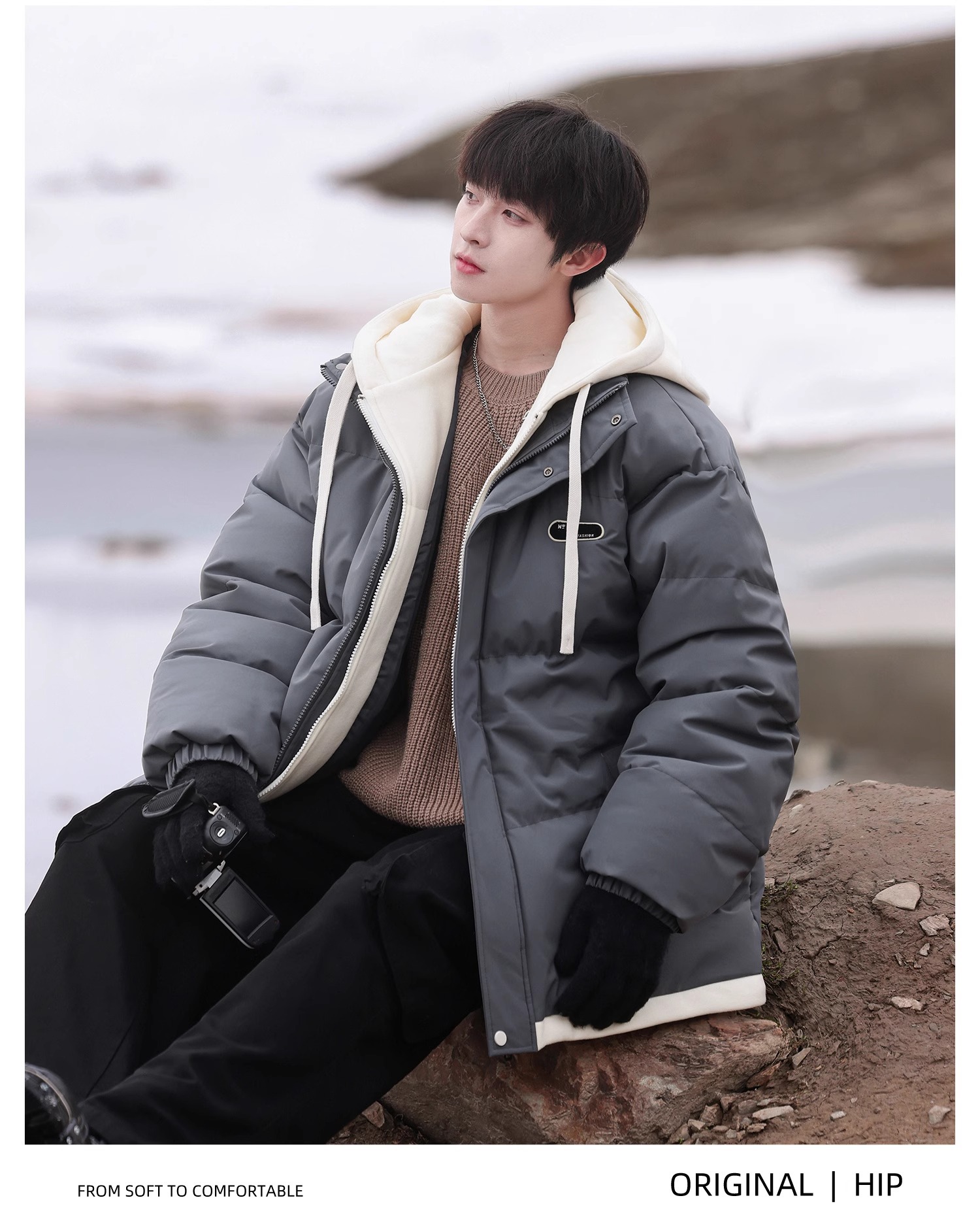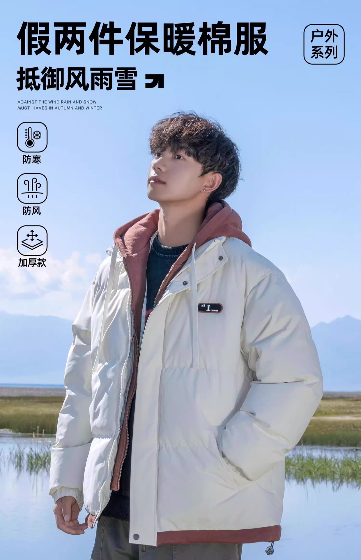 NASA 가짜 2 피스 코튼 의류 남성 겨울 재킷 2024 새로운 느슨한 캐주얼 트렌디 브랜드 보이즈 브레드 코튼 패딩 재킷
