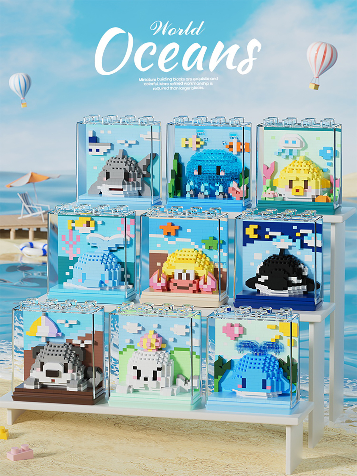 메이컨 마이크로 다이아몬드 상자 동물원 상자 수족관 시리즈 퍼즐 빌딩 블록 먼지 커버 장식품 창조적 인 선물
