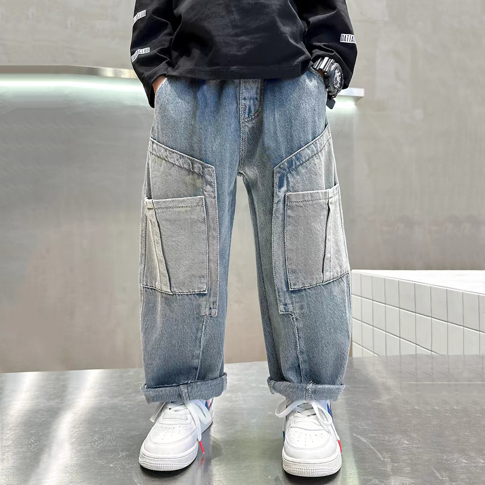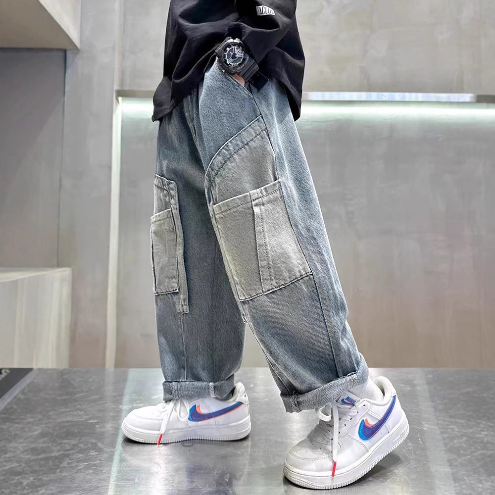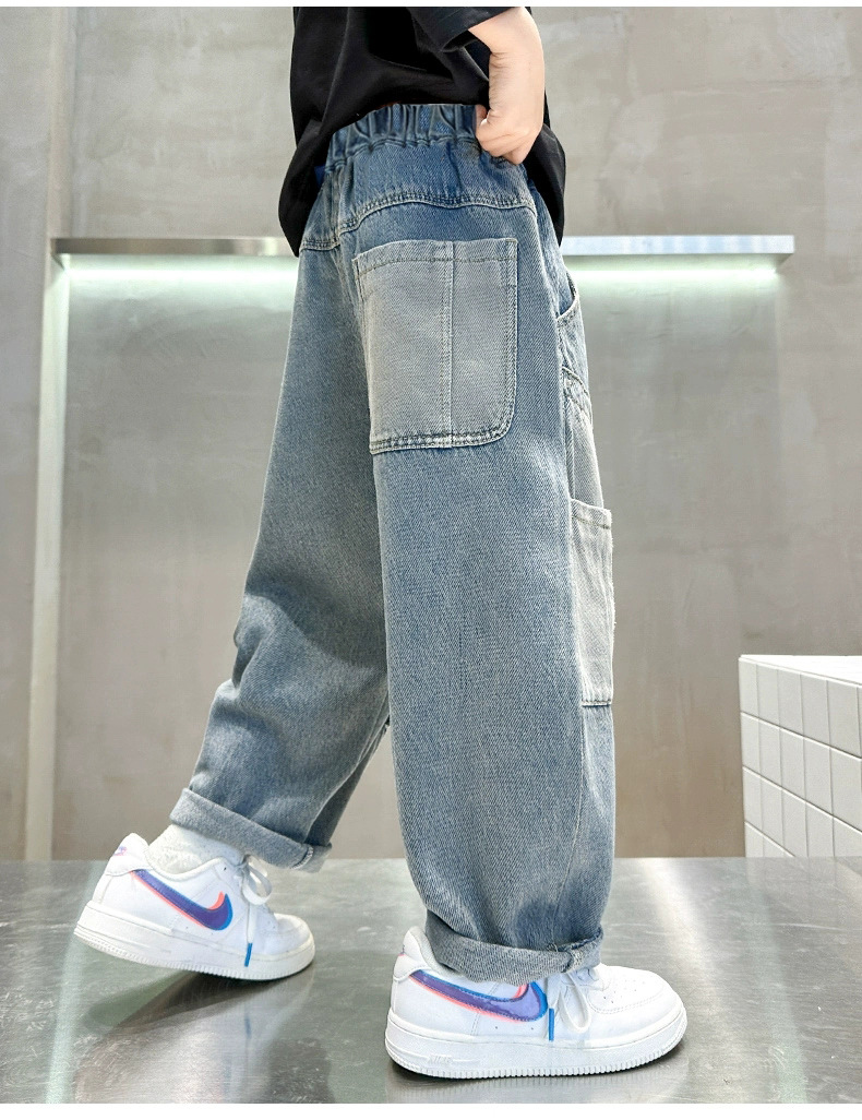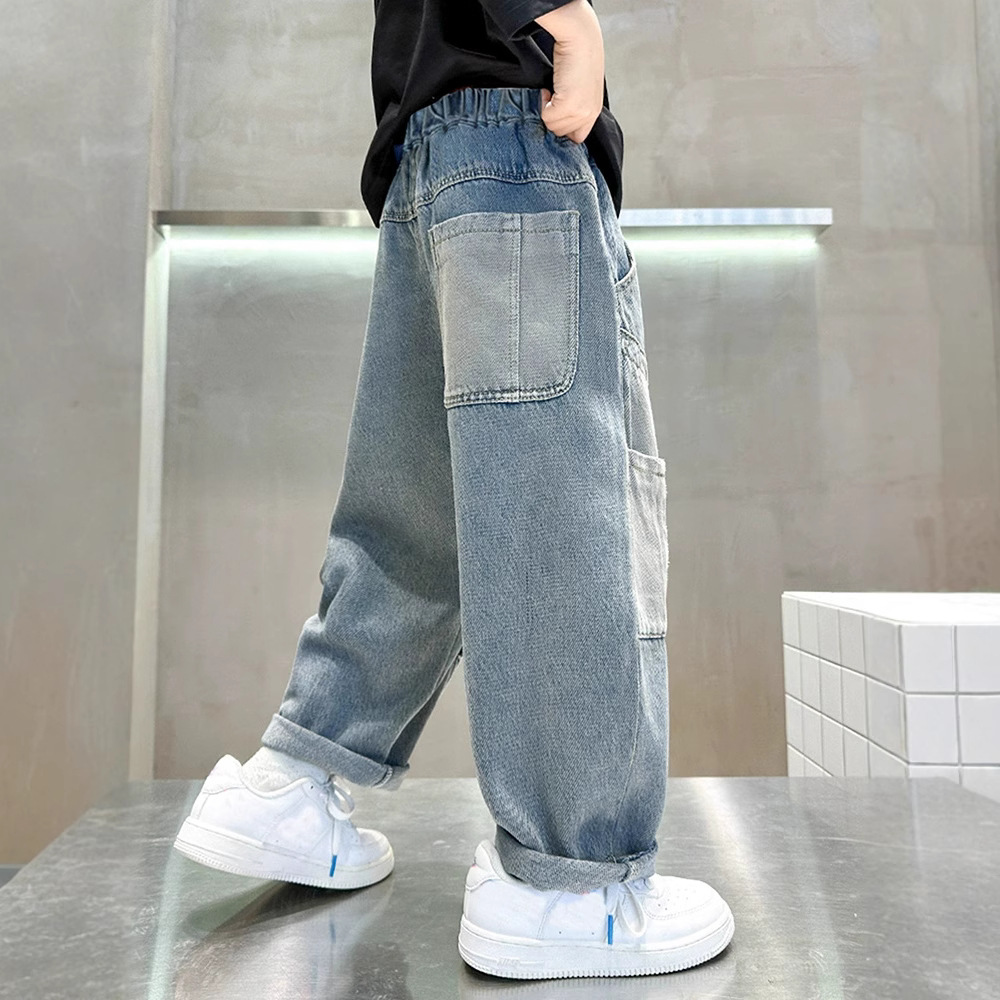 남아용 바지, 봄, 가을 아동용 청바지 2025 새로운 스타일 중대형 아동 캐주얼 스트레이트 바지 이른 봄 스타일