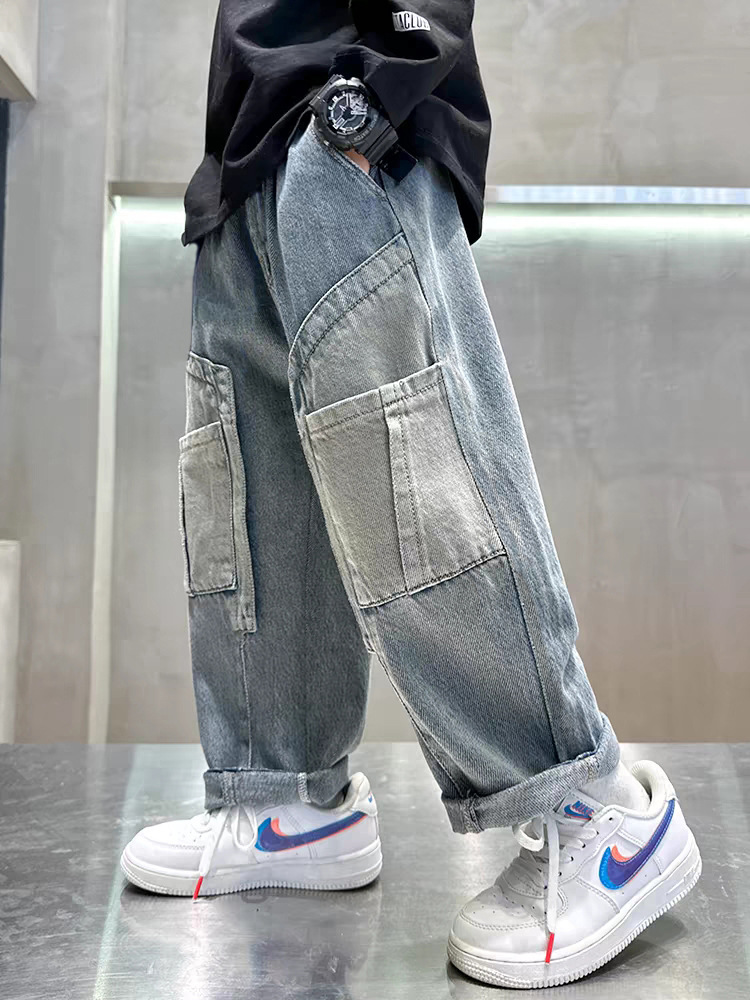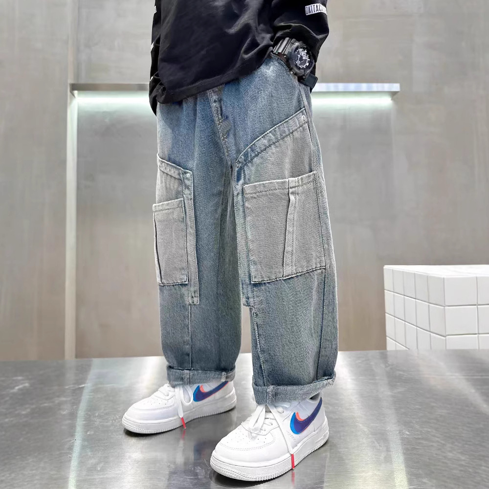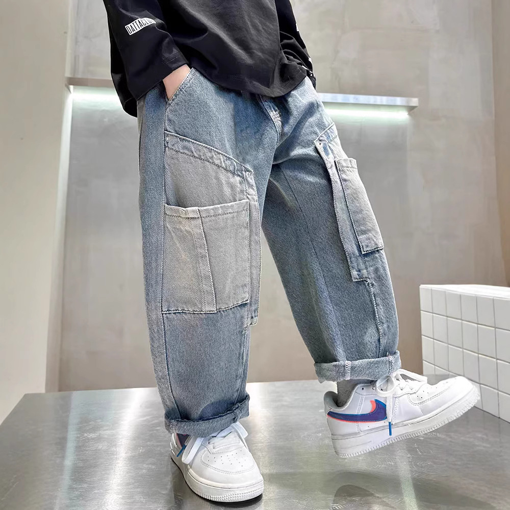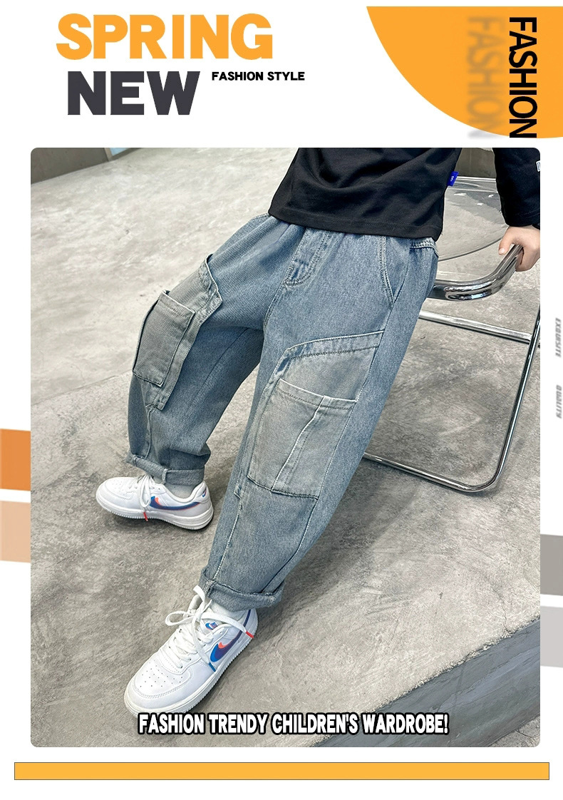 남아용 바지, 봄, 가을 아동용 청바지 2025 새로운 스타일 중대형 아동 캐주얼 스트레이트 바지 이른 봄 스타일