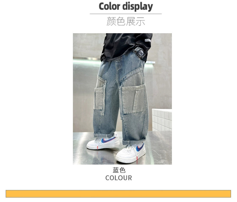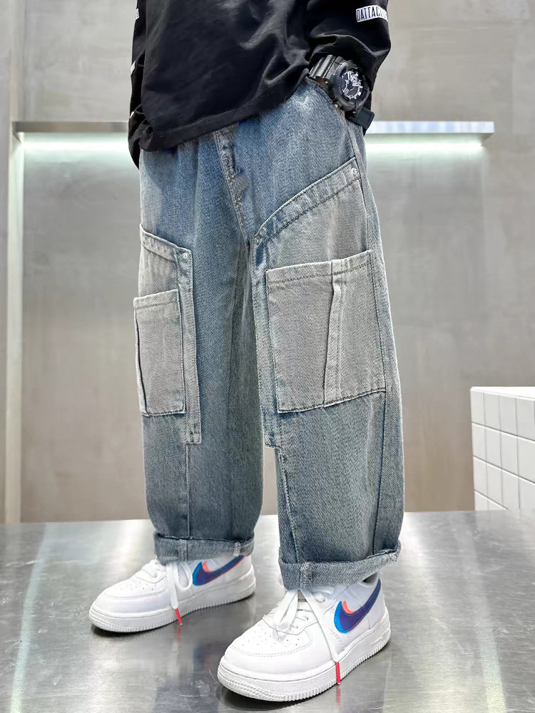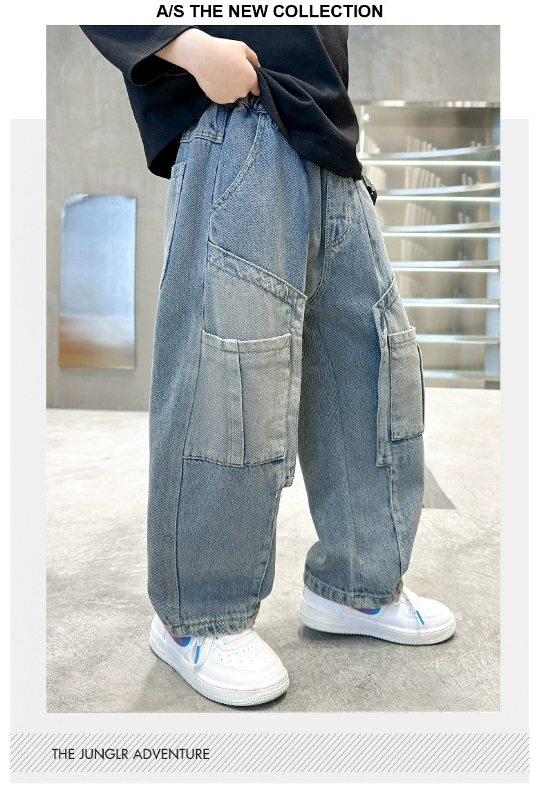 남아용 바지, 봄, 가을 아동용 청바지 2025 새로운 스타일 중대형 아동 캐주얼 스트레이트 바지 이른 봄 스타일스토어 가기