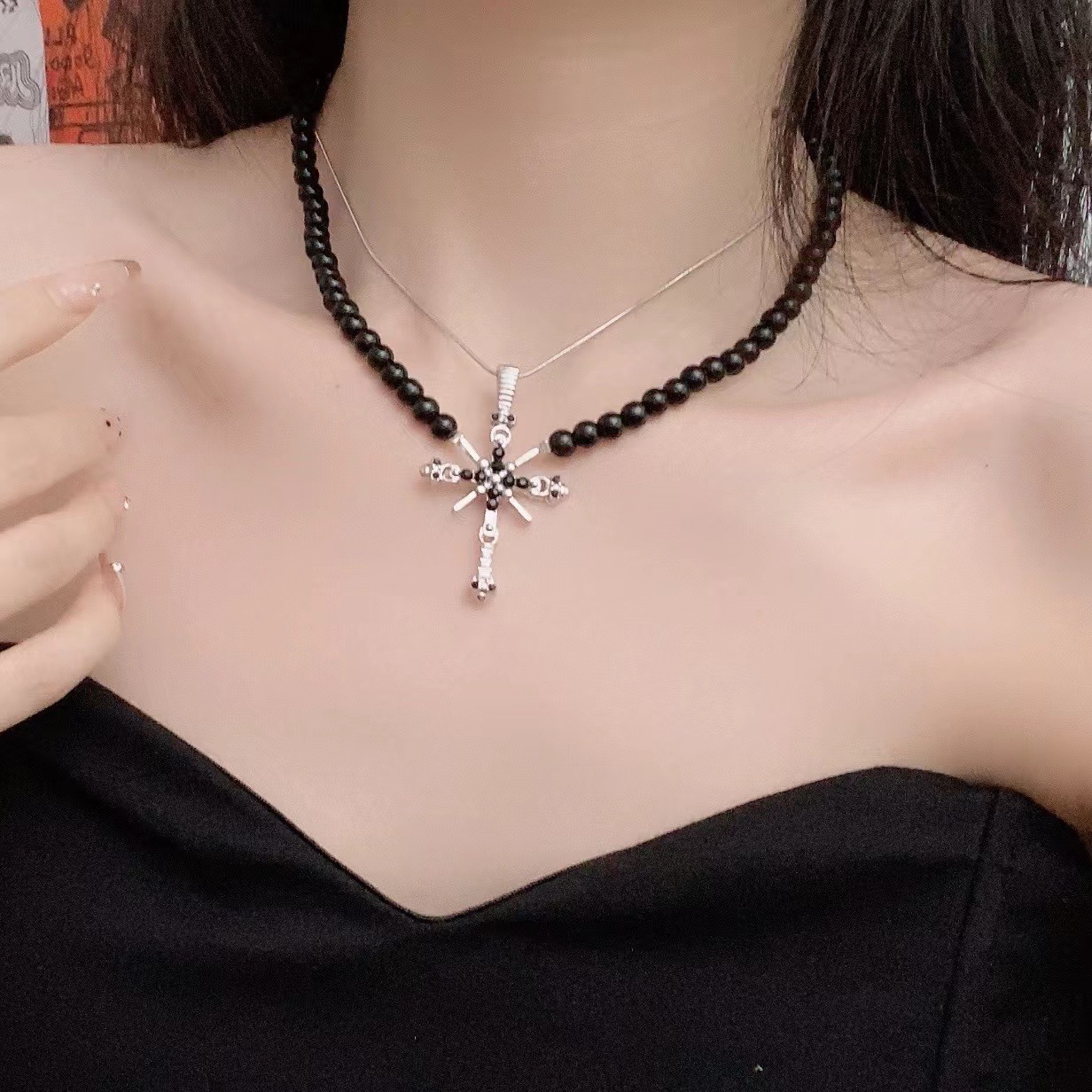 힙합 핫 걸스 블랙 비즈 크로스 목걸이 틈새 하이 엔드 초커 넥 액세서리 목걸이 여성
