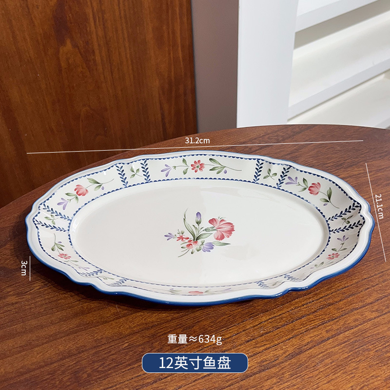 빈티지 플라워 플레이트 세트 식기 빈티지 플라워 플레이트 쌀 그릇 수프 플레이트 사우스 프랑스 스타일 세라믹 디너 플레이트 피쉬 플레이트 그릇스토어 가기