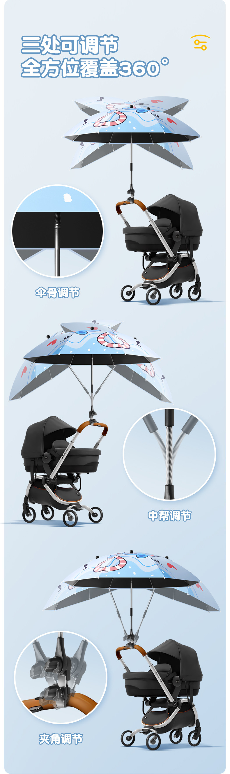 아기 자동차 차양 우산 아기 세발 자전거 유니버설 핸드 푸시 어린이 자동차 우산 걷는 아기 유물 선 스크린 태양 우산