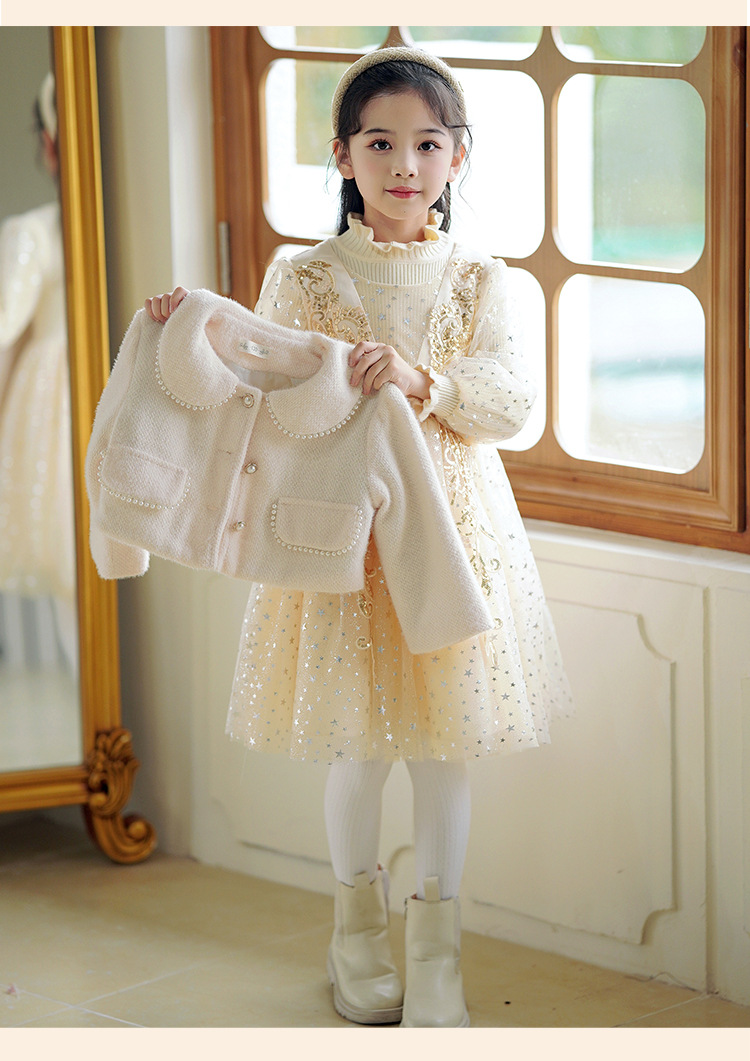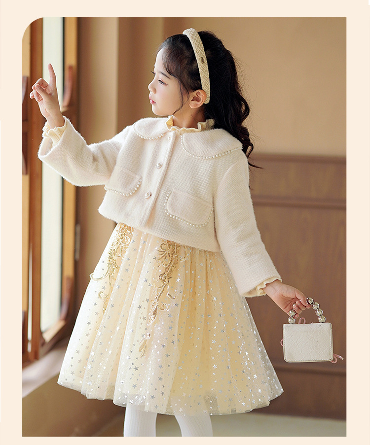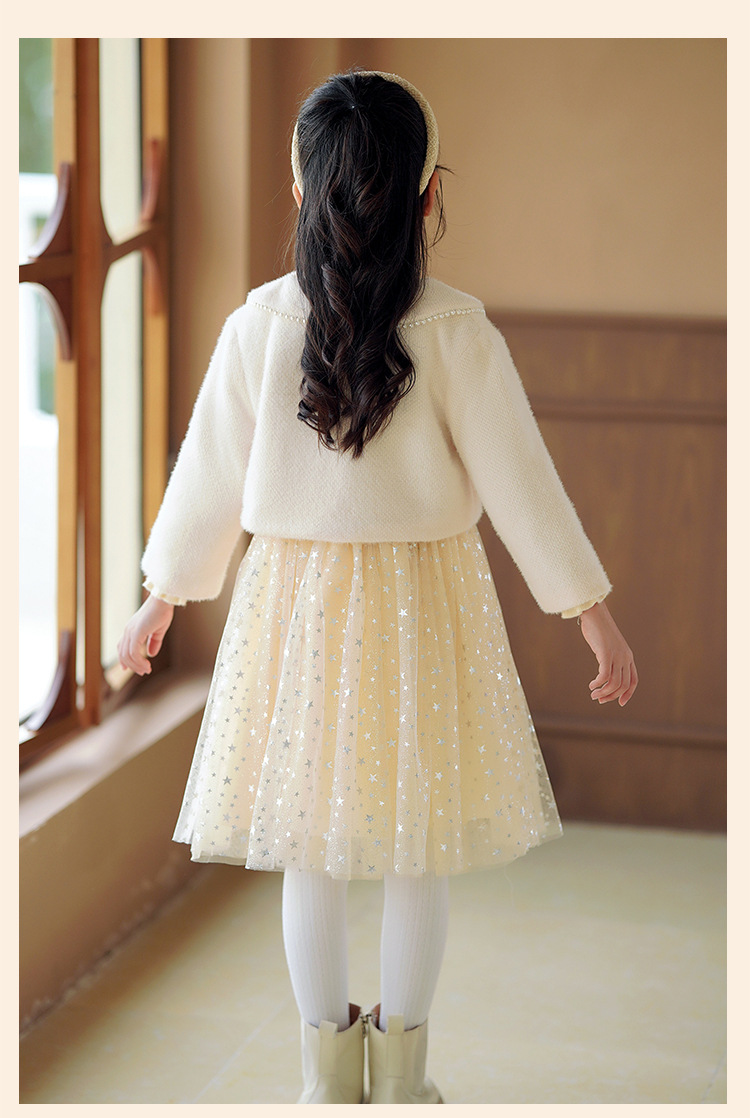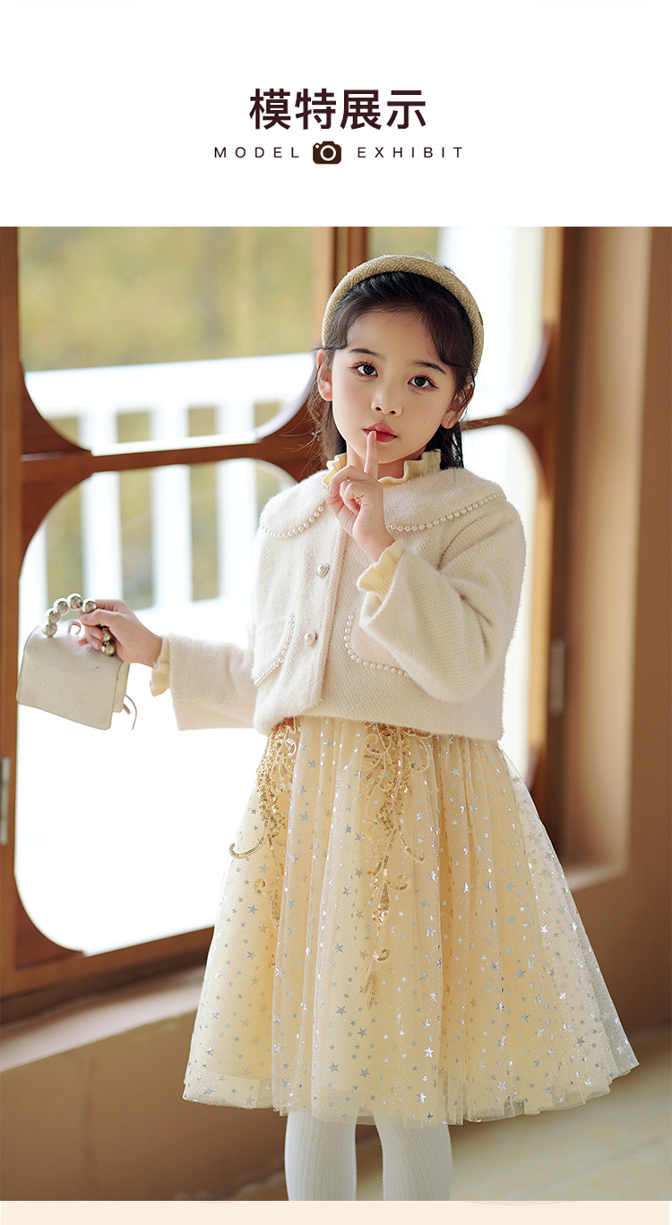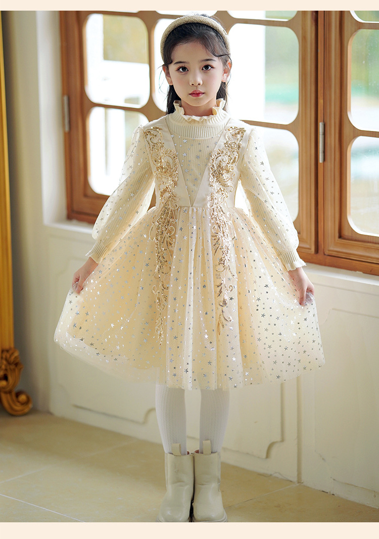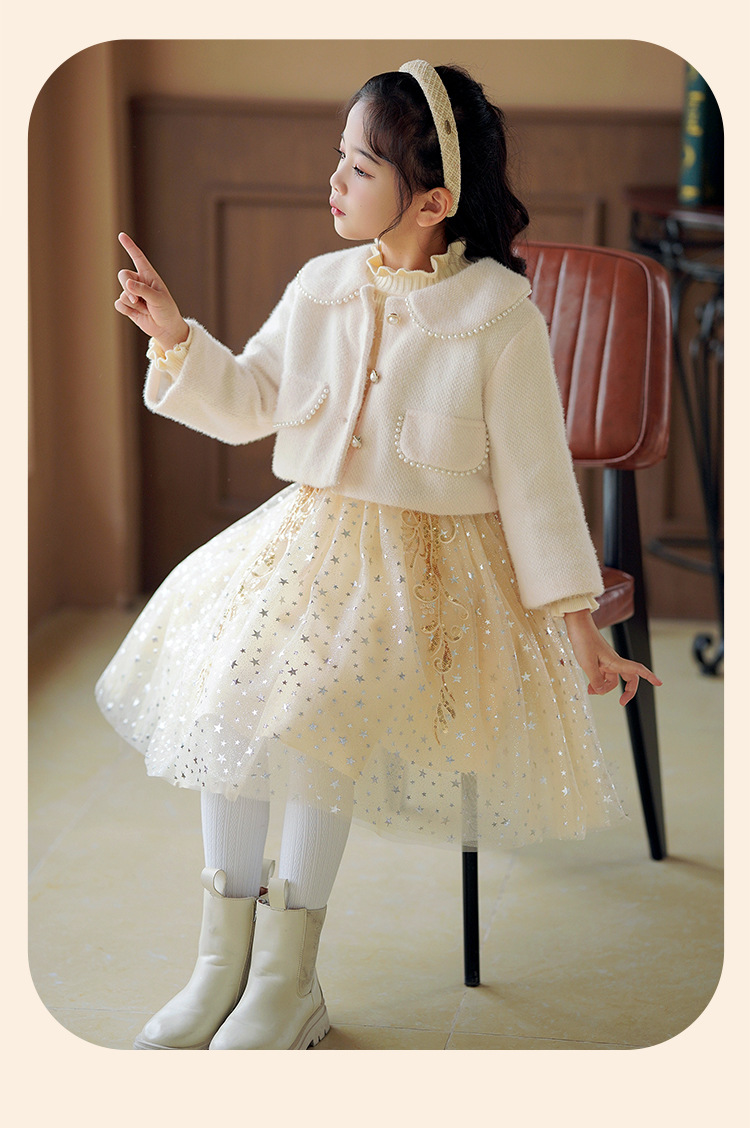 여자 공주 치마 2024 새로운 가을과 겨울 기모 울 긴 소매 스타일 생일 푹신한 베일 스커트 어린이 원피스스토어 가기
