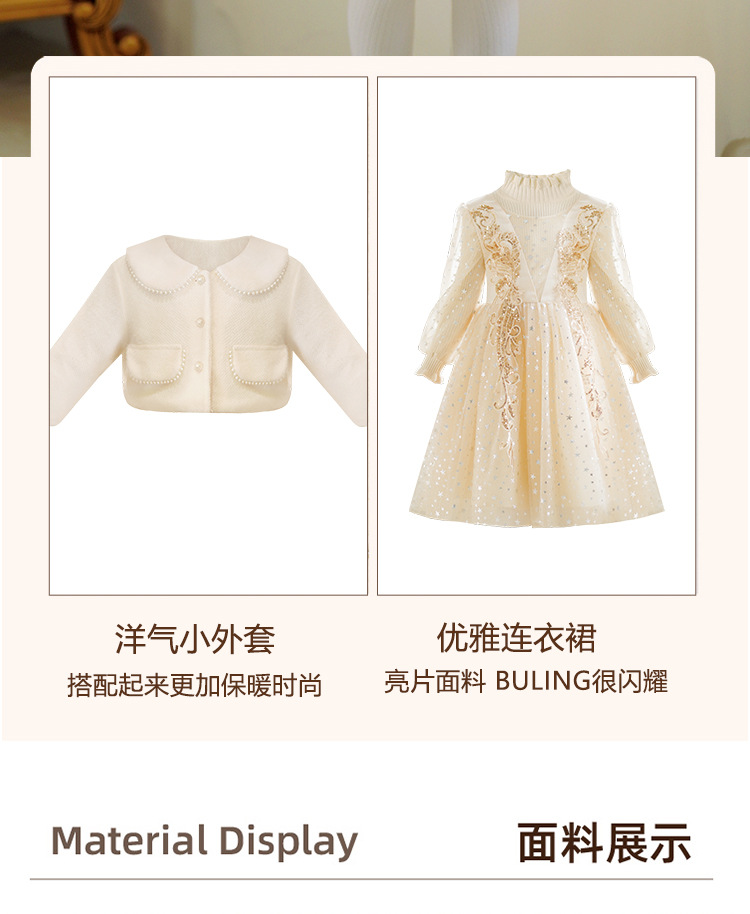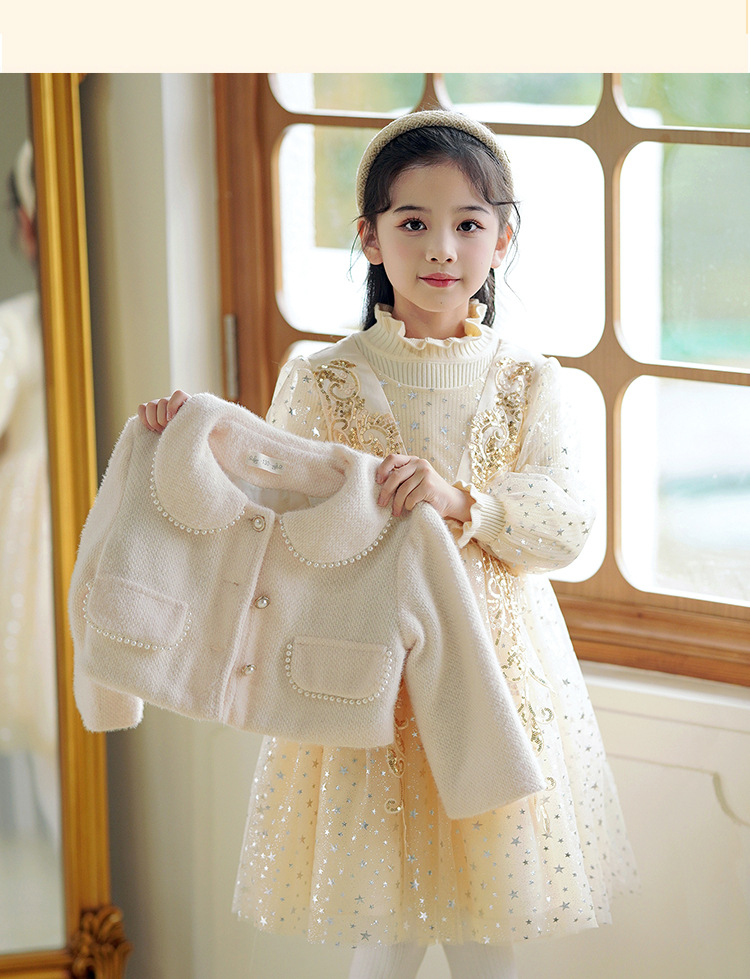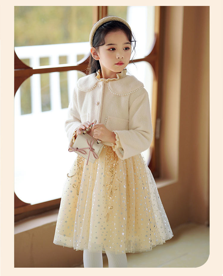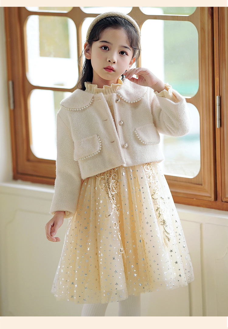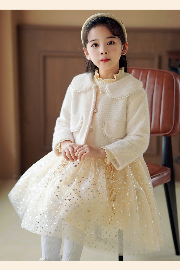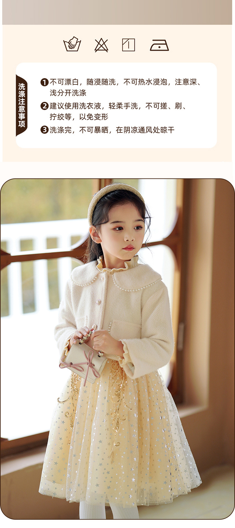 여자 공주 치마 2024 새로운 가을과 겨울 기모 울 긴 소매 스타일 생일 푹신한 베일 스커트 어린이 원피스스토어 가기