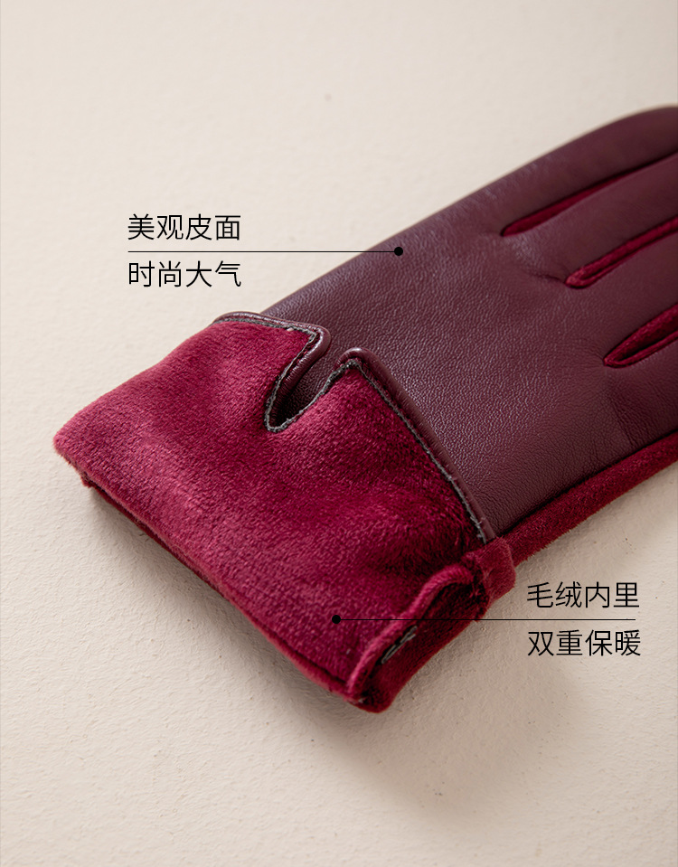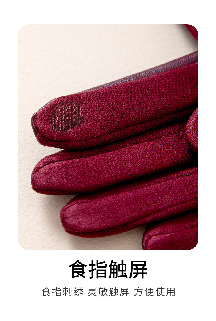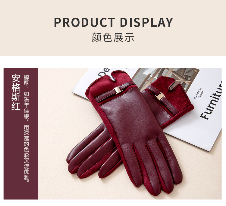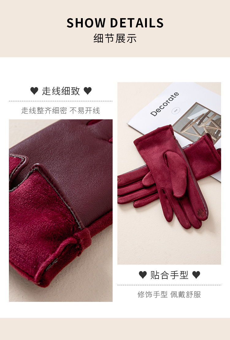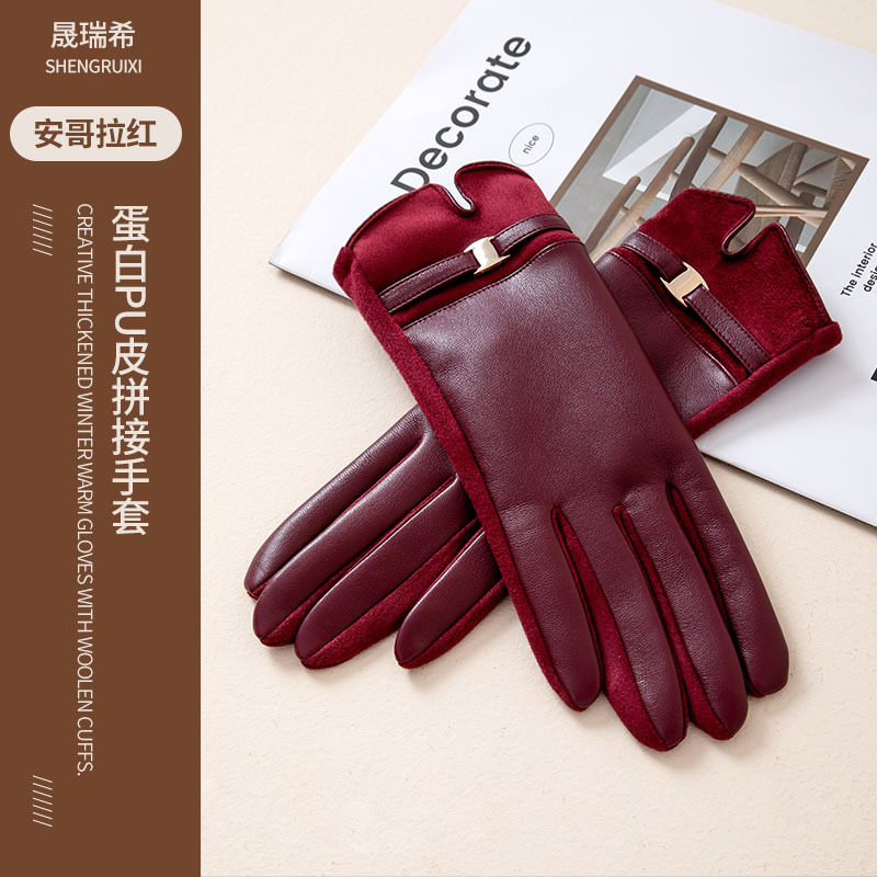 겨울용 따뜻한 가죽 안골라 레드 장갑, 두꺼운 모피 마감, 운전 시 터치스크린 사용 가능, 스웨이드 가죽, 두꺼운 보온성스토어 가기