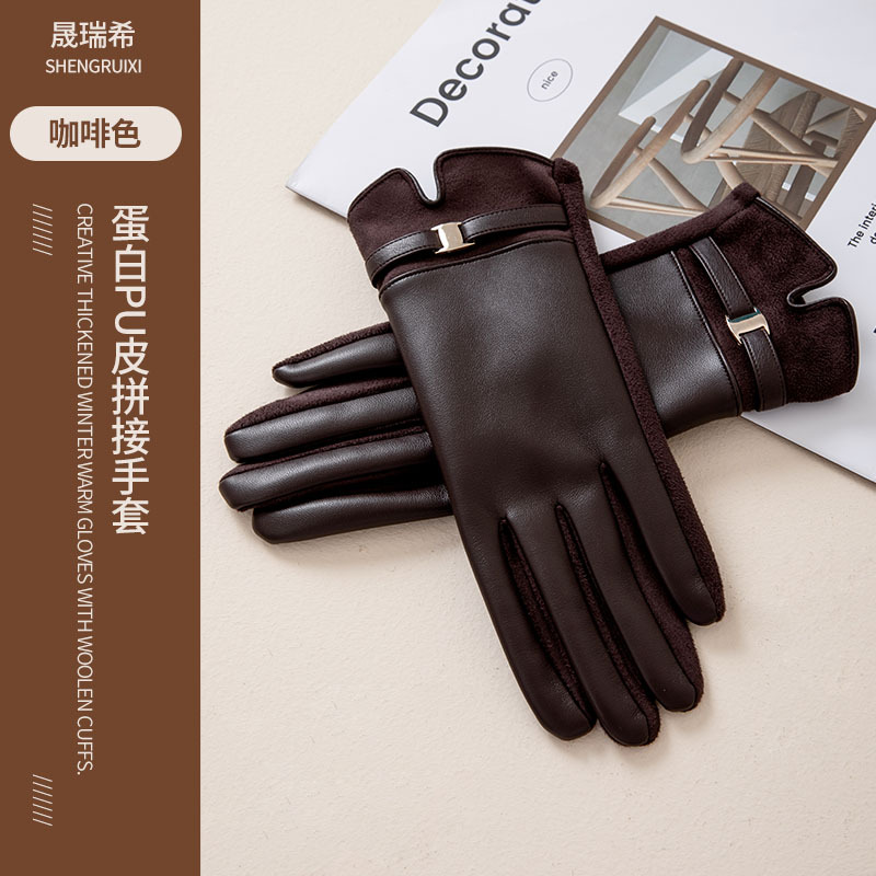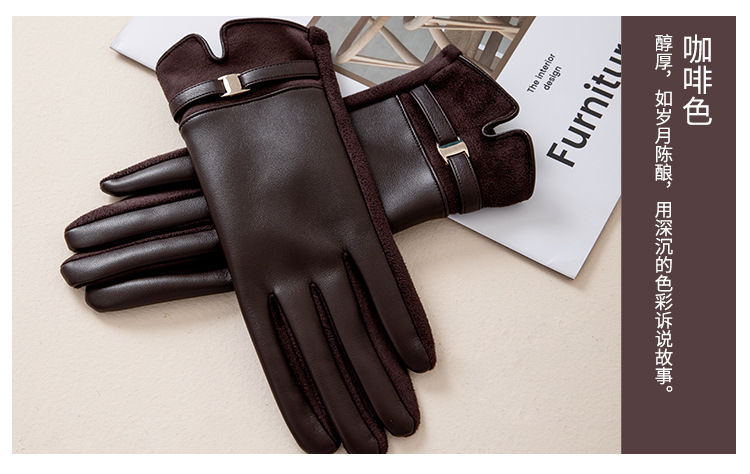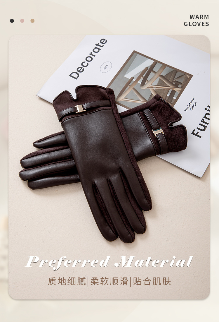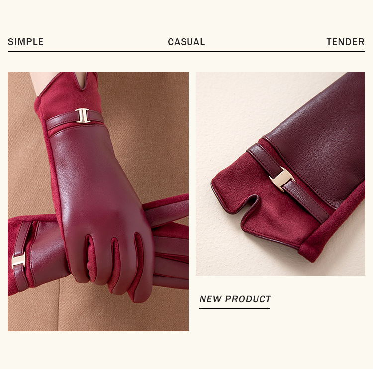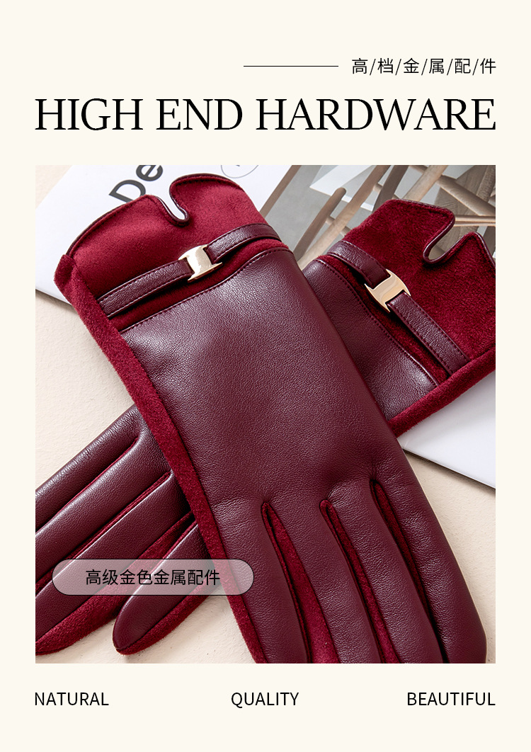 겨울용 따뜻한 가죽 안골라 레드 장갑, 두꺼운 모피 마감, 운전 시 터치스크린 사용 가능, 스웨이드 가죽, 두꺼운 보온성스토어 가기
