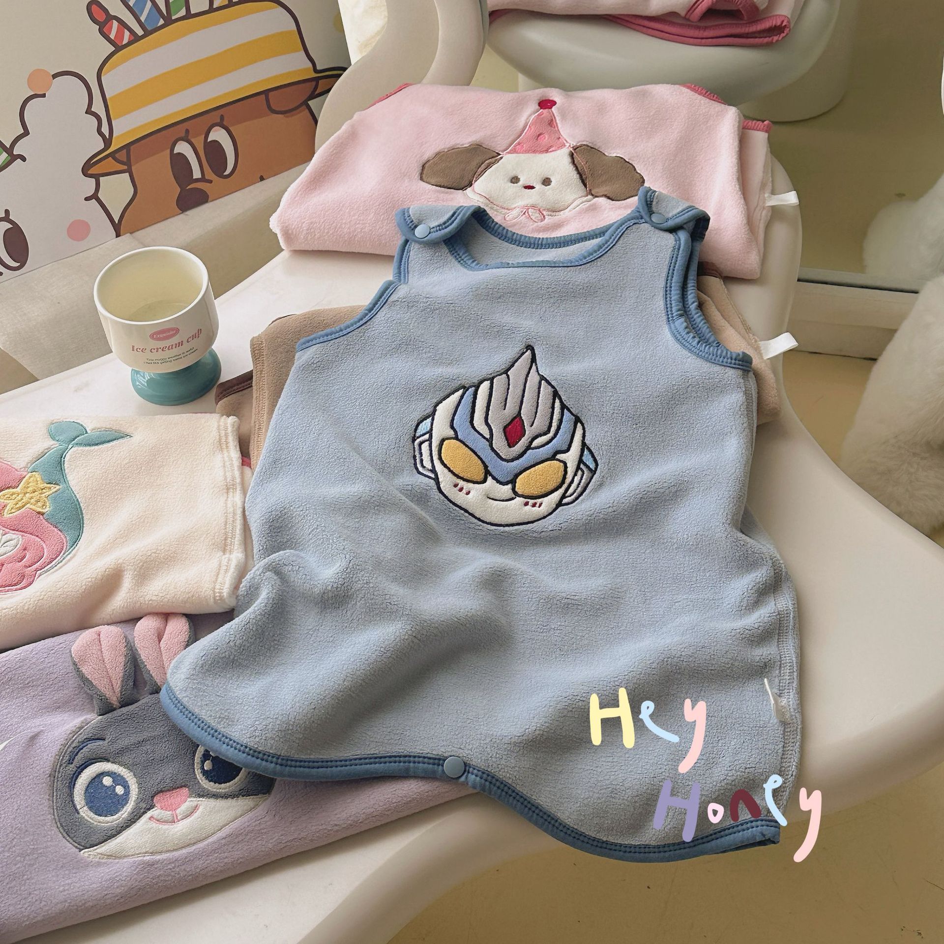 작고 작은 롤 2024 가을과 겨울 새로운 어린이 민소매 침낭 아기 조끼 슬리핑 백 홈 옷스토어 가기