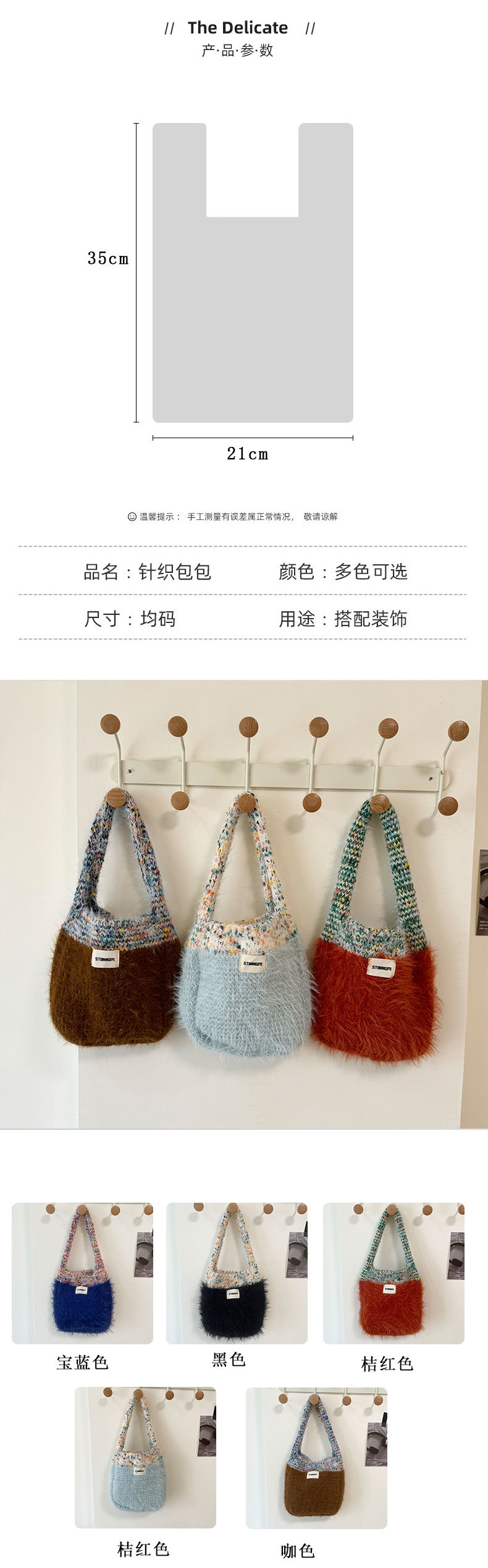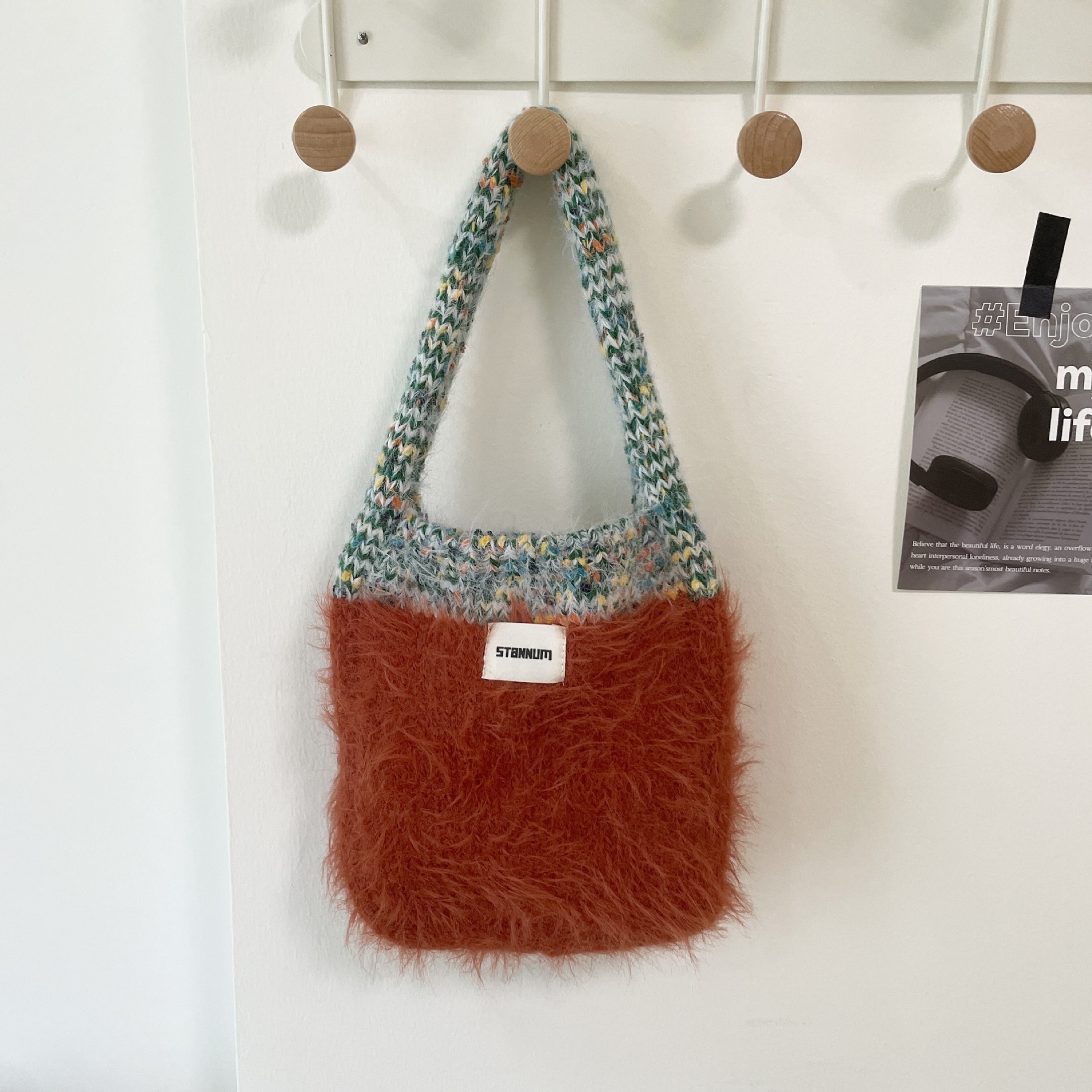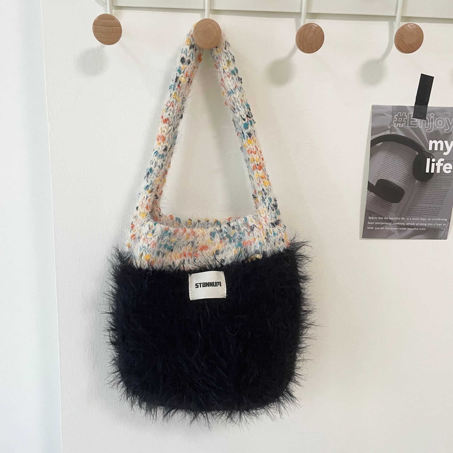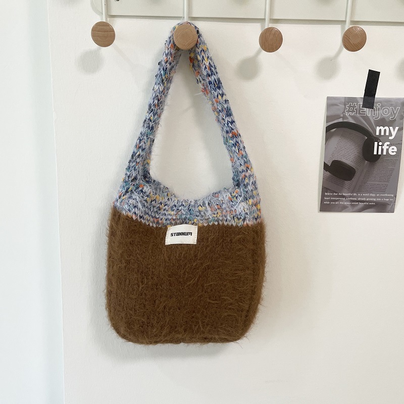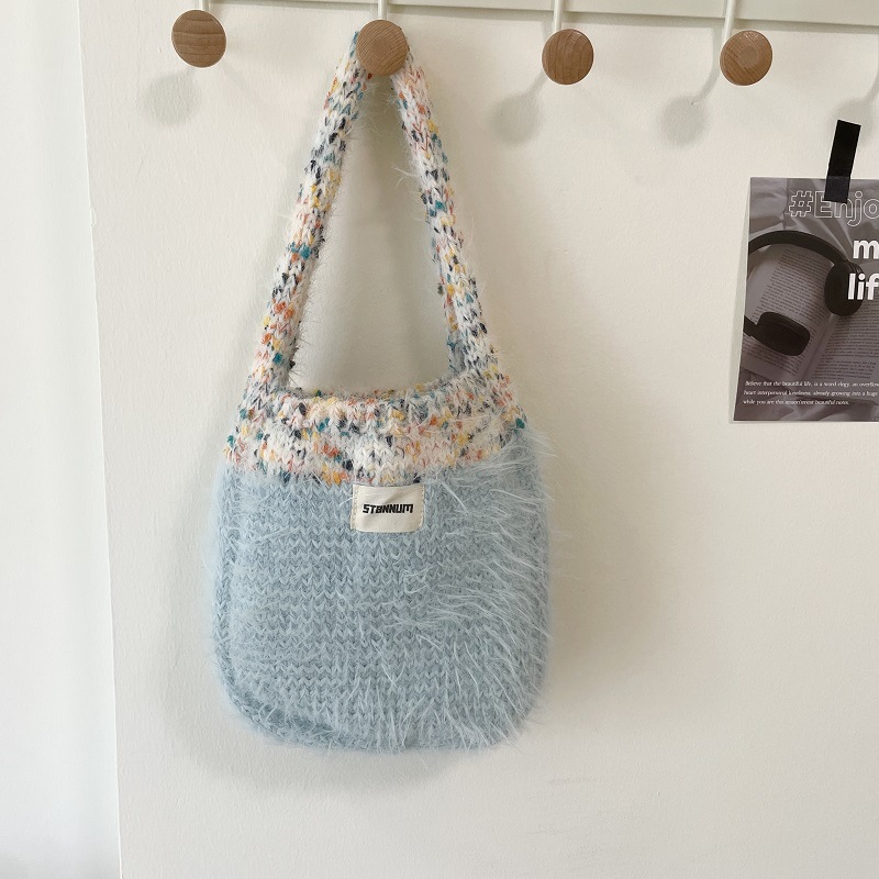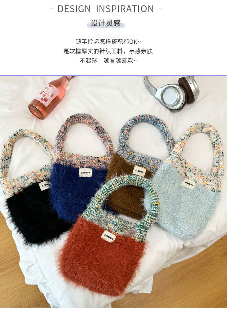 한국식 콘트라스트 컬러 니트 봉제 핸드백 여성 트렌디 올매치 겨울 새 인터넷 연예인 휴대 전화 가방 핸드 백