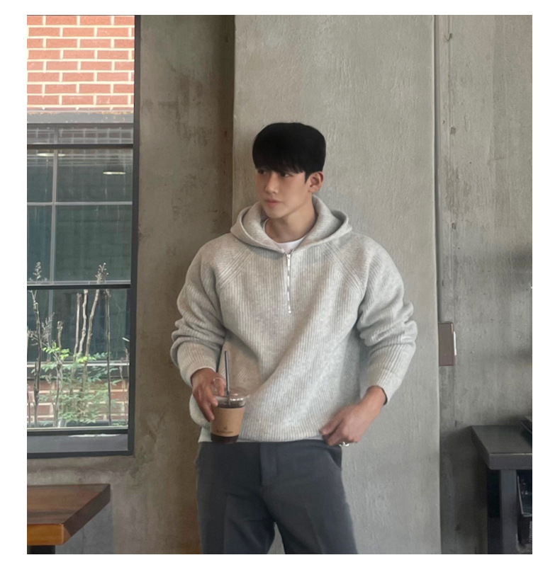 가을과 겨울 하이 엔드 하프 지퍼 후드 스웨터 스웨터 남성 패션 브랜드 게으른 스타일 두꺼운 스웨터 헤비 재킷스토어 가기