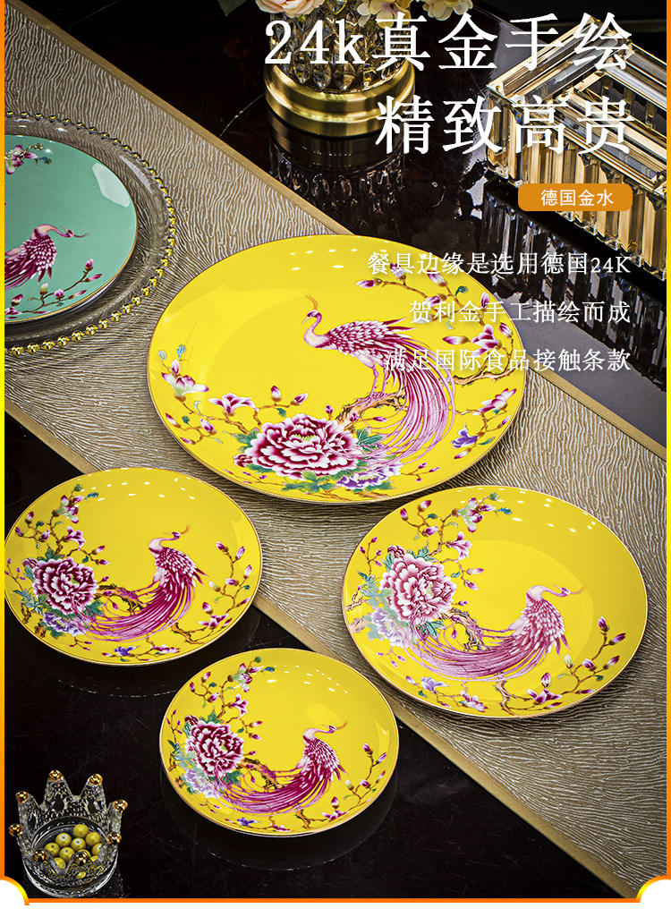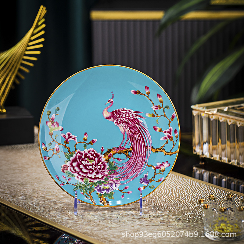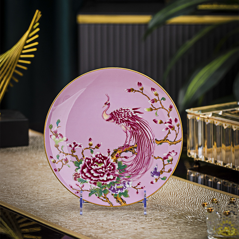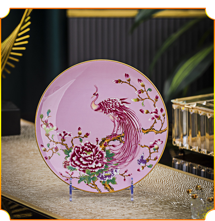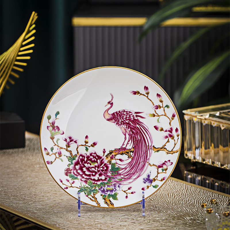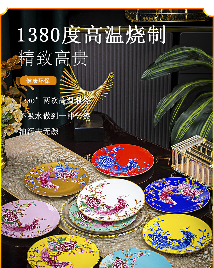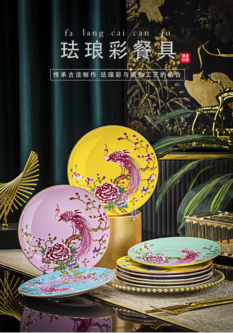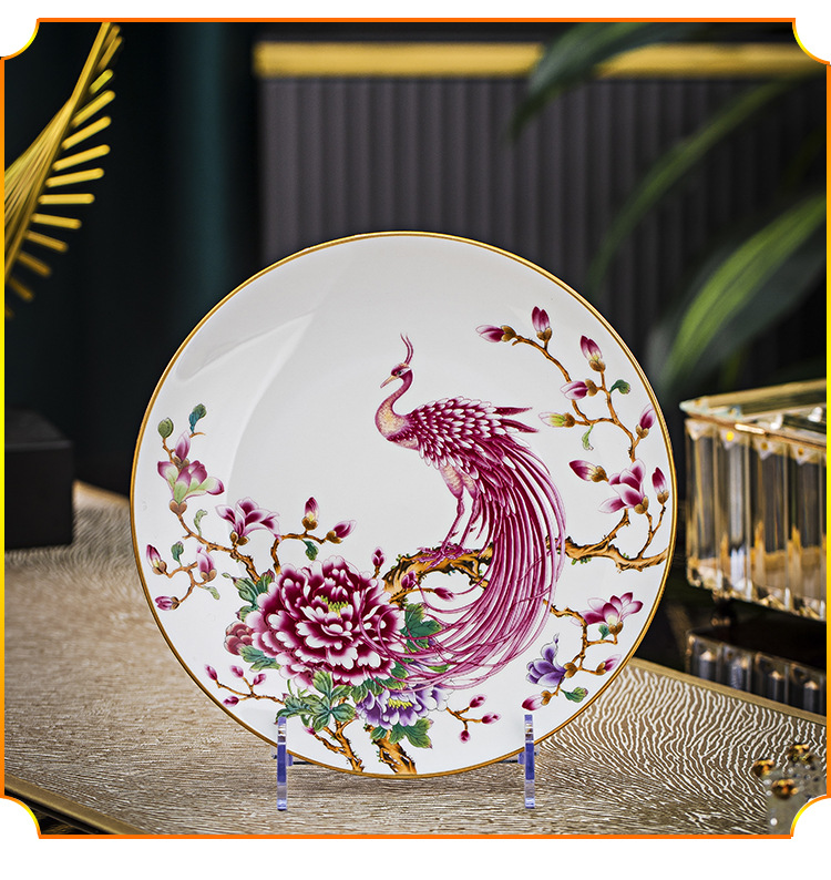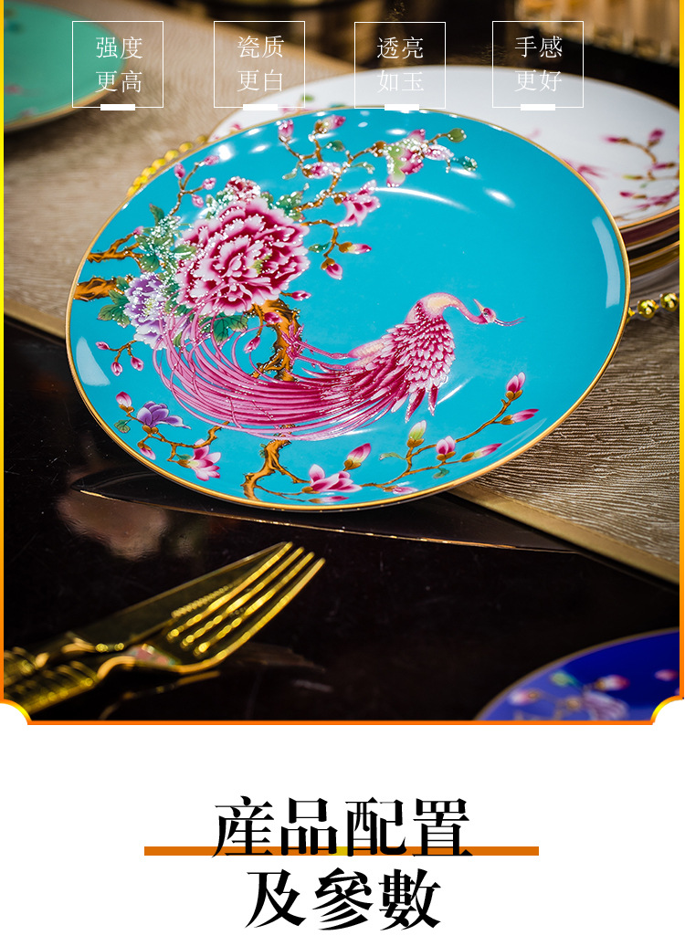 Jingdezhen 에나멜 중국 스타일 풀 플라워 뼈 플레이트 8 인치 평면 플레이트 호텔 테이블 평면 플레이트 라운드 감사 플레이트 하이 엔드 식기스토어 가기