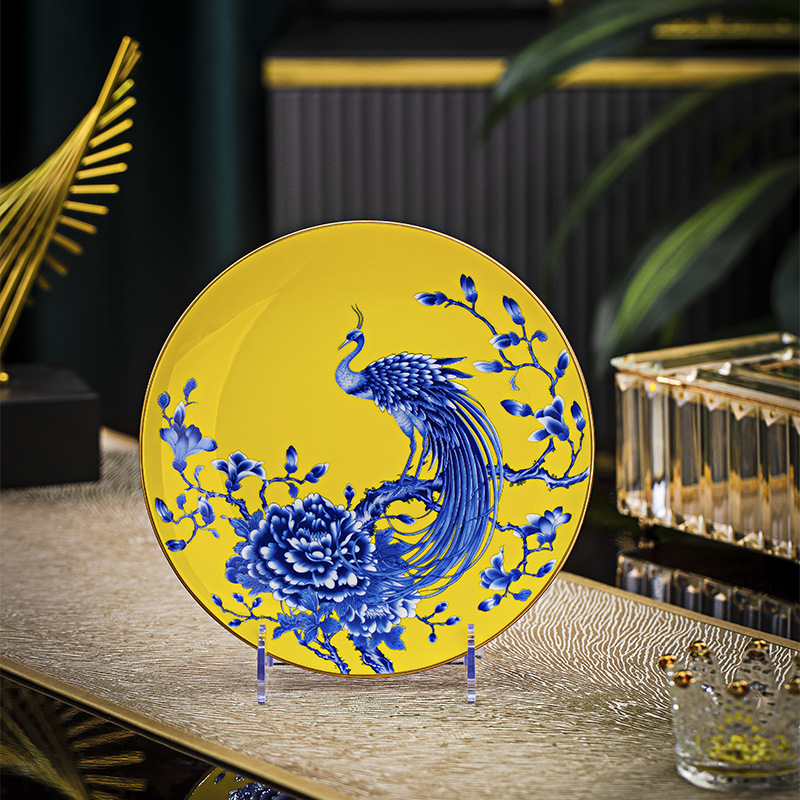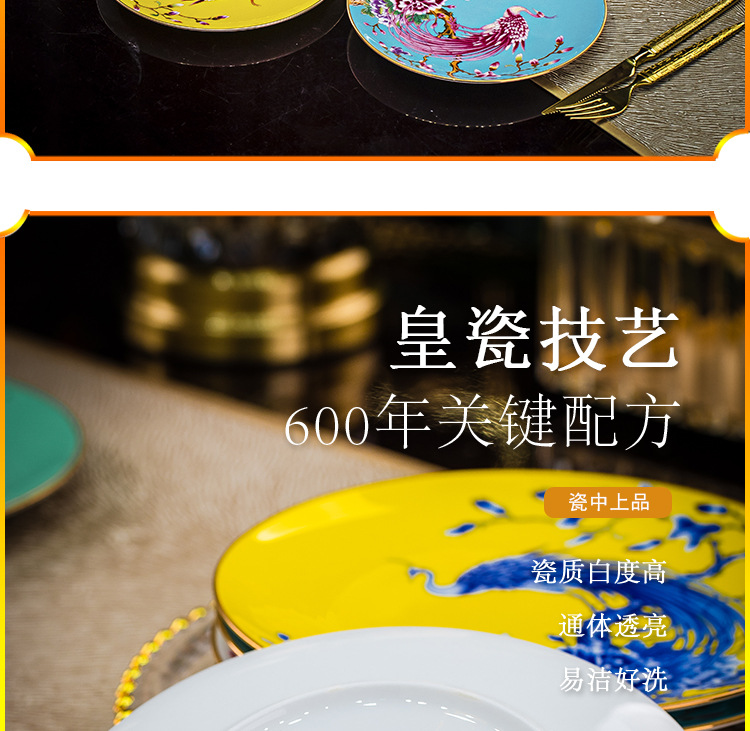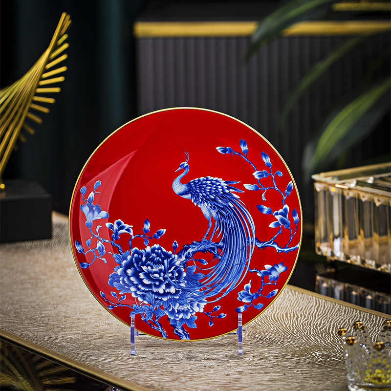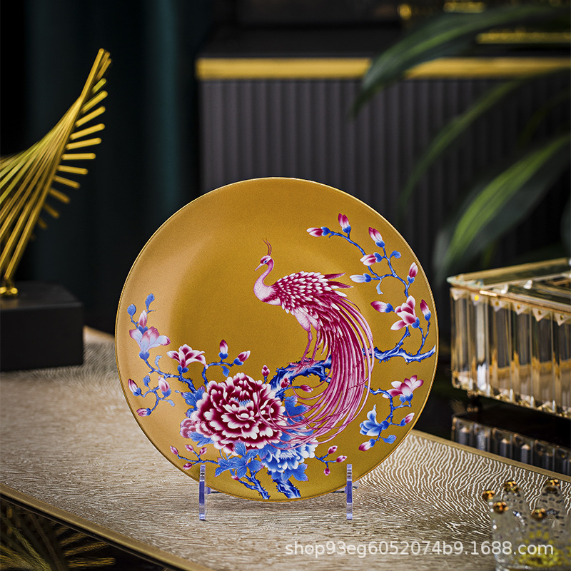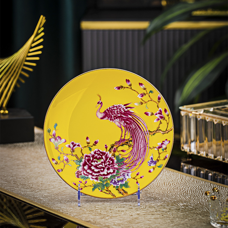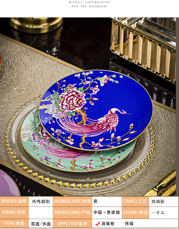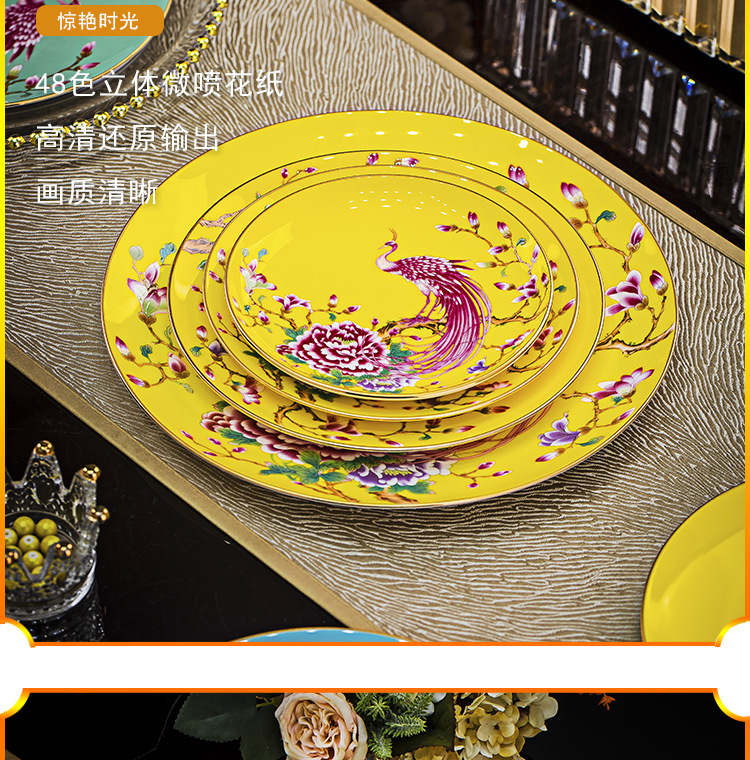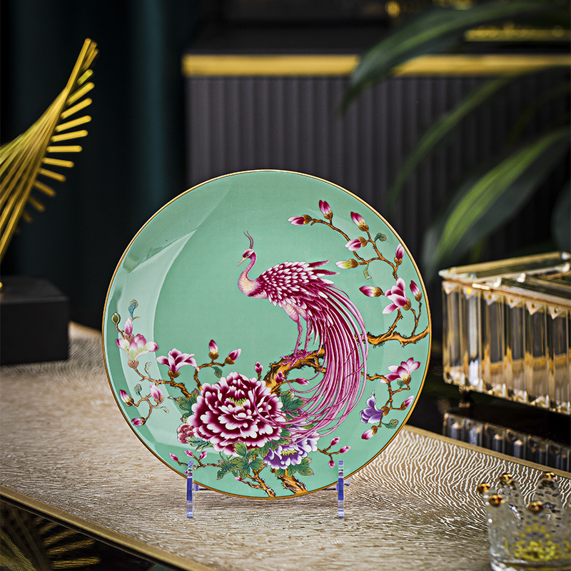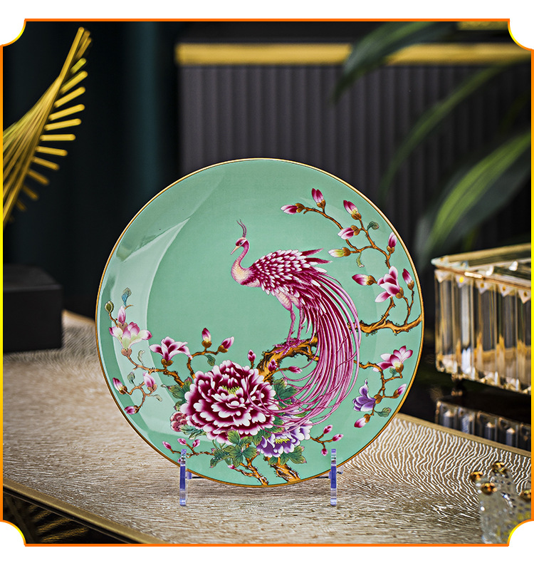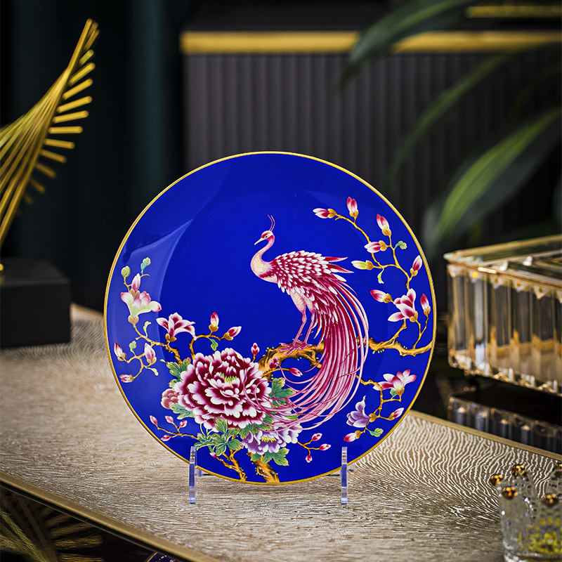 Jingdezhen 에나멜 중국 스타일 풀 플라워 뼈 플레이트 8 인치 평면 플레이트 호텔 테이블 평면 플레이트 라운드 감사 플레이트 하이 엔드 식기스토어 가기