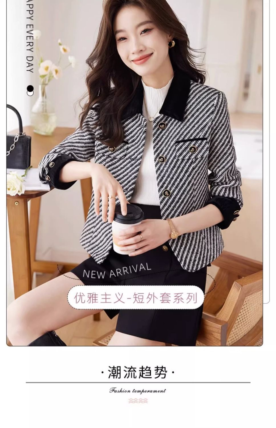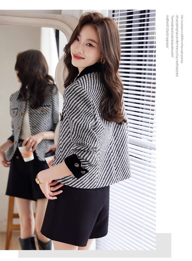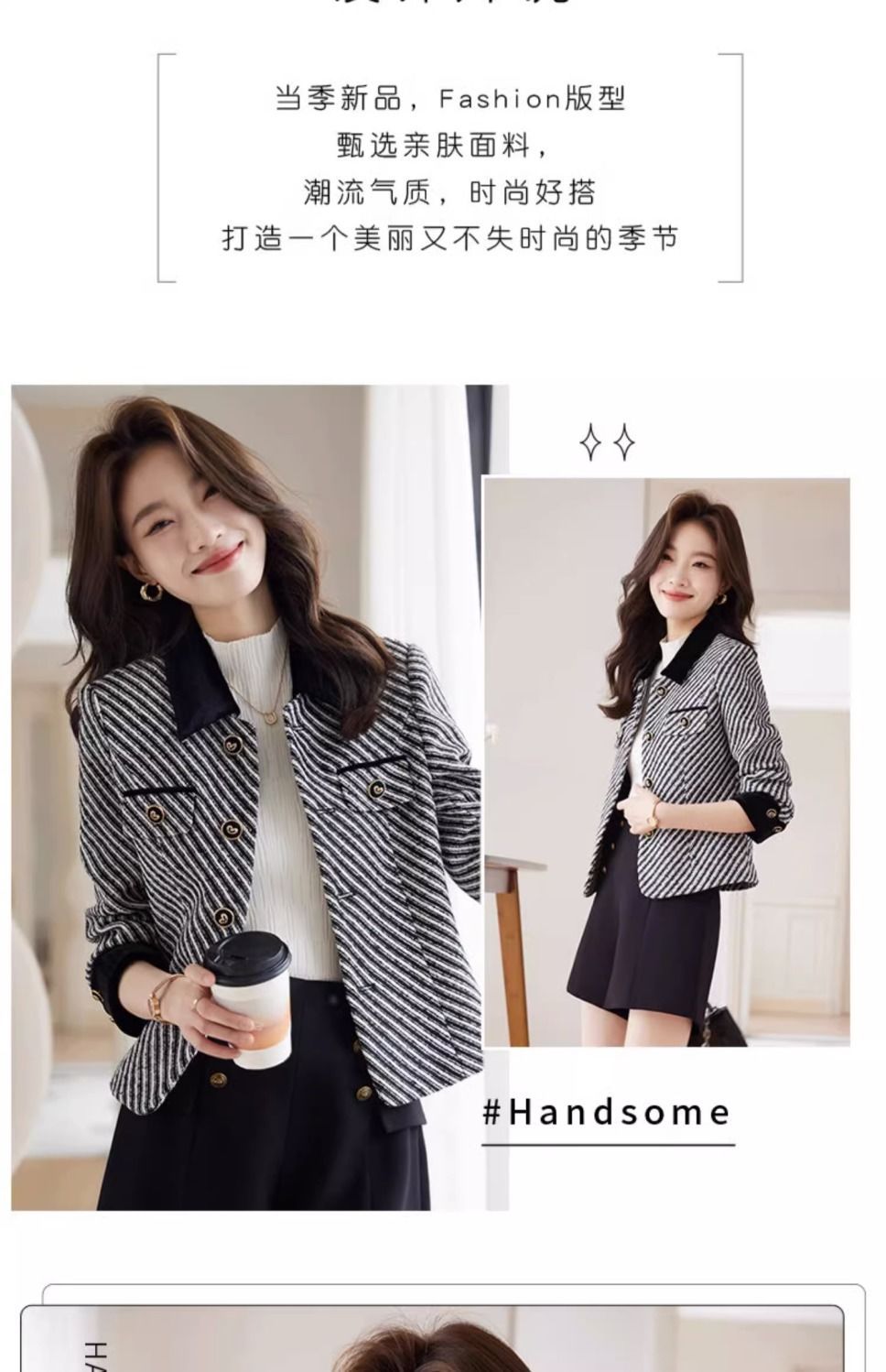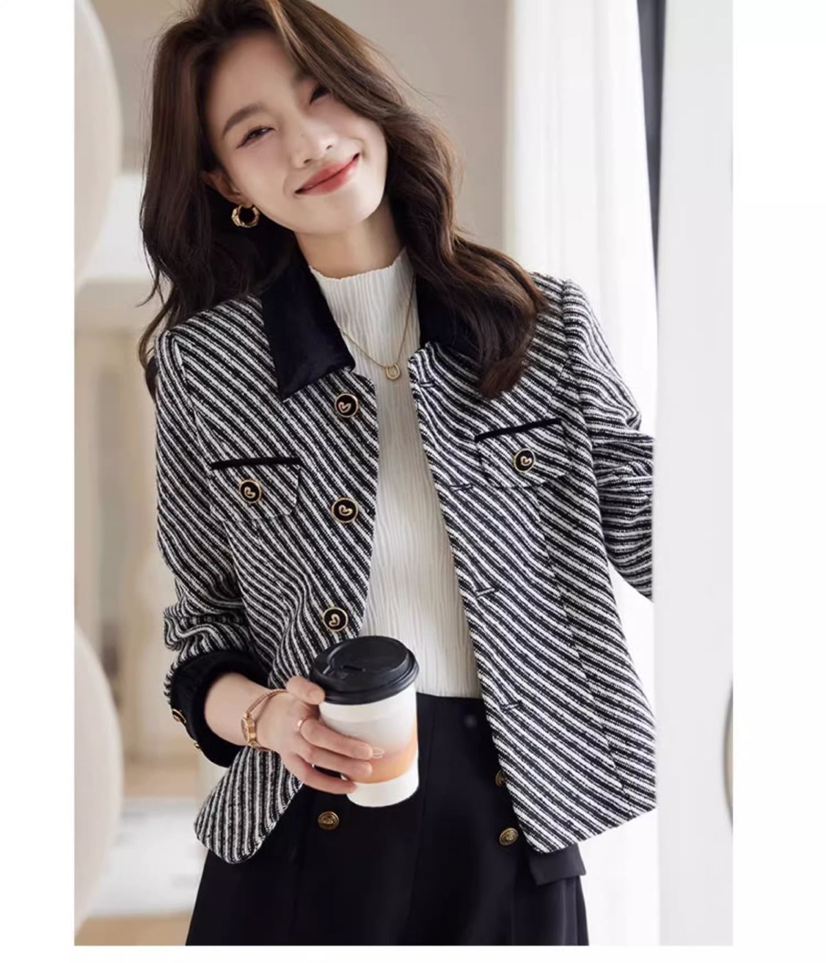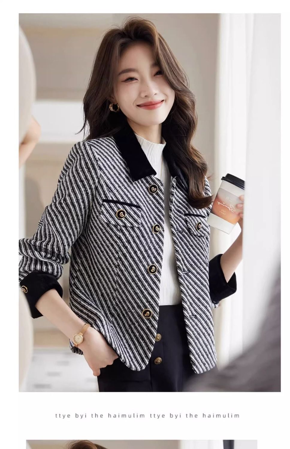 샤오샹풍 싱글버튼 재킷 여성용 봄가을 2025 신상 작은 키 여성을 위한 우아하고 세련된 한국 스타일 스트라이프 배색 상의스토어 가기