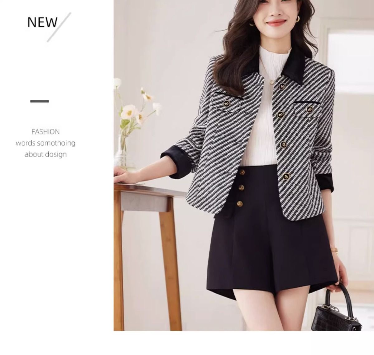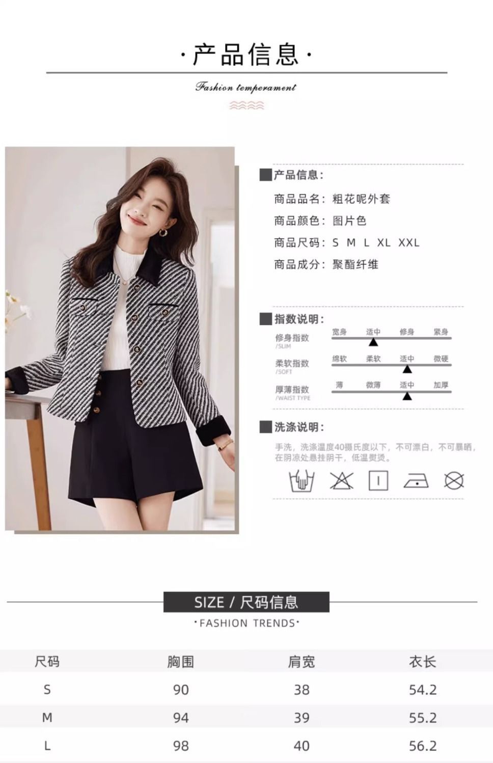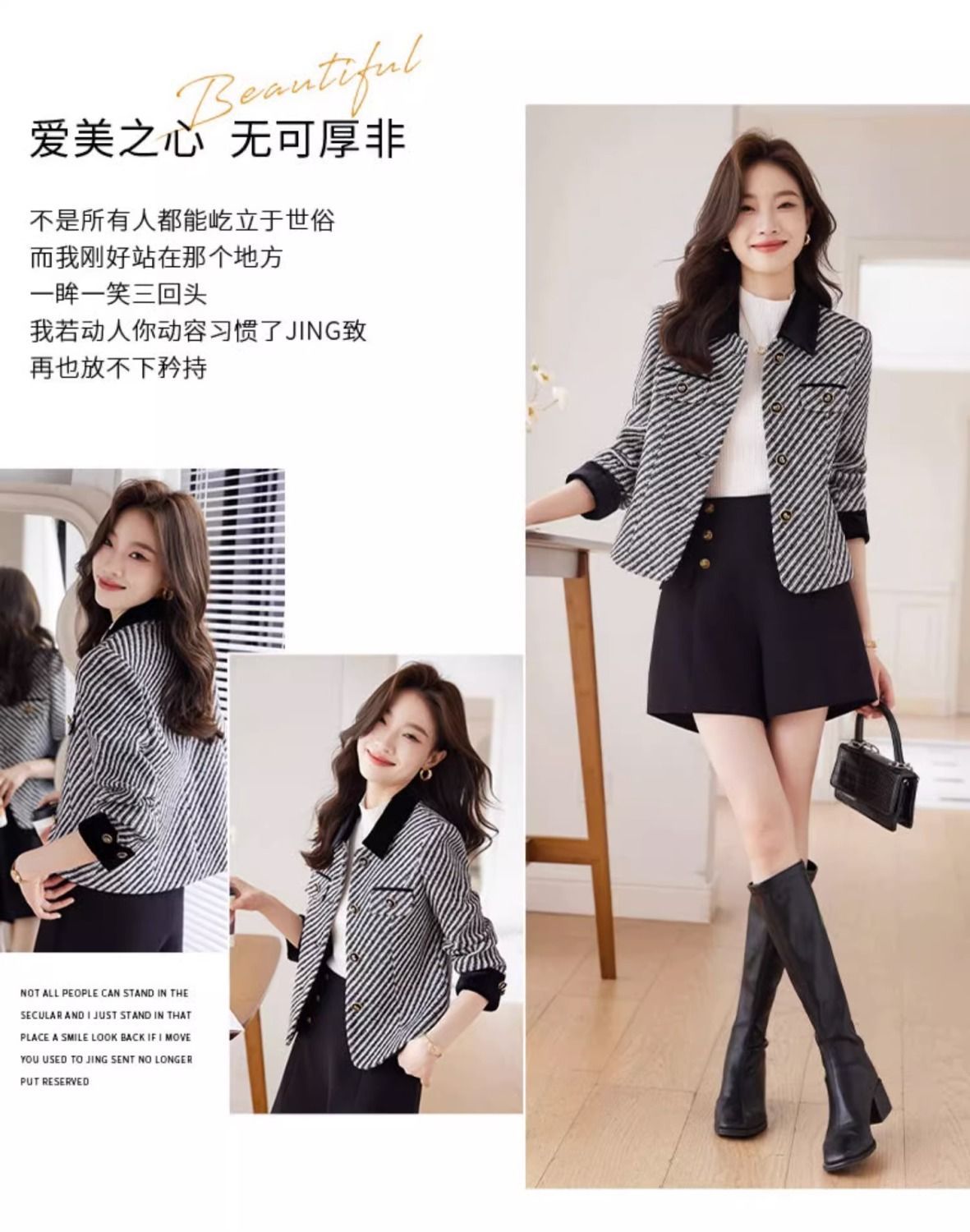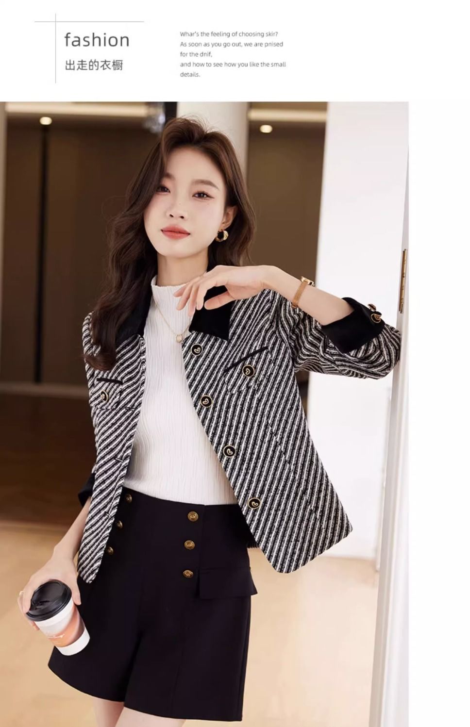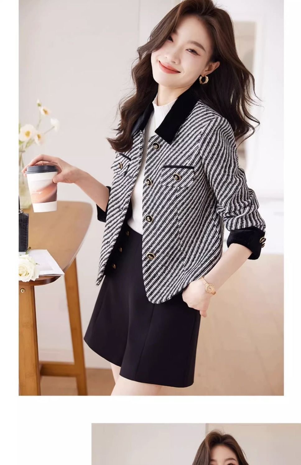 샤오샹풍 싱글버튼 재킷 여성용 봄가을 2025 신상 작은 키 여성을 위한 우아하고 세련된 한국 스타일 스트라이프 배색 상의스토어 가기